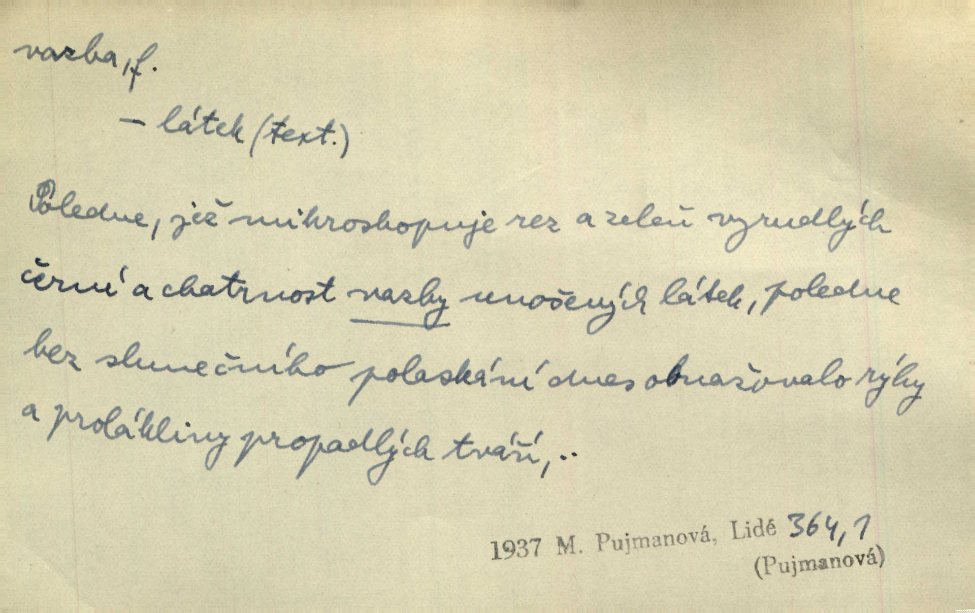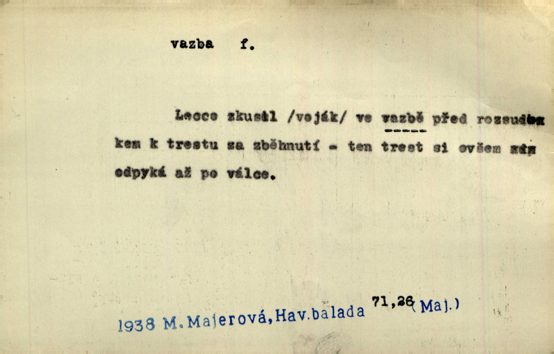 - vazba, -y f. způsob spojování jednotlivostí v celek; výsledek tohoto spojování. Byli jsme dříve svědky toho, jak namnoze byly prováděny nevkusné květinové vazby. J. Vaněk. Vazbu keprovou nebo dokonce atlasovou [textilu]‚ tu nesvede žádný stroj. Baar. Záclona dodává barvou a vazbou pokoji zvláštního osvětlení. Panor. Četl si nápisy na štítech, pozoroval vazby dřev i fantastické výkroje na komínech. Svob. Pod kopyty zaskřípala vazba dřevěného mostku. Vrba. Žadatelé musí mít vědomosti o vazbě, plavení vorů a o jejich opravách. Lid. nov. Stěny mají omítky sádrové, jinde jsou prostě glasované cihly s pravidelnou vazbou. V. Kolář. Nasypali do betonu chemikálie, které ruší jeho vazbu. Maj. Text. vzájemné křížení a spojování nití a útků ve tkanině. Vazba plátnová, keprová, atlasová. Chem. způsob vzájemného spojování atomů v molekule. Gram. vyjádření závislosti jednoho členu, zpr. předmětu, na členu druhém tvarem, zpr. pádem určovaným členem řídícím, rekce; vazba slovesná; vazba předložková spojení předložky s pádem; vazba přechodníková, vazba dvojího nominativu a p. druh spojení tvarů v syntaktické dvojice, konstrukce; výšin z vazby anakolut. Hud. vazba tónů, akordů jejich melodické a harmonické spojování. Biol. vazba vloh třetí zákon o dědičnosti. Šach. vazba figur nemožnost tahu, protože by se ohrozila figura vyšší hodnoty. Šerm. bránění protivníkovi v útoku trvalým stykem čepelí. El. tech., radiotech. druh zapojení k zesilování el. střídavých proudů. D konstrukce podporující plochy střechy, krov. Na vedlejším poli tesaři sestrojovali vazbu — práce na staveništi kypěla. Jah. Šeptavý hlas protkal stavbu od sklepení až k vazbě. Vanč. Ohnivé kusy šindelů a vazby kolem něho lítaly. Nov. D obal vzniklý vázáním knihy. Vazba chrání knihu před poškozením. Moucha. Každý knihařský závod zdůrazňoval, že kromě vazeb francouzských provádí také lipské. Vlastiv. Přen. A tak drahokamy myšlénkové ovroubil zlatou vazbou formy. Lit. l. D omezení osobní svobody znemožňující volný pohyb, vězení. Na osočení nepřátel od nového arcibiskupa Jana Očka z Vlašími do vazby vzat [Milíč]. Pal. Jiní myslili, že Josef neumřel, ale že kdesi chová se u vazbě. Šmil. Dlouhé vlasy zbělely mu za vazby jako sníh. Jir. Kupec, jsa vazby zproštěn, děkoval. Něm. Je odsouzen na čtyry neděle lehké vazby. Ner. Nacističtí spiklenci uvězňovali osoby bez soudního řízení, drželi je v „ochranné vazbě“. Kocourek. Byl ještě tutéž noc zajat a do vyšetřovací vazby odveden. Svět. Bývala domácí vazba za špatný úkol. Jir. Práv. oprávněné omezení osobní svobody, zejm. za účelem trestního řízení; vyšetřovací vazba; propustiti z vazby; uvaliti vazbu, uvrhnouti do vazby. D Poněk. zast. (zpr. pl. vazby) pouto, pouta. Tu tasí Ctirad meč a přetíná ty vazby, které do těla děvy vnikaly. Zey. Za ní jeho nohy spějí lehce, vazeb tíže prosty. Čech. [Jitka] sběhla šťastná, že jest vazeb svých prosta. Svět. Jest myšlénka povšechného pokoje, jenž všecky národy obecnou vazbou poutá. Havl. Suk překonal vazby tradice. Týd. rozhl. Domnívali jste se, že hlavnice mne drží v krutých vazbách. Svět. Mysl. druh lapadla. D Řidč. spojitost, souvislost. Vazba mezi orchestrem a pěvci, až na maličké výkyvy, hrála. Svob. nov. Dát každému národu stejný vliv bez ohledu na jeho velikost a mocenské možnosti znamenalo vytvořit mosaikový součet států bez vzájemné vazby. Svob. nov. Na vzájemné vazbě základních prvků filmu závisí hodnota každého filmu. Svazky. Radiotel. vzájemné působení dvou okruhů. Zeměd. stavba, konstrukce těla chovného zvířete.