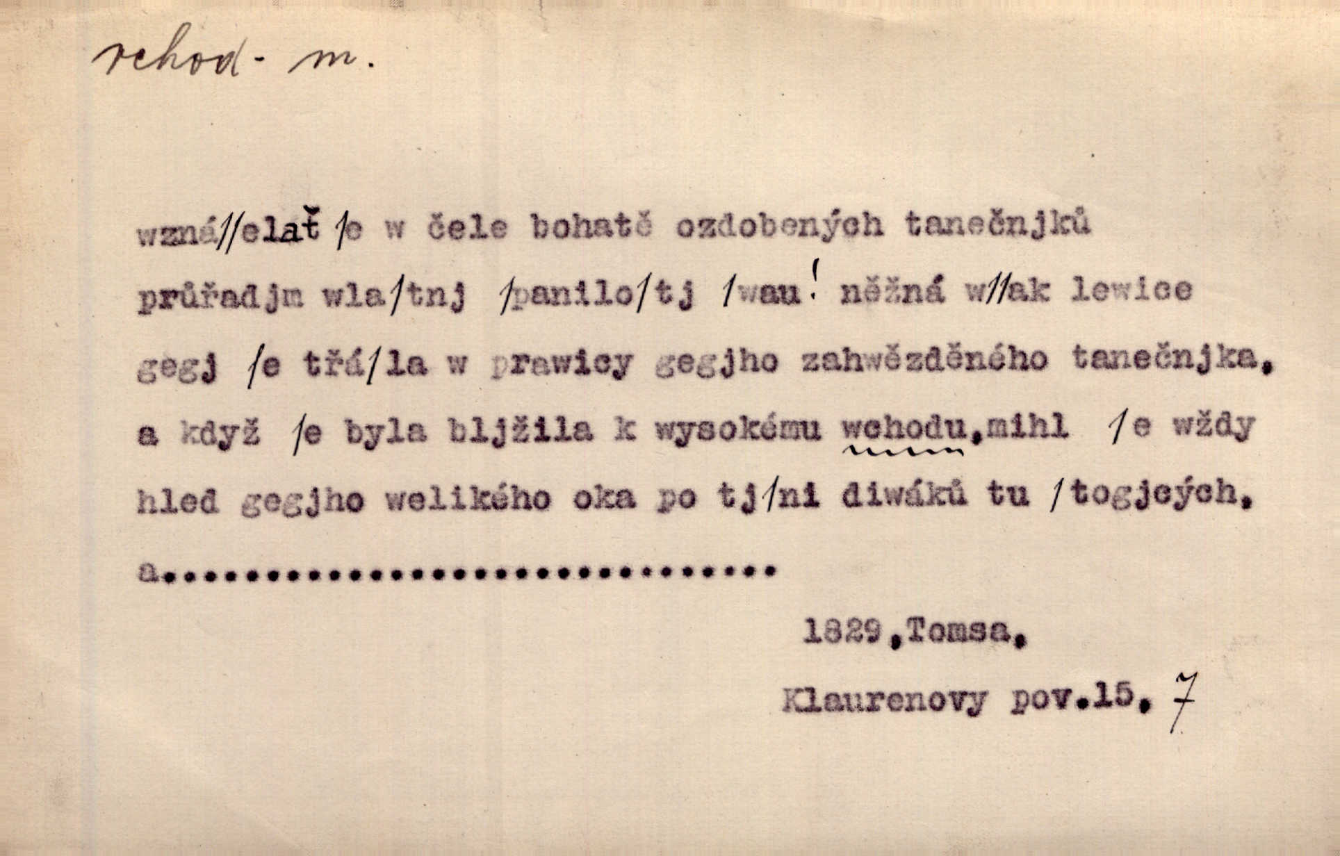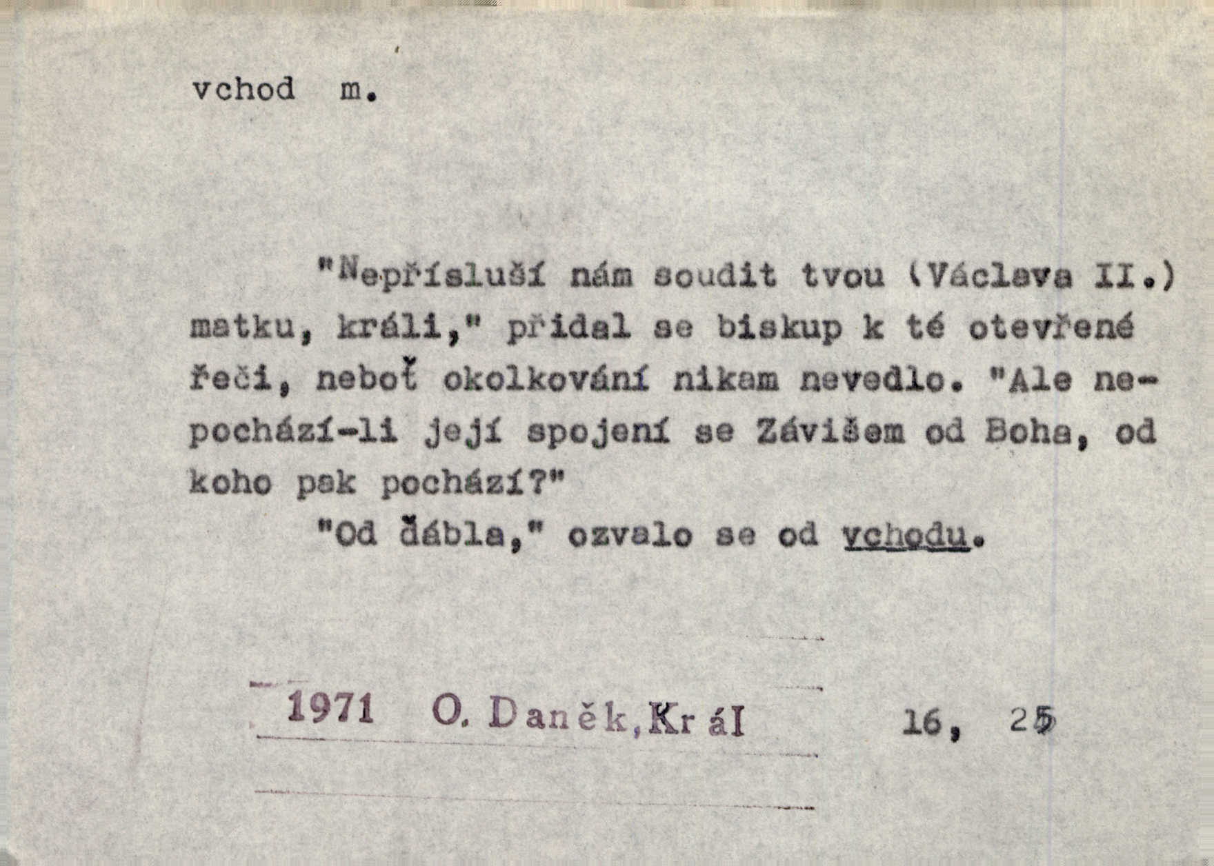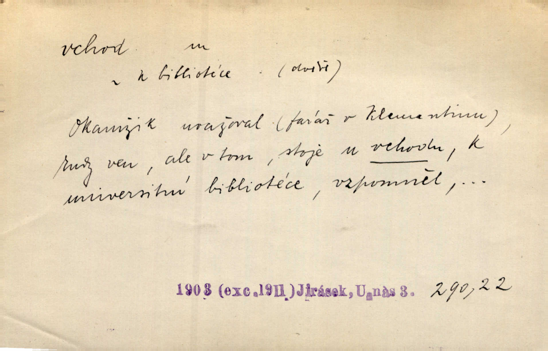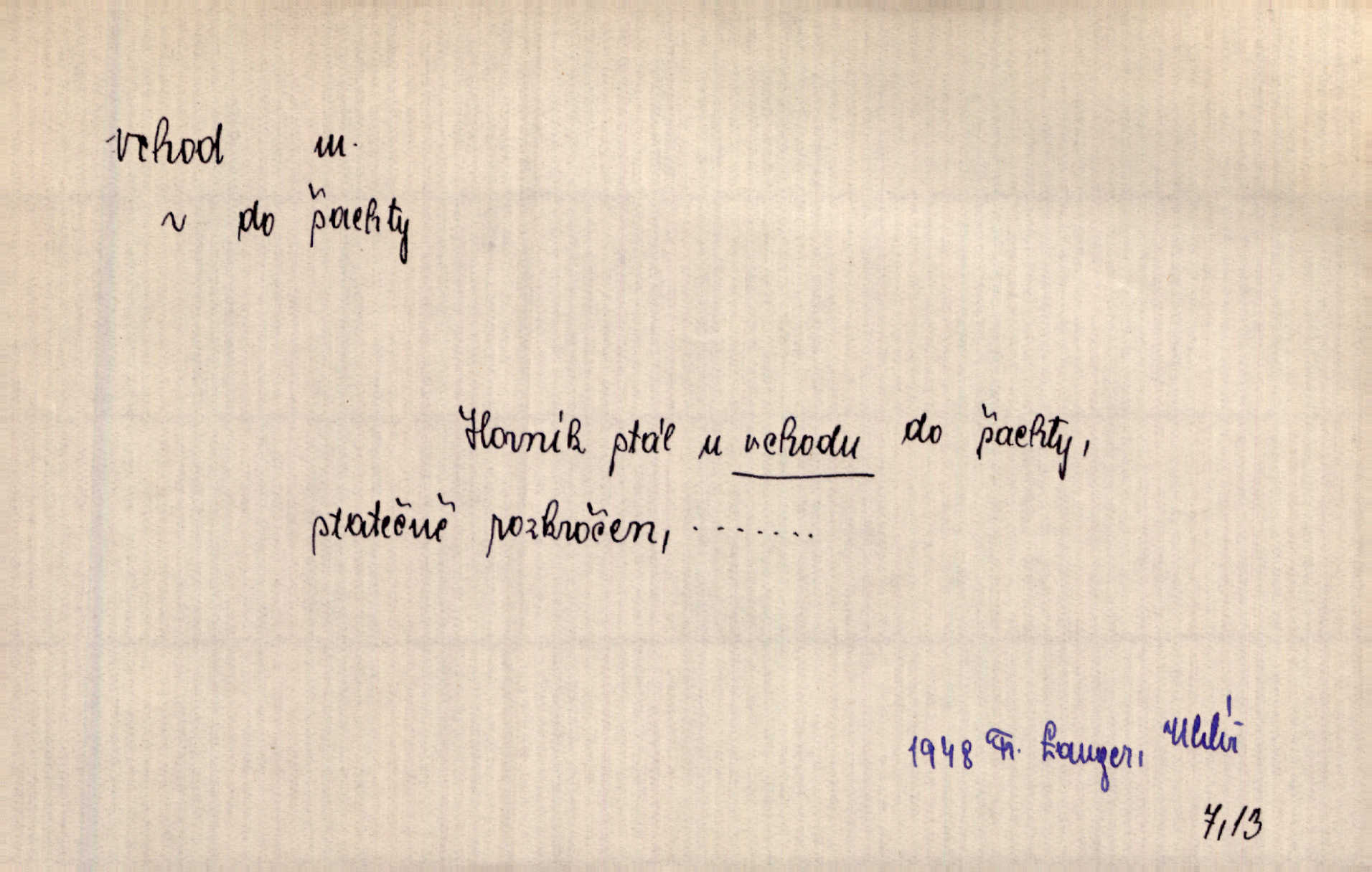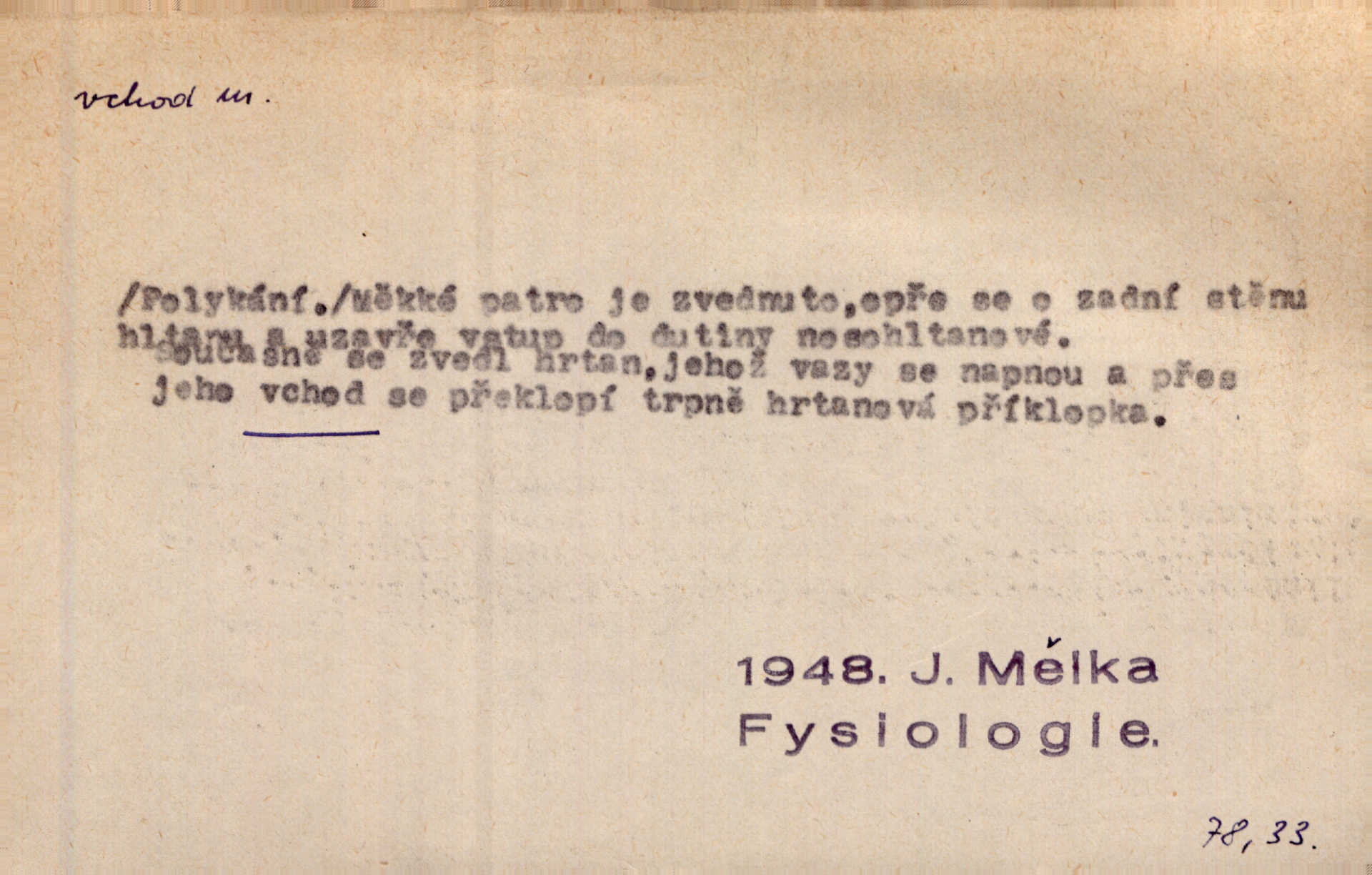 - vchod, -u m. místo, kudy se někam vchází. Zvolnili ze slušnosti běh a poklonili se před vchodem, jako by sám vladař stál na prahu. Vanč. Nebylo nikoho, kdo by na okamžik nebyl postál před vchodem. Ben. Opona, která zastírala vchod, teď se vůbec nespouštěla. Herrm. Ten bydlel v přízemí, vchod k němu byl naprosto volný. Šmil. Brána má dva vchody: větší (vrata) pro povozy, a vrátka (dvírce) pro pěší. Jir. Vchod k [údolí] s orlem v oblacích sup hlídá. Vrch. Nízký je vchod do jezevčího toho hnízda otvor. A. Mrš. Anat. vchod pánevní; vchod do hrtanu, vchod do očnice. D Řidč. vstup, vejití dovnitř. Při mém vchodu zavřela knihu a položila ji na stůl. Zey. Josef zabraňuje Kačerovi, jejž od zadu František zdržuje, vchod. Ner. D Poněk. zast. úvod, začátek. Sem patří některé verše z vchodu básně, Hřbitov o dušičkách. J. Han. Ale to není celá báseň, je to jen „vchod“, t. j. prolog. Jir. Dříve než muzikanti přehráli vchod, dala se mi má vyvolená do silného kýchání. Prav.