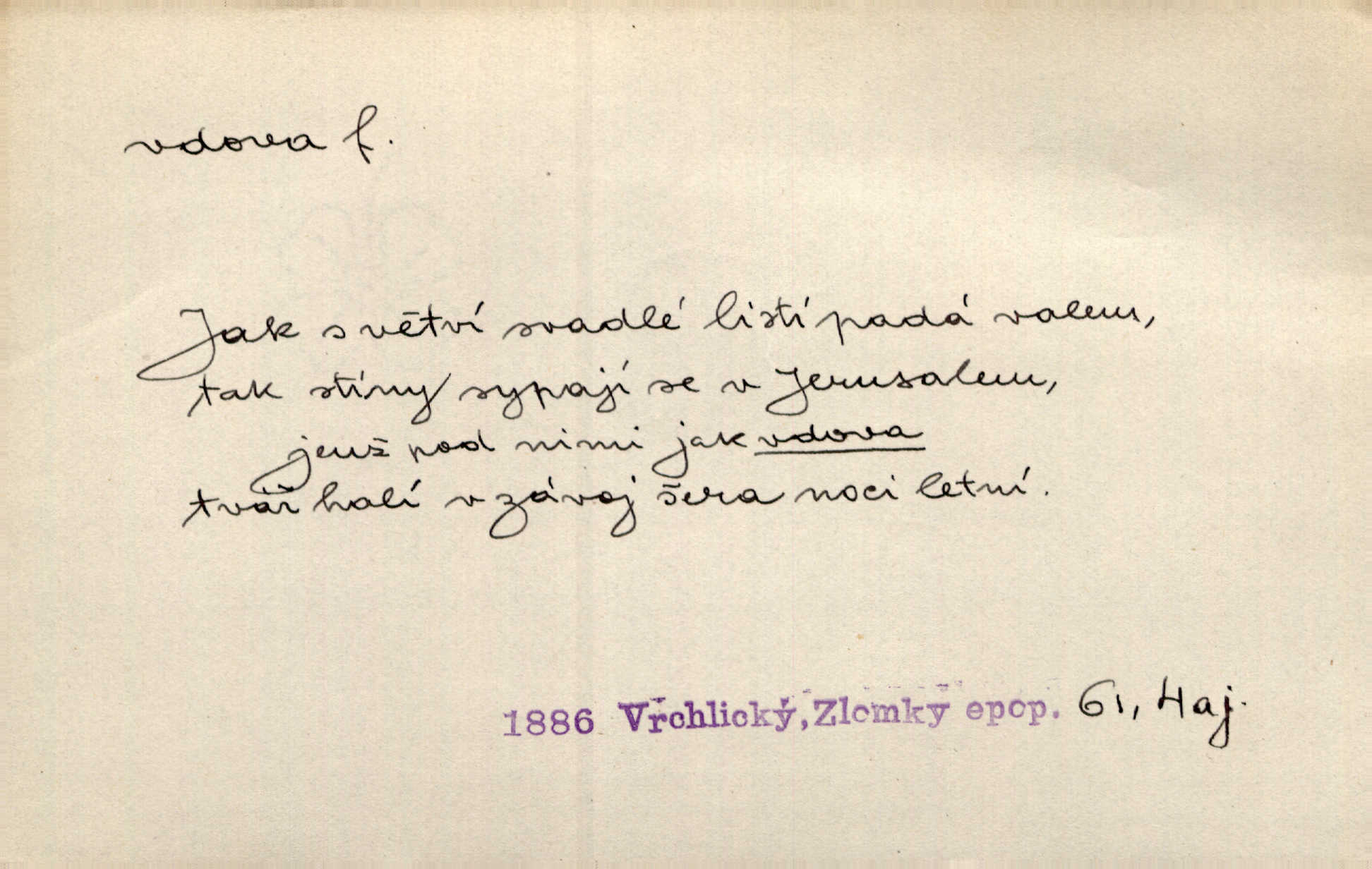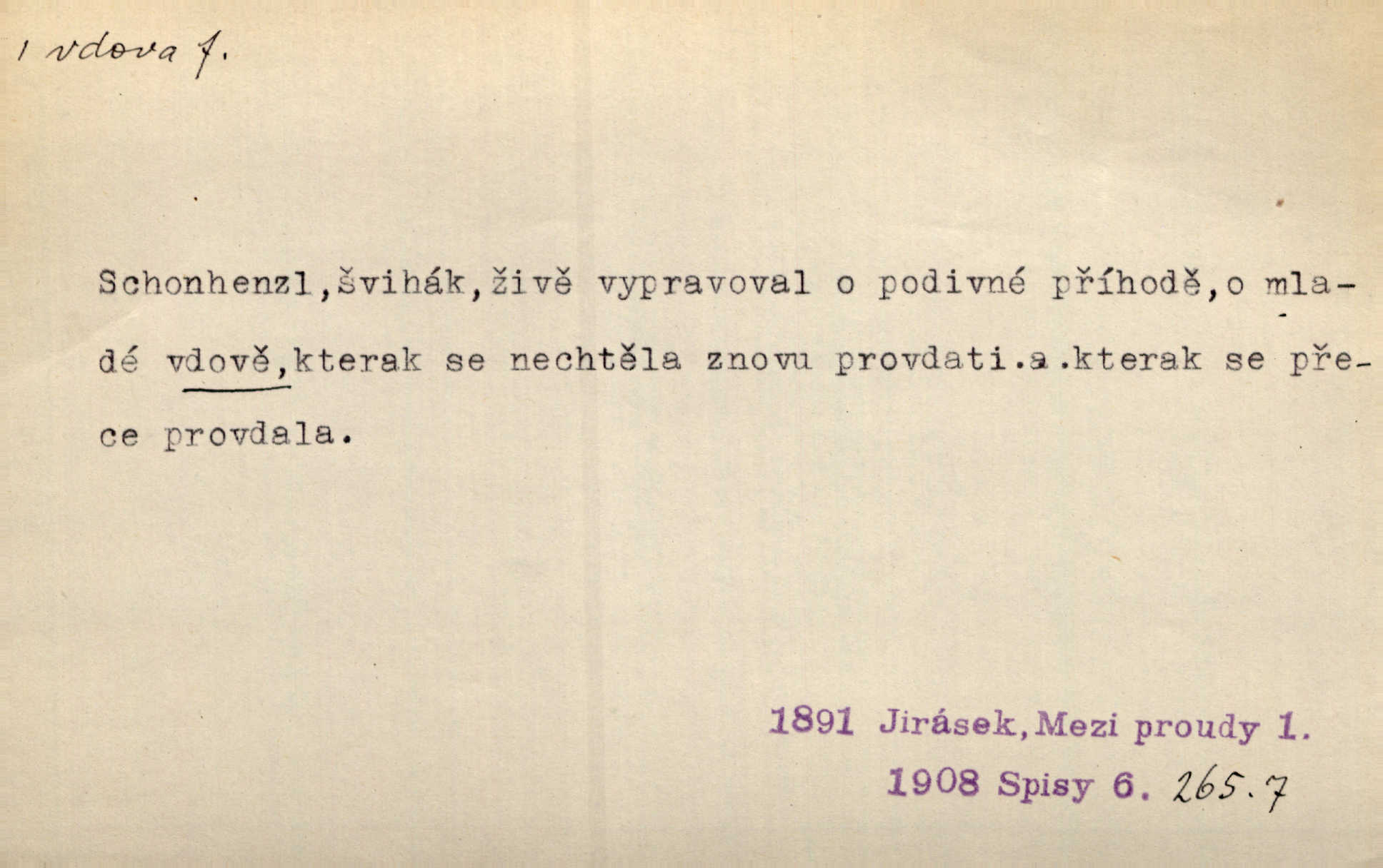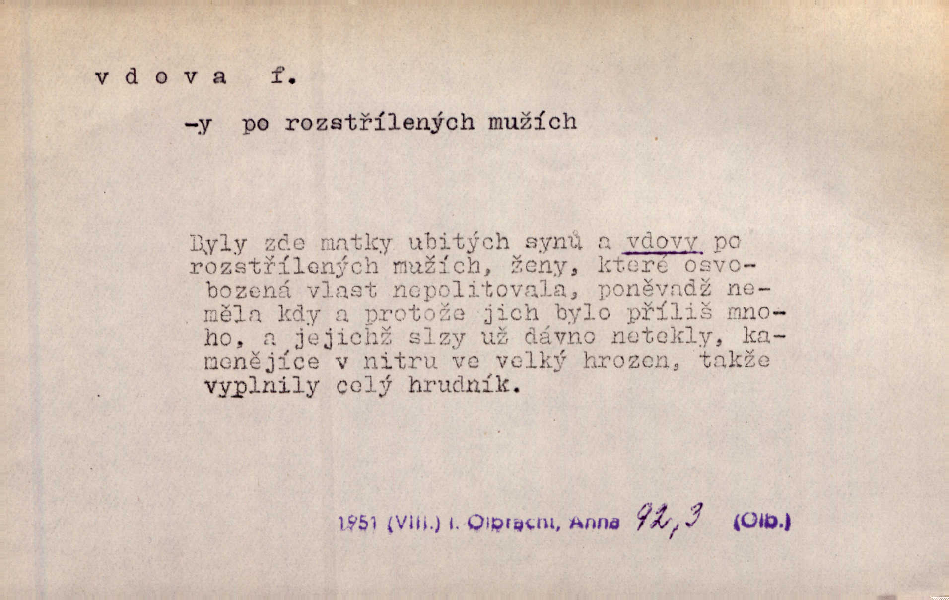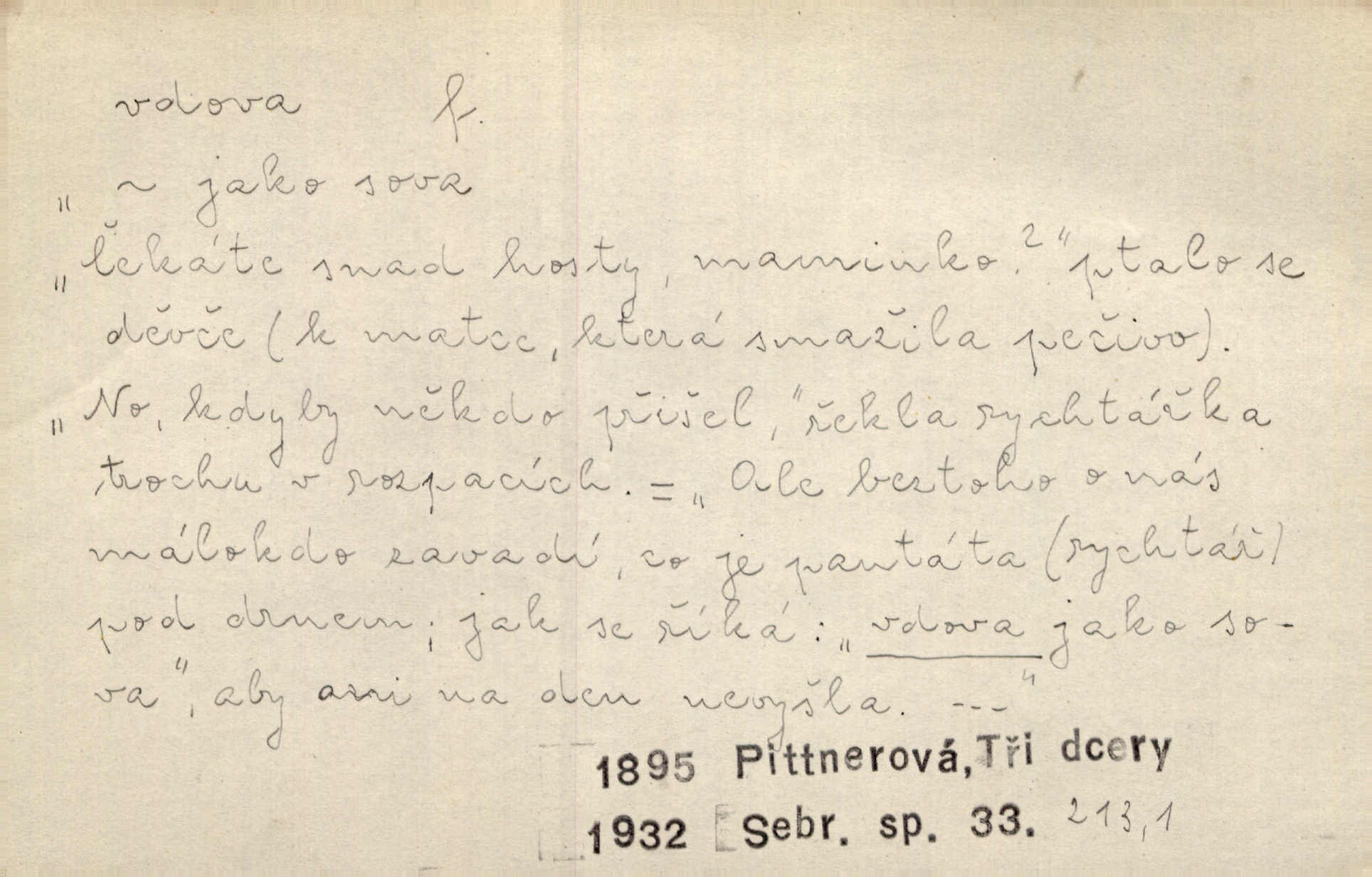 - vdova, -y f. žena, které zemřel manžel. Byla jedna chudá vdova a měla jen jednu dceru. Erb. Přijel, aby smluvil svatební smlouvu mezi polským králem a vdovou po nebožtíku králi Václavovi. Jir. Vůz plný uhlí se v kole je zvrátil. Pod vozem shasla Magdónova vdova. Bezr. Po všechen čas, co byl Šimák v žaláři, chovala se Anežka jako počestná vdova. Šmil. Plačeme(sic!) [ženské] jako vdovy velice. Hol. Na Josefa, říkávají, už i vdovin pluh vyjíždí ze dvora. Hol. Dobrý jako dítě, přispěl [Chocholoušek] často vdoviným grošem tam, kde bída byla příspěvkem nejchudších. Ner. Přen. Večer přehodil zatím lehounce vdovin závoj přes hřbety hor tmu. Kun. Budu [Michelangelo] umírat steskem po tobě, Florencie, vdovo po kráse, vdovo zrazená, vdovo šílená. K. Schulz. Zool. kachna vdova pták z podčeledi kachen plovacích, Dendrocygna viduata. Vdova rod ptáků z čeledi Spermestidae, Vidua; vdova dominikánská. Vdova rajská druh ptáka z čeledi Ploceidae, Vidua paradisea. Vdovy podčeleď čeledi Spermestidae, Viduini.