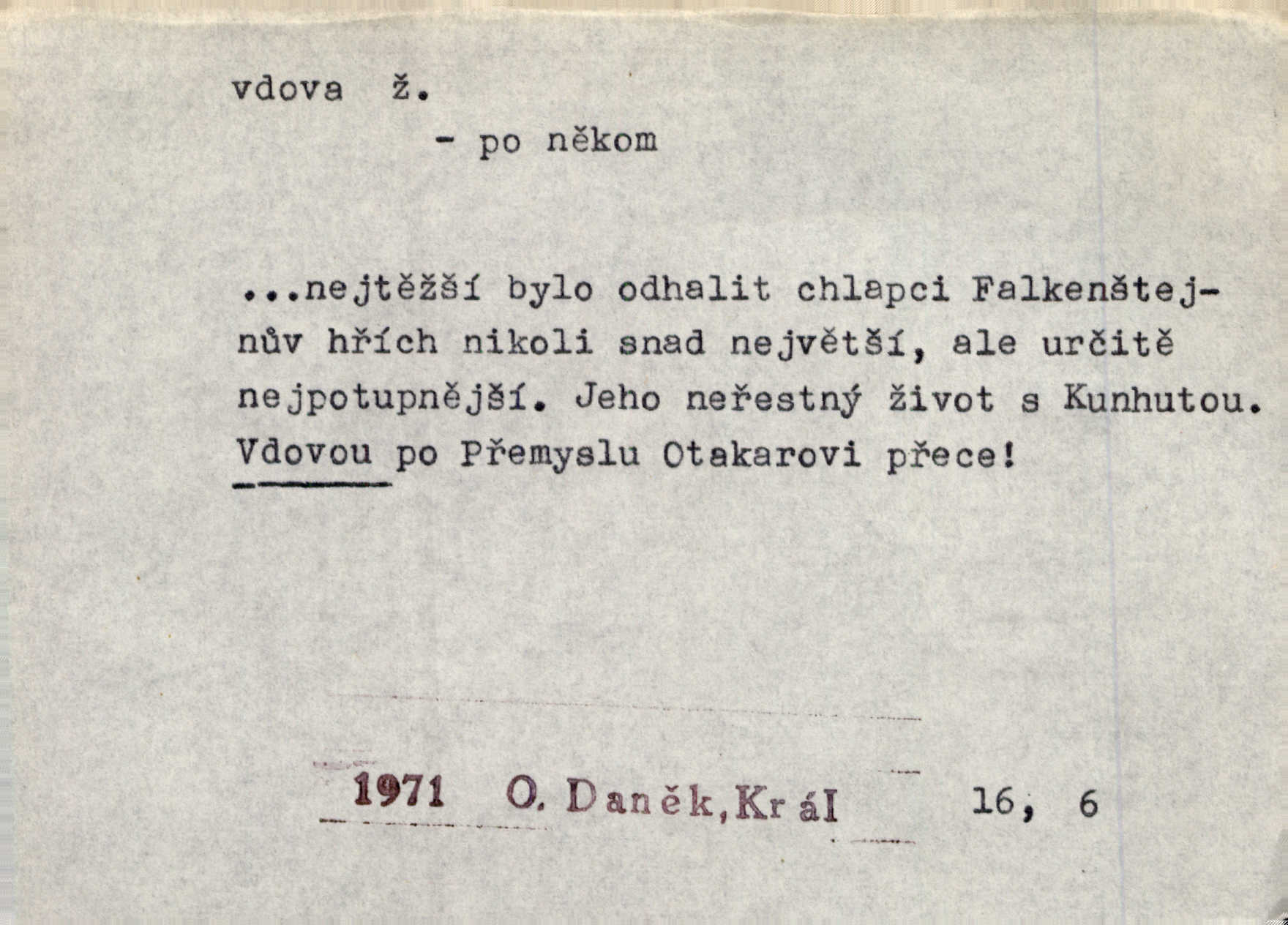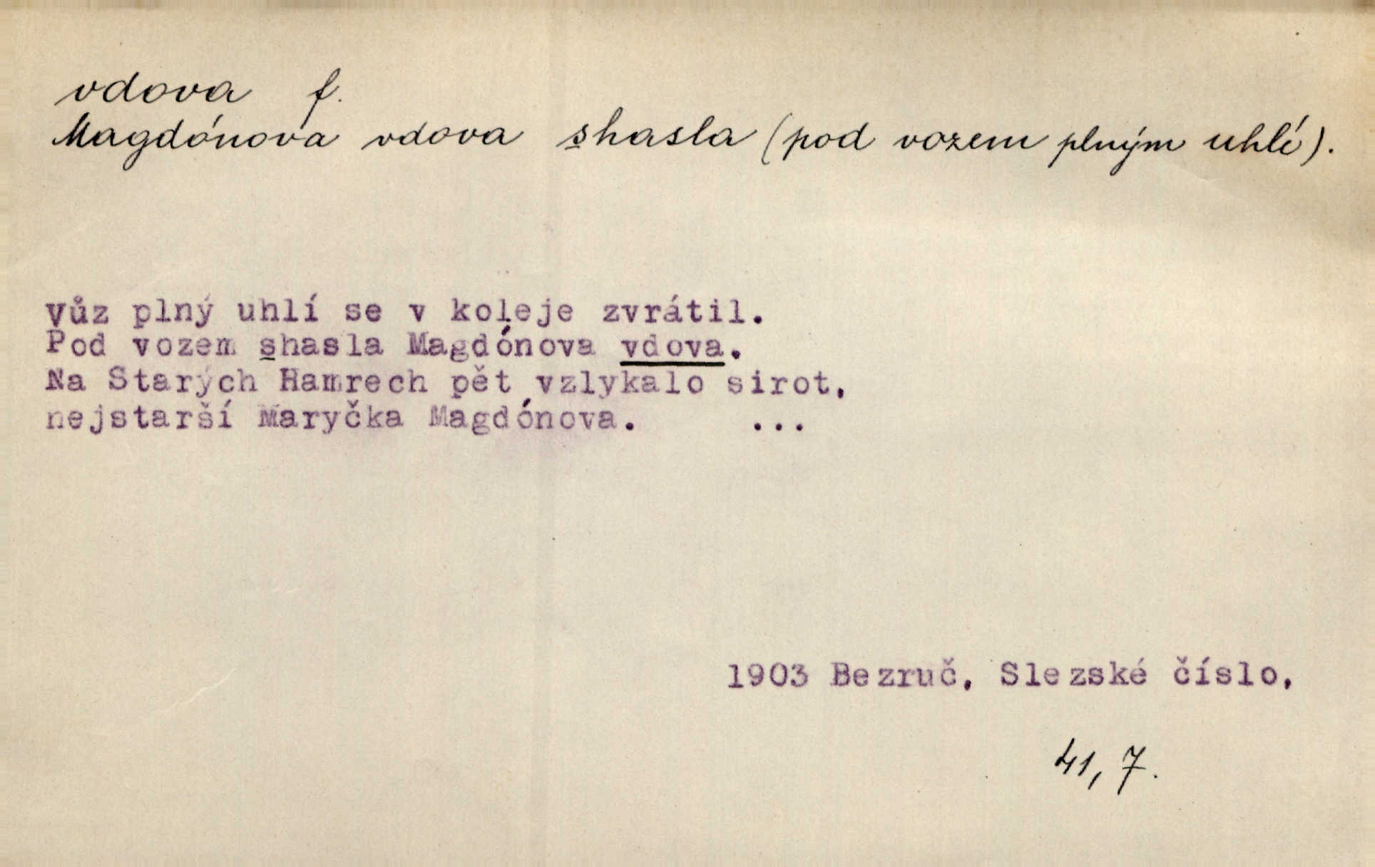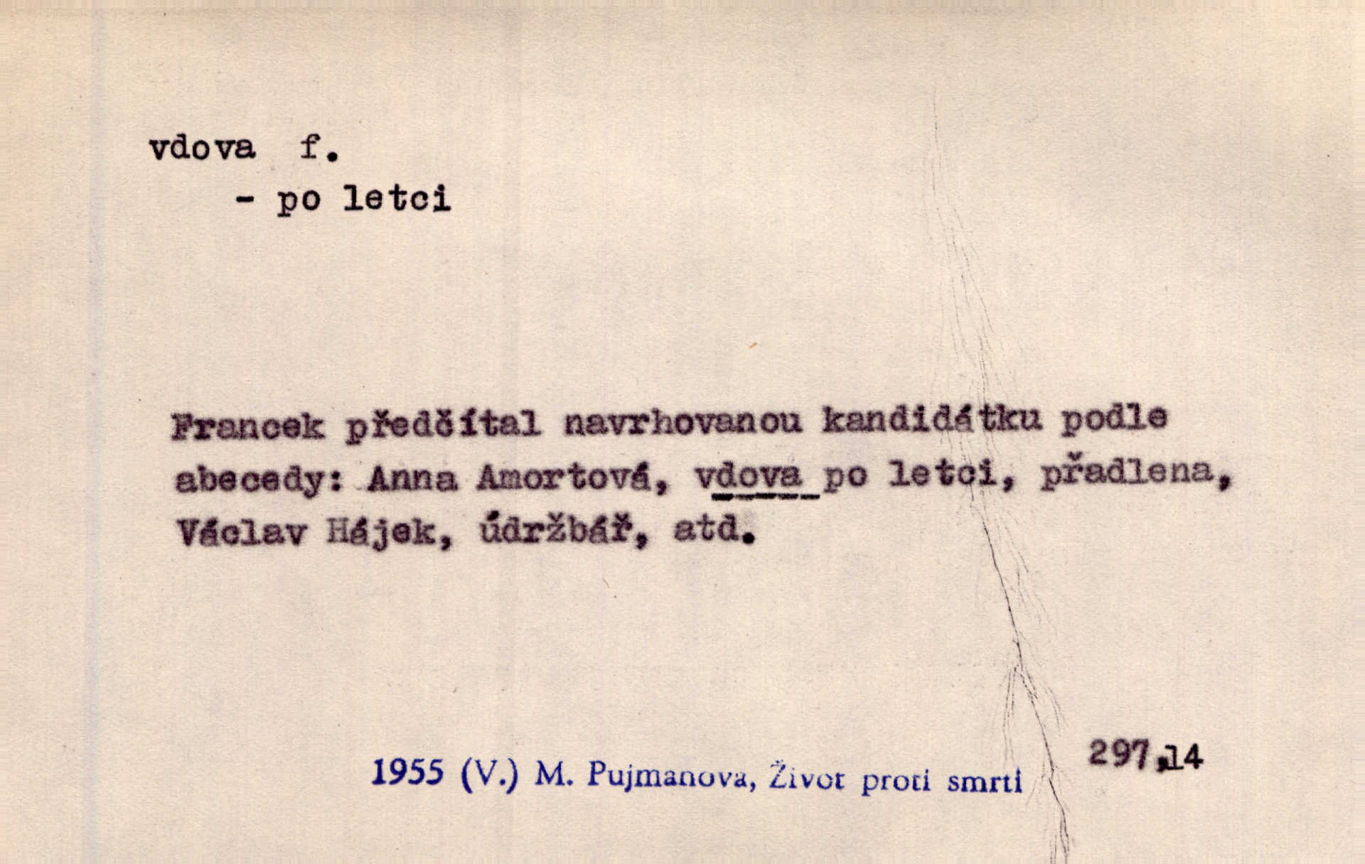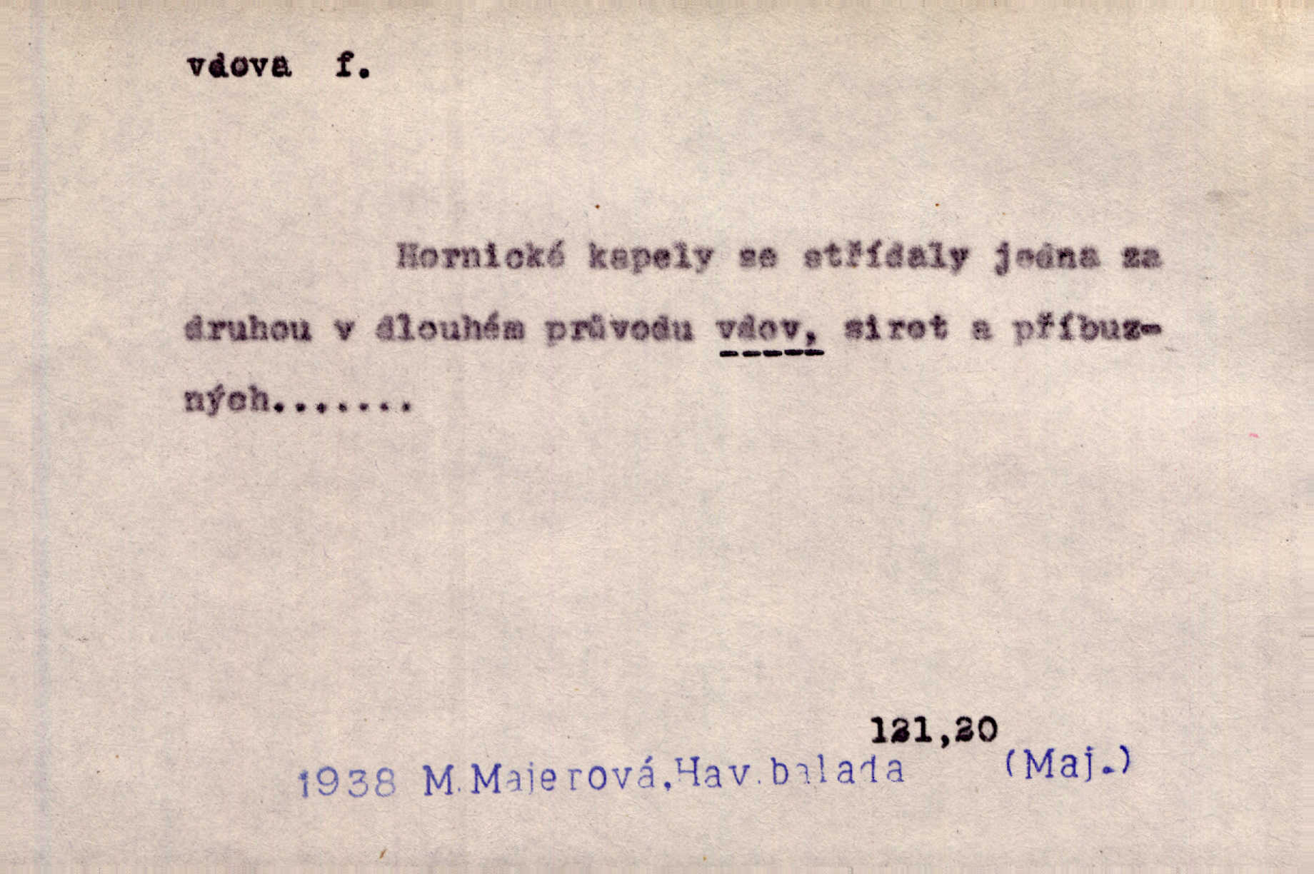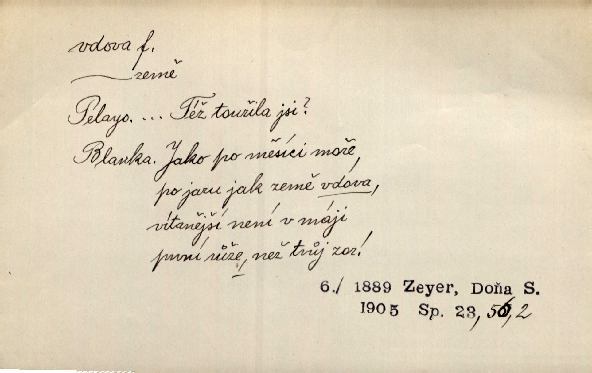 - vdova, -y f. žena, které zemřel manžel. Byla jedna chudá vdova a měla jen jednu dceru. Erb. Přijel, aby smluvil svatební smlouvu mezi polským králem a vdovou po nebožtíku králi Václavovi. Jir. Vůz plný uhlí se v kole je zvrátil. Pod vozem shasla Magdónova vdova. Bezr. Po všechen čas, co byl Šimák v žaláři, chovala se Anežka jako počestná vdova. Šmil. Plačeme(sic!) [ženské] jako vdovy velice. Hol. Na Josefa, říkávají, už i vdovin pluh vyjíždí ze dvora. Hol. Dobrý jako dítě, přispěl [Chocholoušek] často vdoviným grošem tam, kde bída byla příspěvkem nejchudších. Ner. Přen. Večer přehodil zatím lehounce vdovin závoj přes hřbety hor tmu. Kun. Budu [Michelangelo] umírat steskem po tobě, Florencie, vdovo po kráse, vdovo zrazená, vdovo šílená. K. Schulz. Zool. kachna vdova pták z podčeledi kachen plovacích, Dendrocygna viduata. Vdova rod ptáků z čeledi Spermestidae, Vidua; vdova dominikánská. Vdova rajská druh ptáka z čeledi Ploceidae, Vidua paradisea. Vdovy podčeleď čeledi Spermestidae, Viduini.