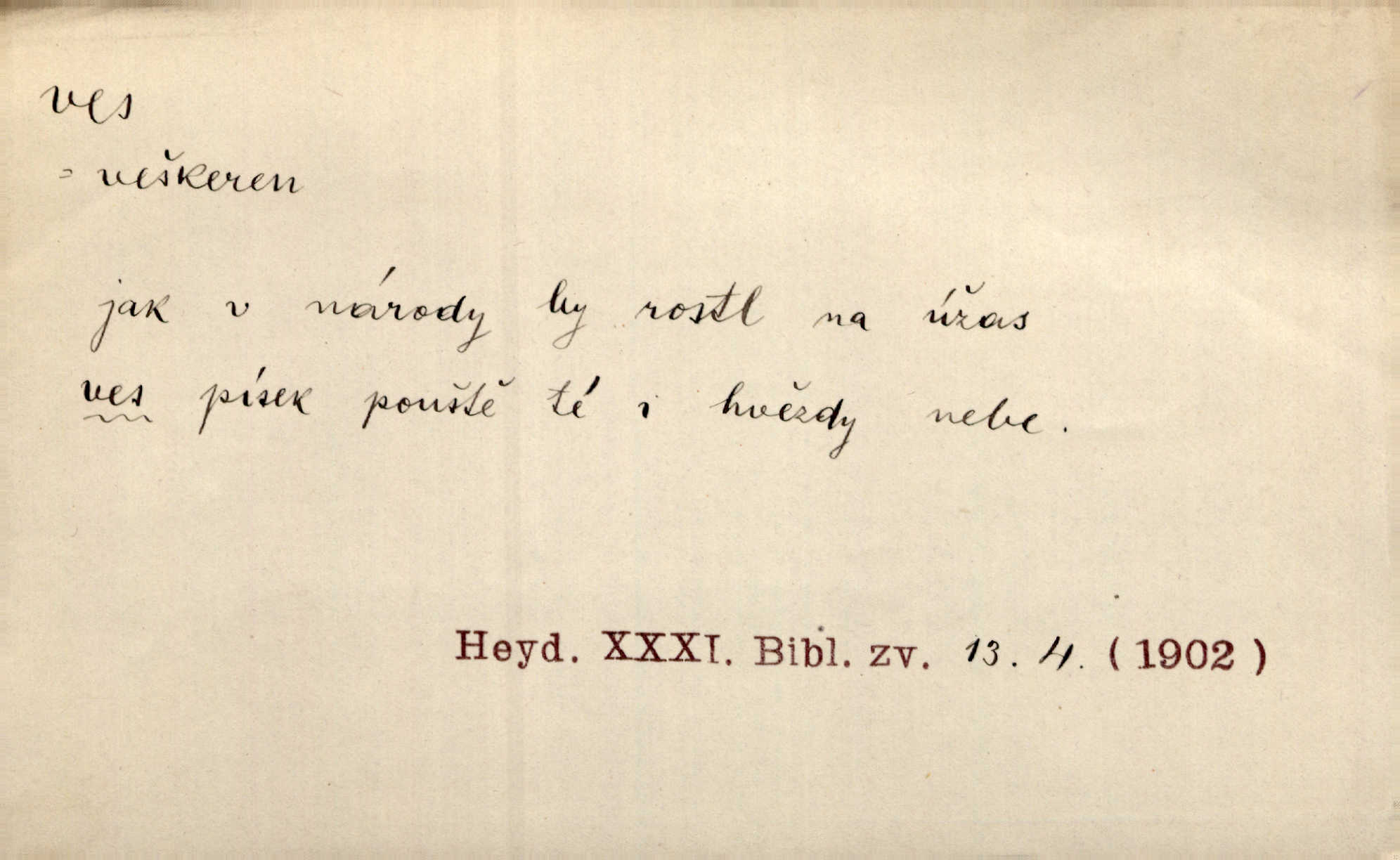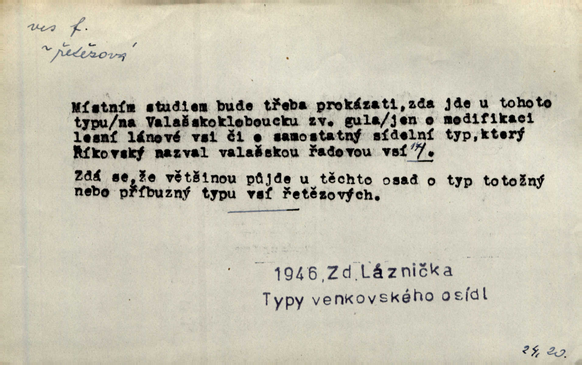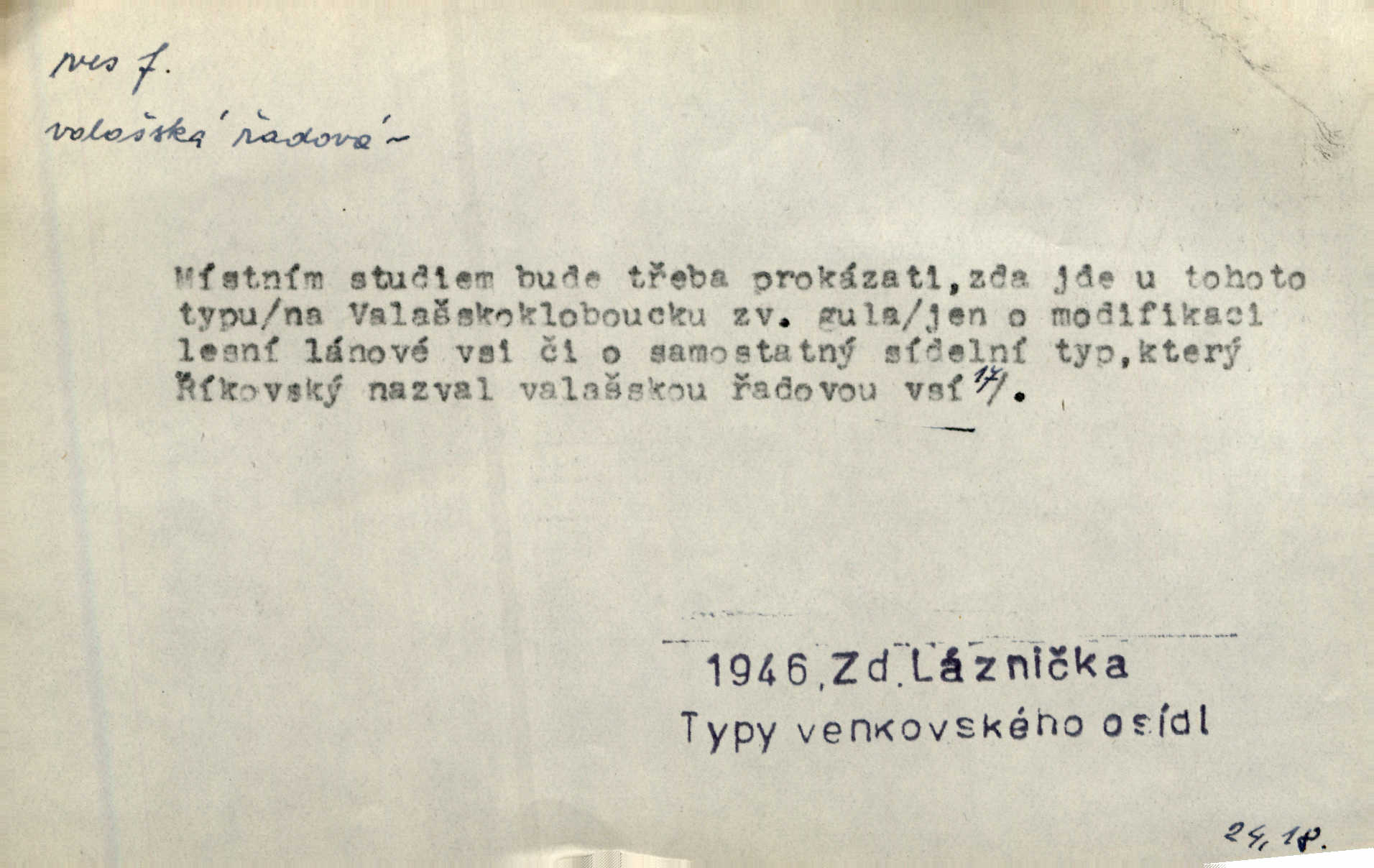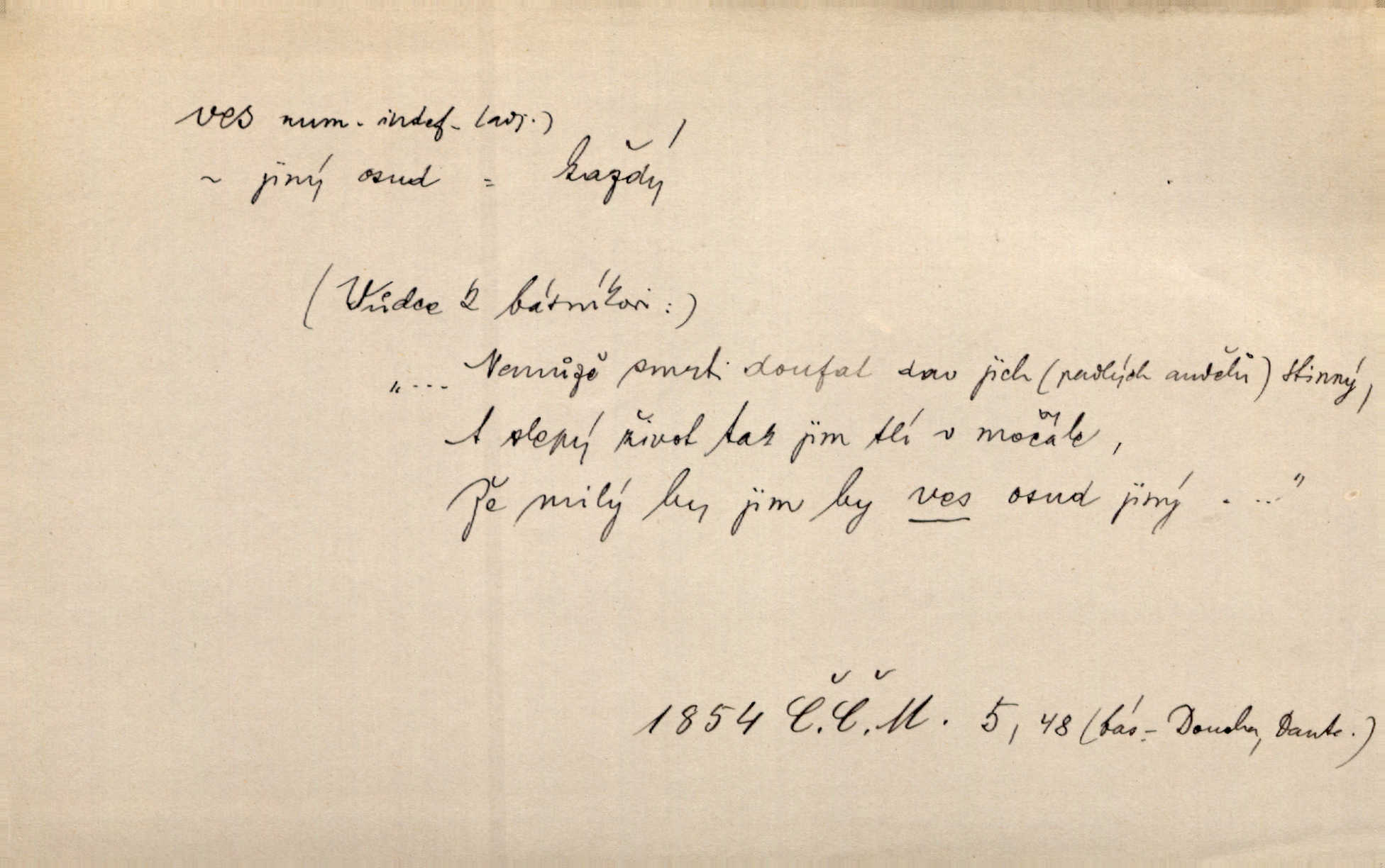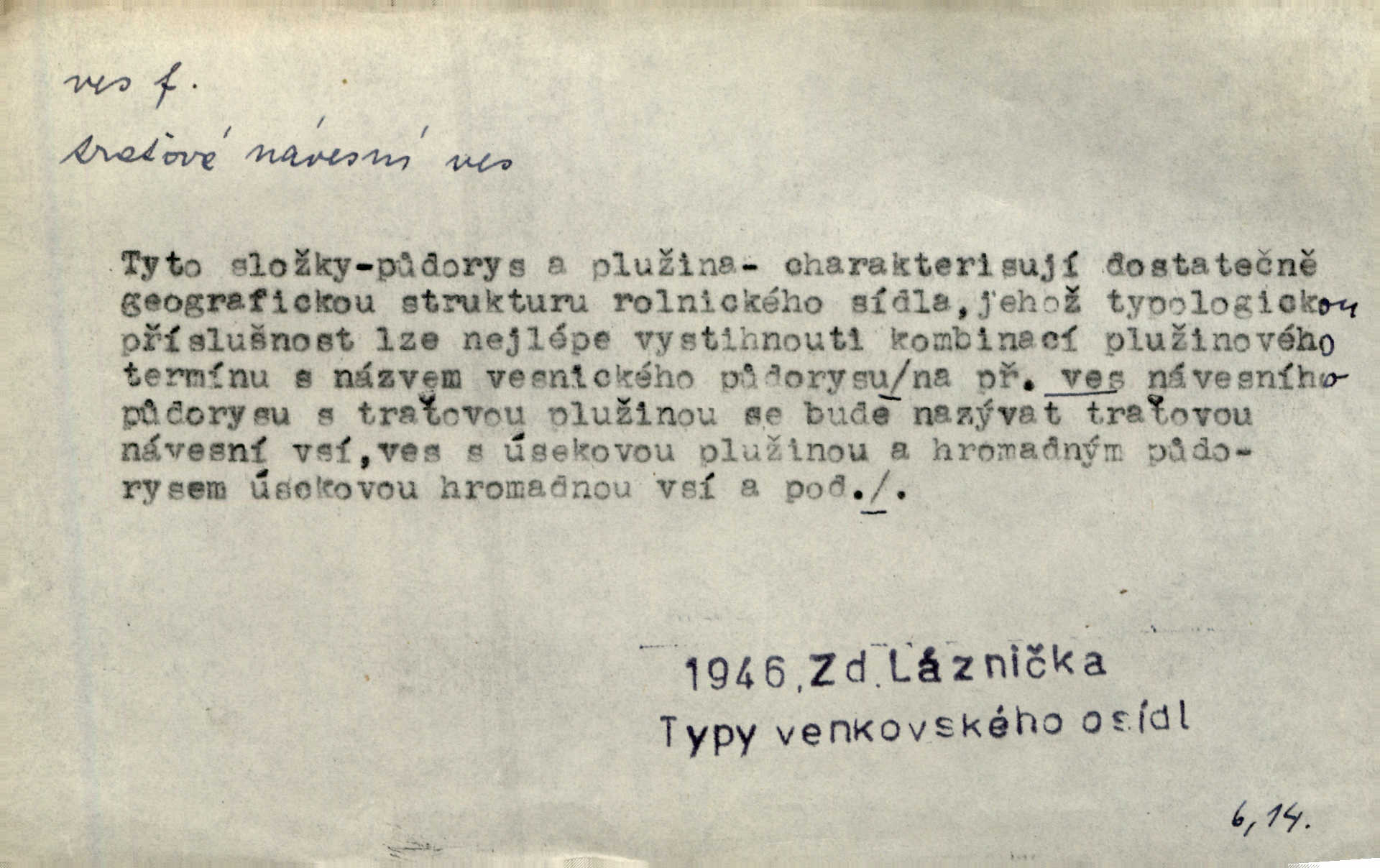 - ves, vsi f. (1. a 4. pl. vsi, 2. vsí, 3. vsím, 6. vsích, 7. vesnicemi) malá osada, mající většinou zemědělské obyvatelstvo, vesnice, dědina. Pan Ksásek byl přeložen do Kunčího, chudé horské vsi. John. Kroji tomu byla stařena věrna, co ze vsi do města přišla. Jir. Toho času leželi ve vsi myslivci. Něm. Psi houfem ve vsi zavyli, když ty pocestné zvětřili. Erb. Když vjížděl do vsi, byla jako vymřelá. Jir. Celá ves byla na nohou obyvatelé vsi. Šmil. Celá ves se dře po polích. Baar. Kouká, jak by chtěla devět vsí vypálit zamračeně, rozzlobeně. Něm. Žehravost byla nám španělskou vsí zcela cizí, neznámá. Šmil. Nábytku tu bylo všude vše plno, ale skorem o všech kusech platilo pořekadlo „každý pes jiná ves“ nic se k sobě nehodilo. Kos. D Dial. část obce, kde jsou pouze statky. Do nedávna bývaly vesnice, kdež stály selské statky („ve vsi“) a chalupy také („v chalupách“). Jir.