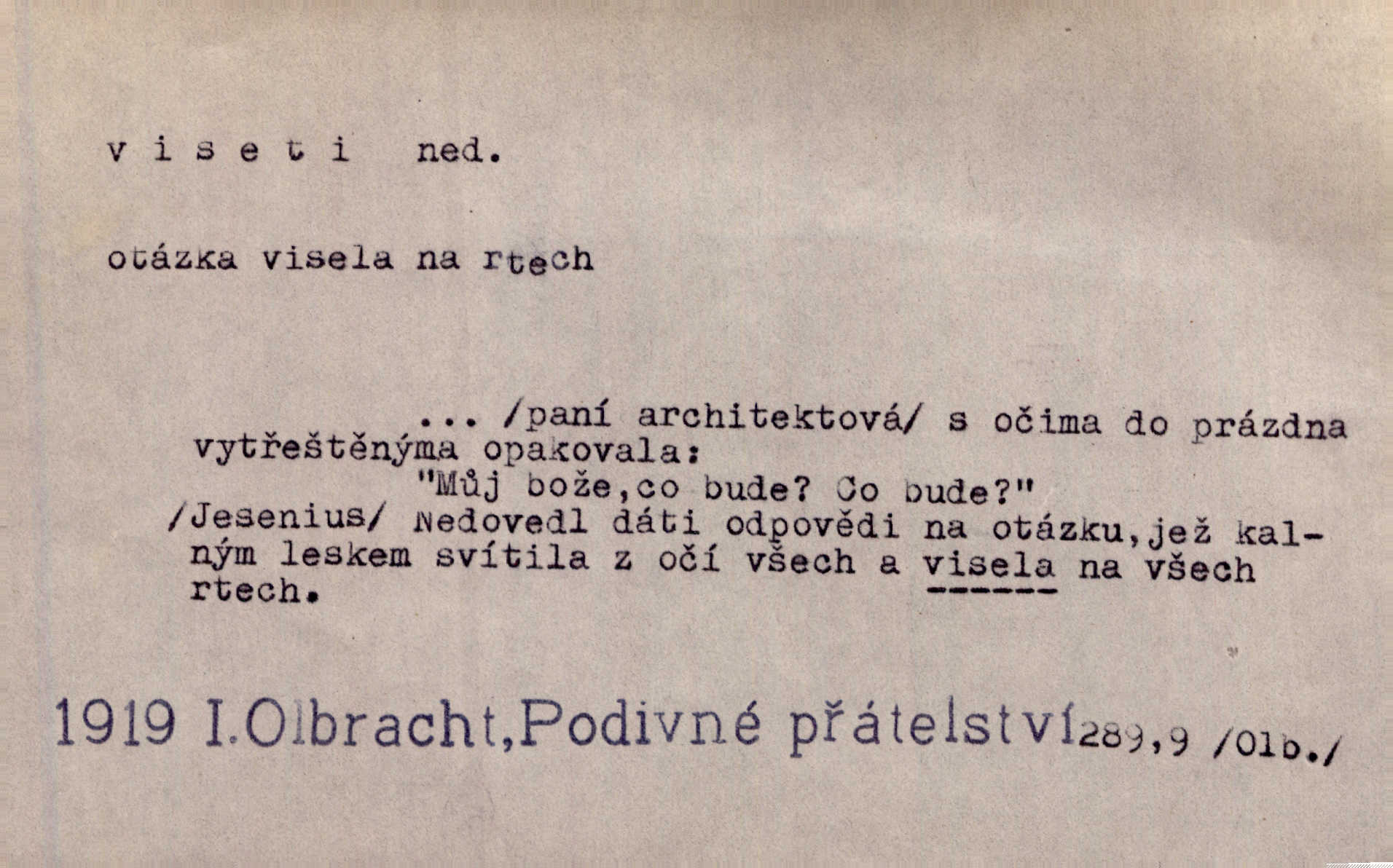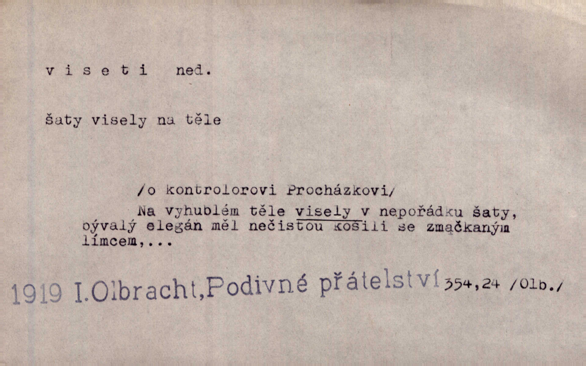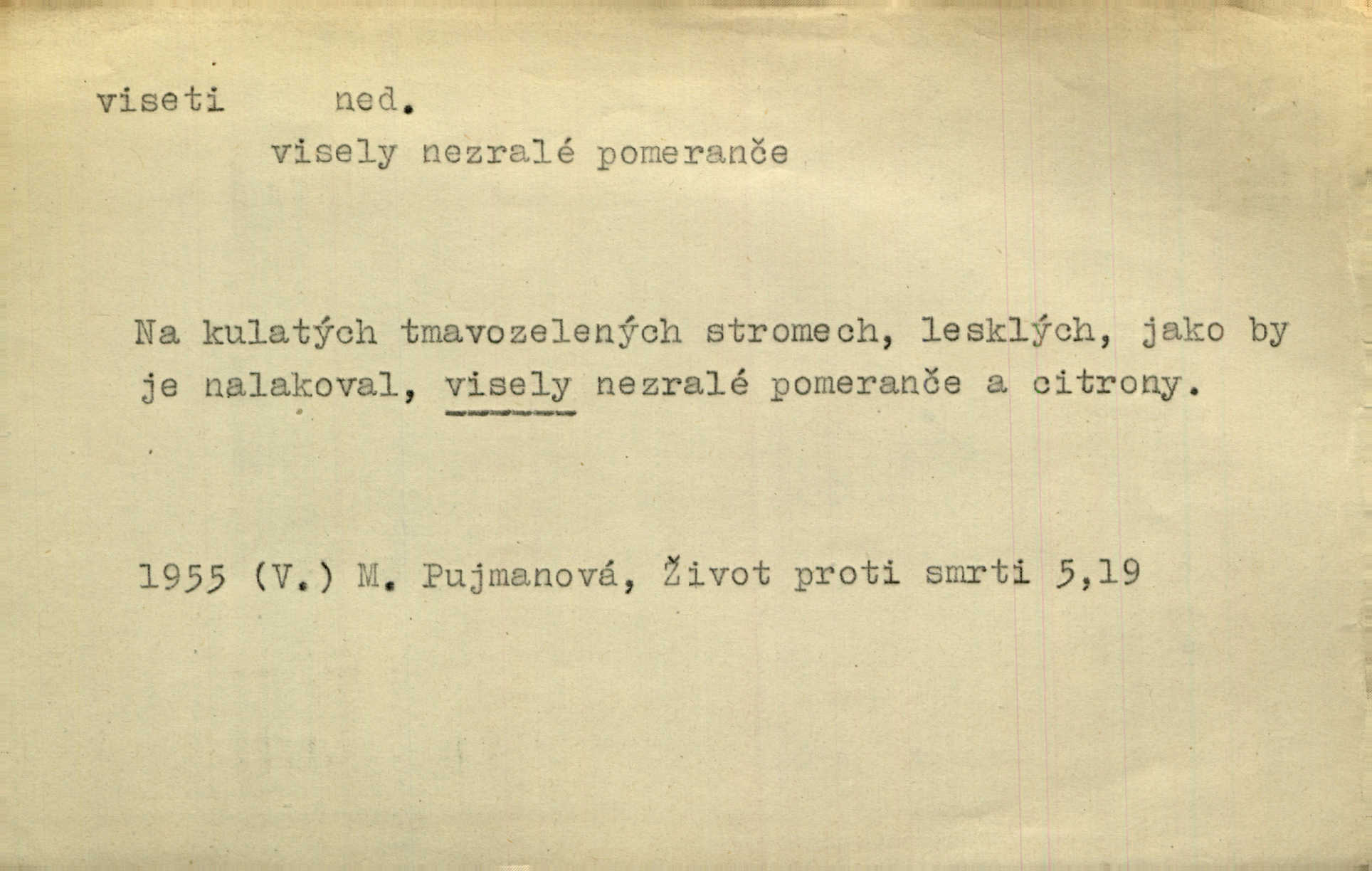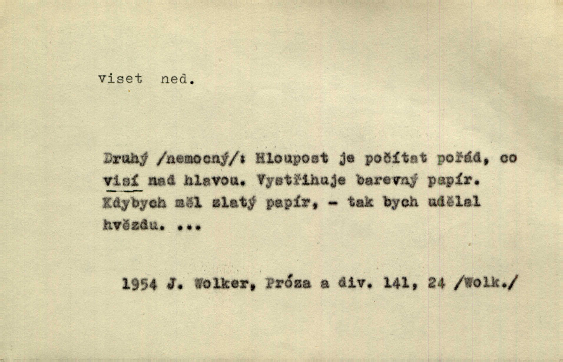 - viseti ned. býti zachycen, upevněn tak, že těžiště je pod místem upevnění. A nad ním zlatá lampa visí. Vrch. Z kapsy visel řetízek hodinek. Just. Kytara visela na krku. Rub. Komediant zazvonil velkým zvonem, který mu visel od pasu. Svět. Na levé ruce visel jí košík. Šmil. Dokončil převlek do svého občanského šatu v jeho klubovní skříni od včerejška visícího. Čap. Ch. Vzadu visel mu cop s mašlí. Něm. Podlé všeho nejsou tyto dvéře nové. Visí špatně v zámku. Pfleg. Mezkovi smekla se noha a již visel zadní částí těla nad propastí. Lum. Starý Božek visel ve větvích a sbíraje housenky, s hůry dolů cenil křivé svoje zuby. V. Mrš. Jedním skokem viseli oba chlapci otci na krku. Svět. Služby nevisí na hřebíčku nenajdou se snadno. Jah. A což nevisí ještě každým dnem nad naší hlavou Damoklův meč nehrozí. Marx-Štoll. Život její visel jen na jediné tenounké nitce byl ve velkém nebezpečí. Svět. Nejeden z těch pánů, kteří jsou dnes slavní, visel před lety u nás na černé tabuli byl dlužen. Ben. Žert. Už, prosím, visíme na Staroměstské radnici! máme ohlášky. Švan. D vůbec býti ve svislé, skleslé poloze. Netečně nyní visely mu ruce. Svob. Brada visí na prsa. Ner. Dlaní hladil si široký obličej visících vrásčitých tváří. Rais. S koutků úst visí cigareta. Poláč. Jak mdle se klonila kupředu, kterak visel oděv na její jindy tak plné postavě. Svět. D přečnívati, pnouti se nad něčím. Zasedl jsem s drahým svým přítelem na verandě kolem zámku nad mořem visící. Ner. Nad příbojem, kde visí skála holá, dlí pěvec zamyšlen a k živlům volá. Krás. D býti oběšen. Ty, chlape, budeš viset. Vanč. Chci viset, jestliže kýs arcipadouch nevymyslil si tu pomluvu. Slád. Jestli ta je pravá, tak ať visím (v důrazném ujištění). Hoffm. D (nad čím) vznášeti se nehybně nad něčím, v něčem. Nad pasekou v modru nebes nehybně visí krahujec. J. Šulc. Mračno viselo nad plochou krajinou. Vanč. Byl chladný večer, mlha visela s nebe. Zey. Sníh ležel všude, nebe šedivé nad černým hvozdem viselo. Zey. Zářijové slunce viselo na bleděmodré, bezmračné obloze jako zralý, ohnivý plod. K. J. Ben. Na obzoru širém juž visí noc. Vrch. Politický program sebe lepší, když není schopen a přijat mnohými a mnohými jednotlivci, ve vzduchu visí, je abstraktní nemá souvislost se skutečností. Naše d. D (na kom, n. čem) váznouti, lpěti, tkvíti na někom n. něčem. Visí na tom jakési, starému pánu dobře povědomé trestní vyšetřování. Staš. Kleveta byla slavně vyvrácena — ale na Bozděchovi ještě dlouho po tom z ní něco viselo. Kronb. Z každé třeba nejhanebněji vymyšlené lži vždy předce nějaká skvrna viseti zůstane. Ner. Na patách visela mu [Jardovi] pořád maminka, služka nebo tatínek stále za ním chodili. Hašková. Na rtech stále visela jí otázka. Svob. Ať je pokyn jakkoliv správný, může zůstat viset ve vzduchu, budou-li na odpovědných místech stát lidé, kteří nejsou schopni tento pokyn uskutečnit minouti se účinkem. R. právo. Šafránka visela očima na dědkovi karbaníku stále ho pozorovala. Herrm. Jeho zrak visel ustavičně na její tváři. Zey. Oni všichni zdají se viseti na mých rtech, mých očích a čekají na to, co vyřknu. Kun. Pomoz mi, zůstala jsem zde někde viset zachytila jsem šatem a uvázla. Ner. D (čím, s čím) slang. býti dlužen nějakou částku. Posléze zůstal předce asi desítkou viseti a nedal se dlouho vidět. Sab. S loňským nedoplatkem bude teď u firmy viset s dvanácti sty. Horečka. Tak namátkou si vzpomínám, že tady visíte pěkným penízem již od léta. Vanč. Visíme tam třiceti korunami. Lang. D (na kom) lpěti na někom jako nějaká starost, těžká povinnost, tížiti někoho; (nad kým n. čím) hroziti někomu n. něčemu nepříznivým obratem, nebezpečím. Všecko všude visí na člověku! Svob. Všecko jen na tobě visí. A. Mrš. Hmotná starost o ně [sourozence] visela na něm jako závaží. Rozhlas. Bankrot zemský se vší svou hrůzou visí nám nad hlavami. Havl. Pachtil se v lomu, kde smrt pořád nad ním visela. Svět. Cosi viselo ve vzduchu, o tom nebylo pochyby. K. J. Ben. D (na kom n. čem, řidč. od koho n. čeho, čím) poněk. zast. záviseti. Bude všechno viset na předsedovi, ku které straně se přidá. Staš. Všecko visí ovšem na povaze Luisině. Šmil. Snad i jeho život na tom visí, jakým se bude na první pohled císaři zdát. Zey. Napřed zjednati bylo dovolení nejvyšších úředníků a místodržících, na jejichž dobrém zdání takový zákup visel rozhodně. Win. Vše od krále visí, co se stane. A. Dvoř. Zásada svrchované autority a celé ústrojí církve visely takořka od rozhodnutí otázky české. Pal. I když viseli Rakovničtí robotou na Hrádku, oslavovali vždy den, kdy hejtman z Hrádku nový úřad posazoval. Win. Z vůle jeho jediného visel pokoj v Čechách. Pal. D (na kom n. čem) býti cele někomu n. něčemu oddán, něčím zaujat, vřele milovati někoho n. něco. Je to dítě, má tě rádo, visí na tobě. Kun. On na statku vezdejším nevisí tak jako sestra jeho. Zey. Srdce tvé visí na statcích pozemských. Prav. Bylo zřejmo, jak na bratru visí, jak jej má ráda. Jir. Bylo zřejmo, jak visí na tom plánu svém vdáti Lidušku za Piltyše. Štech. — V. t. visení.