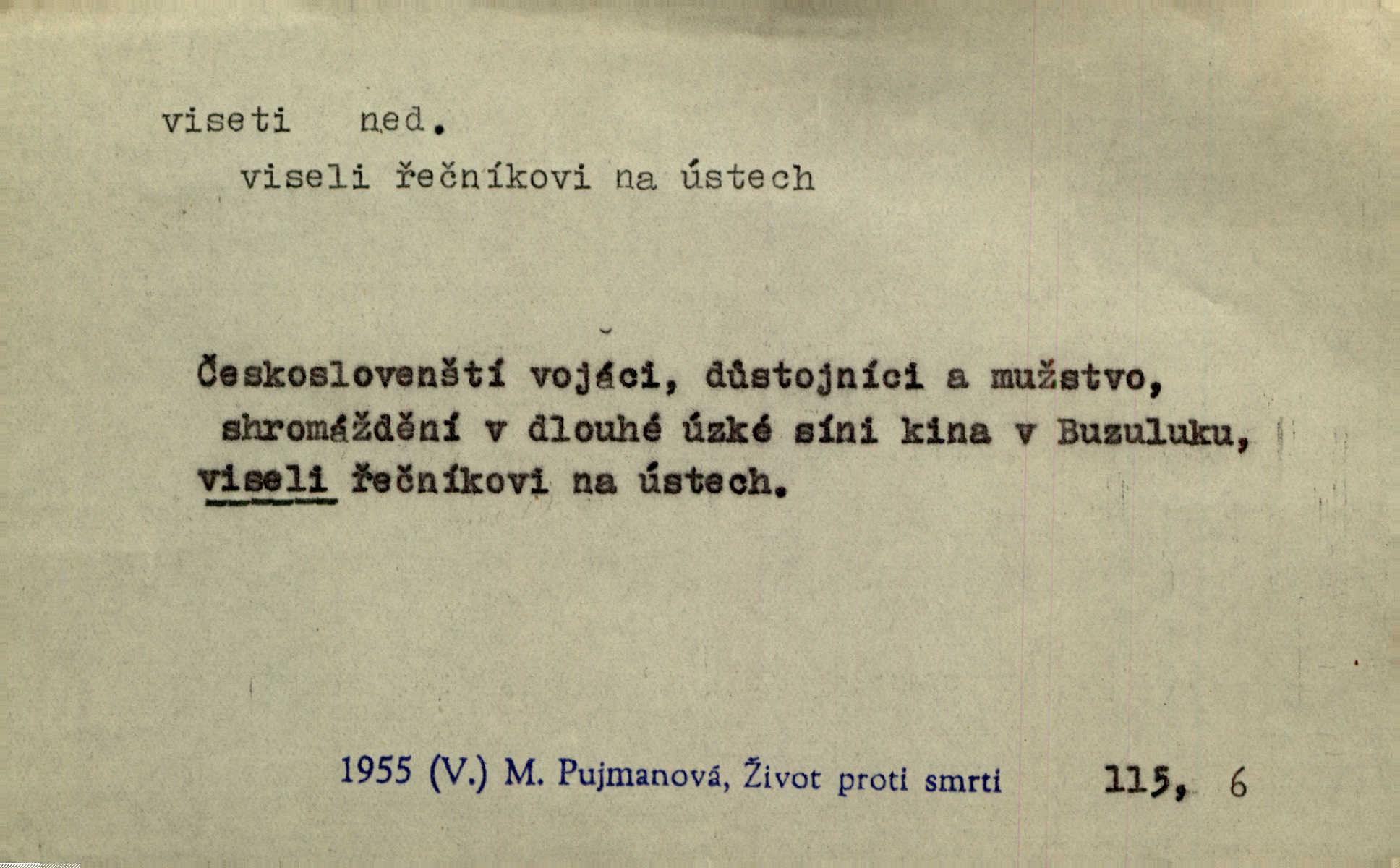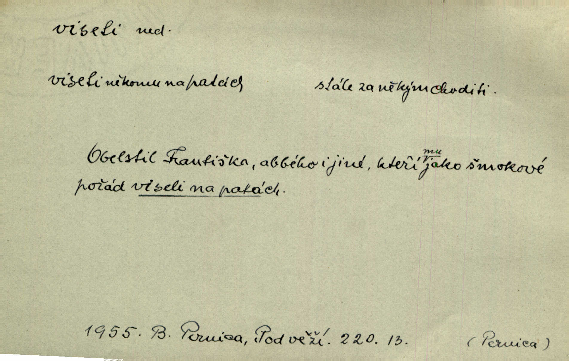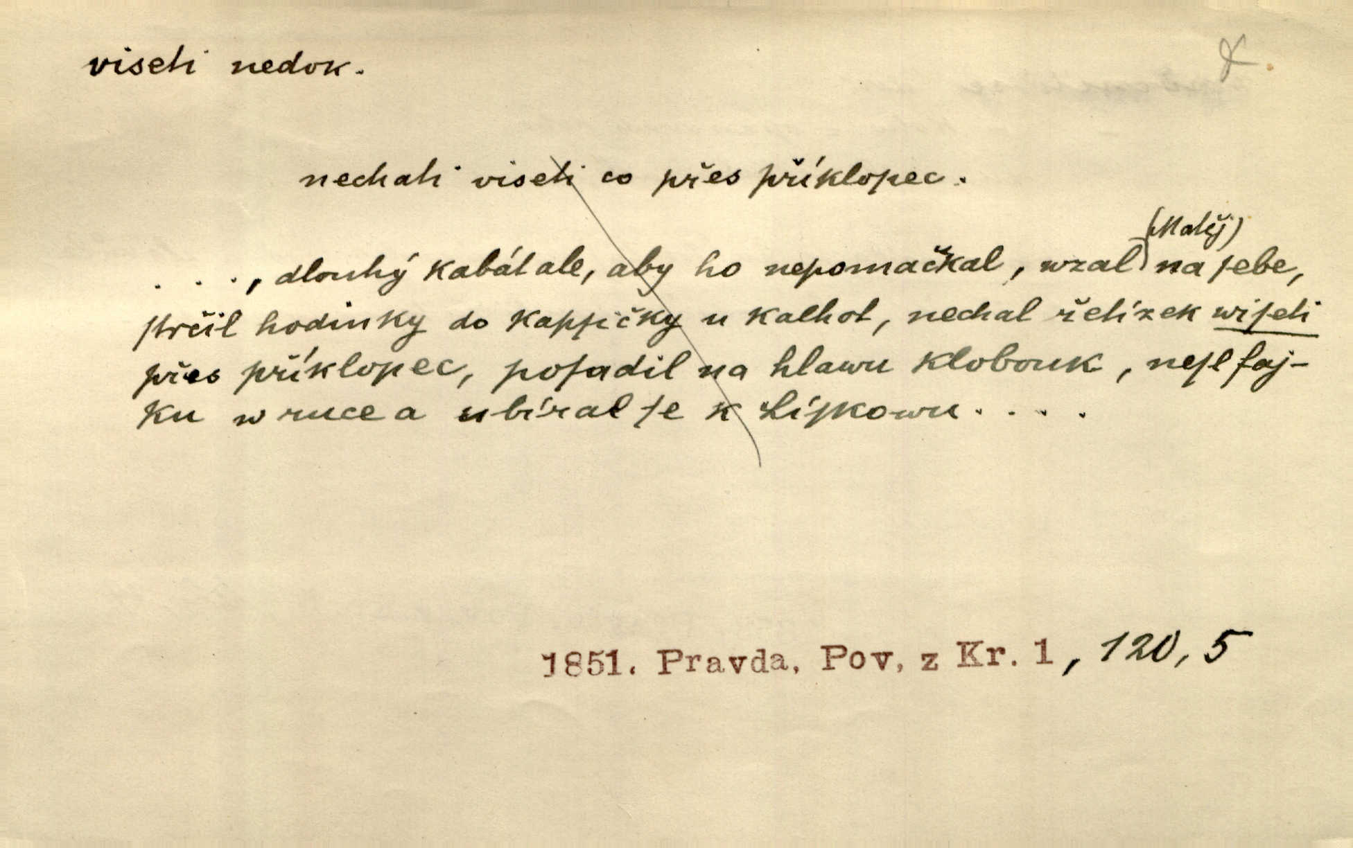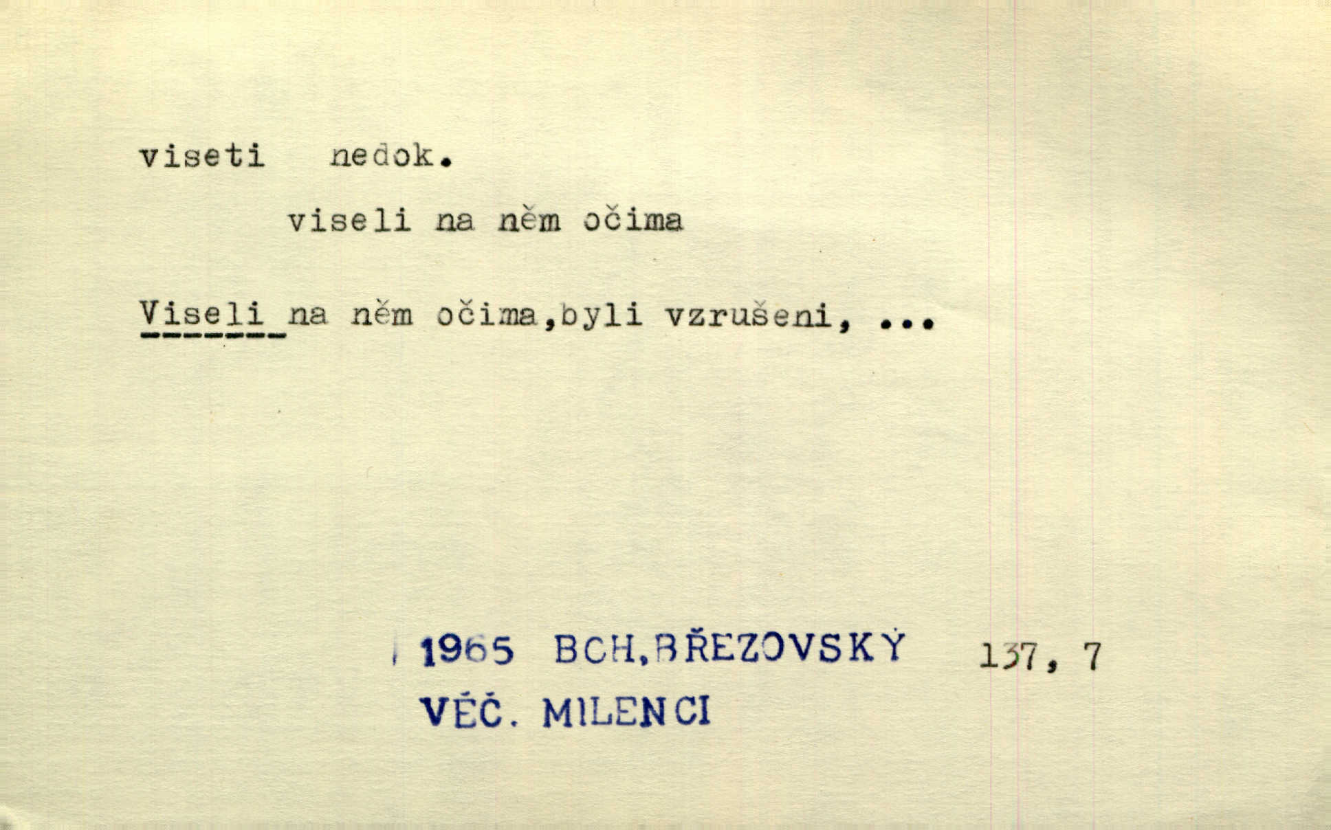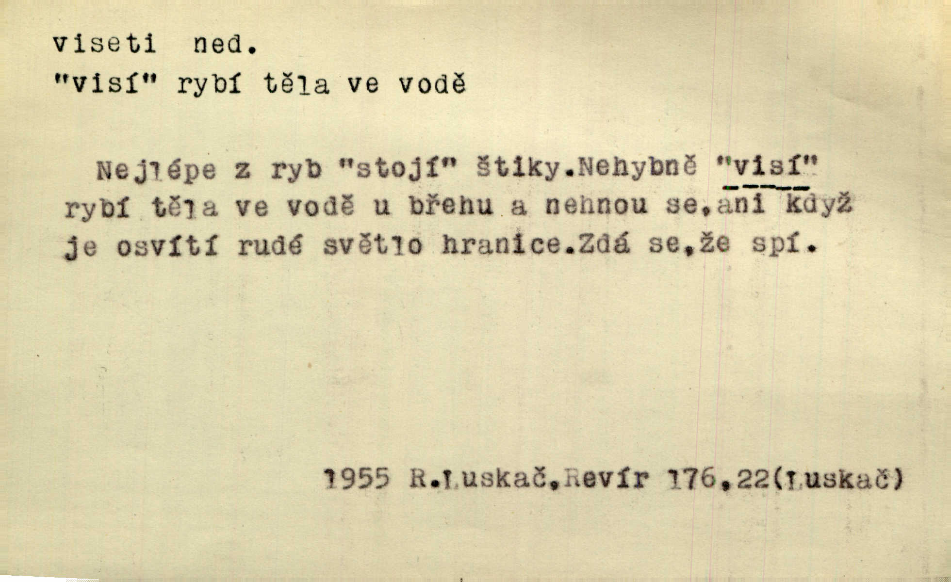 - viseti ned. býti zachycen, upevněn tak, že těžiště je pod místem upevnění. A nad ním zlatá lampa visí. Vrch. Z kapsy visel řetízek hodinek. Just. Kytara visela na krku. Rub. Komediant zazvonil velkým zvonem, který mu visel od pasu. Svět. Na levé ruce visel jí košík. Šmil. Dokončil převlek do svého občanského šatu v jeho klubovní skříni od včerejška visícího. Čap. Ch. Vzadu visel mu cop s mašlí. Něm. Podlé všeho nejsou tyto dvéře nové. Visí špatně v zámku. Pfleg. Mezkovi smekla se noha a již visel zadní částí těla nad propastí. Lum. Starý Božek visel ve větvích a sbíraje housenky, s hůry dolů cenil křivé svoje zuby. V. Mrš. Jedním skokem viseli oba chlapci otci na krku. Svět. Služby nevisí na hřebíčku nenajdou se snadno. Jah. A což nevisí ještě každým dnem nad naší hlavou Damoklův meč nehrozí. Marx-Štoll. Život její visel jen na jediné tenounké nitce byl ve velkém nebezpečí. Svět. Nejeden z těch pánů, kteří jsou dnes slavní, visel před lety u nás na černé tabuli byl dlužen. Ben. Žert. Už, prosím, visíme na Staroměstské radnici! máme ohlášky. Švan. D vůbec býti ve svislé, skleslé poloze. Netečně nyní visely mu ruce. Svob. Brada visí na prsa. Ner. Dlaní hladil si široký obličej visících vrásčitých tváří. Rais. S koutků úst visí cigareta. Poláč. Jak mdle se klonila kupředu, kterak visel oděv na její jindy tak plné postavě. Svět. D přečnívati, pnouti se nad něčím. Zasedl jsem s drahým svým přítelem na verandě kolem zámku nad mořem visící. Ner. Nad příbojem, kde visí skála holá, dlí pěvec zamyšlen a k živlům volá. Krás. D býti oběšen. Ty, chlape, budeš viset. Vanč. Chci viset, jestliže kýs arcipadouch nevymyslil si tu pomluvu. Slád. Jestli ta je pravá, tak ať visím (v důrazném ujištění). Hoffm. D (nad čím) vznášeti se nehybně nad něčím, v něčem. Nad pasekou v modru nebes nehybně visí krahujec. J. Šulc. Mračno viselo nad plochou krajinou. Vanč. Byl chladný večer, mlha visela s nebe. Zey. Sníh ležel všude, nebe šedivé nad černým hvozdem viselo. Zey. Zářijové slunce viselo na bleděmodré, bezmračné obloze jako zralý, ohnivý plod. K. J. Ben. Na obzoru širém juž visí noc. Vrch. Politický program sebe lepší, když není schopen a přijat mnohými a mnohými jednotlivci, ve vzduchu visí, je abstraktní nemá souvislost se skutečností. Naše d. D (na kom, n. čem) váznouti, lpěti, tkvíti na někom n. něčem. Visí na tom jakési, starému pánu dobře povědomé trestní vyšetřování. Staš. Kleveta byla slavně vyvrácena — ale na Bozděchovi ještě dlouho po tom z ní něco viselo. Kronb. Z každé třeba nejhanebněji vymyšlené lži vždy předce nějaká skvrna viseti zůstane. Ner. Na patách visela mu [Jardovi] pořád maminka, služka nebo tatínek stále za ním chodili. Hašková. Na rtech stále visela jí otázka. Svob. Ať je pokyn jakkoliv správný, může zůstat viset ve vzduchu, budou-li na odpovědných místech stát lidé, kteří nejsou schopni tento pokyn uskutečnit minouti se účinkem. R. právo. Šafránka visela očima na dědkovi karbaníku stále ho pozorovala. Herrm. Jeho zrak visel ustavičně na její tváři. Zey. Oni všichni zdají se viseti na mých rtech, mých očích a čekají na to, co vyřknu. Kun. Pomoz mi, zůstala jsem zde někde viset zachytila jsem šatem a uvázla. Ner. D (čím, s čím) slang. býti dlužen nějakou částku. Posléze zůstal předce asi desítkou viseti a nedal se dlouho vidět. Sab. S loňským nedoplatkem bude teď u firmy viset s dvanácti sty. Horečka. Tak namátkou si vzpomínám, že tady visíte pěkným penízem již od léta. Vanč. Visíme tam třiceti korunami. Lang. D (na kom) lpěti na někom jako nějaká starost, těžká povinnost, tížiti někoho; (nad kým n. čím) hroziti někomu n. něčemu nepříznivým obratem, nebezpečím. Všecko všude visí na člověku! Svob. Všecko jen na tobě visí. A. Mrš. Hmotná starost o ně [sourozence] visela na něm jako závaží. Rozhlas. Bankrot zemský se vší svou hrůzou visí nám nad hlavami. Havl. Pachtil se v lomu, kde smrt pořád nad ním visela. Svět. Cosi viselo ve vzduchu, o tom nebylo pochyby. K. J. Ben. D (na kom n. čem, řidč. od koho n. čeho, čím) poněk. zast. záviseti. Bude všechno viset na předsedovi, ku které straně se přidá. Staš. Všecko visí ovšem na povaze Luisině. Šmil. Snad i jeho život na tom visí, jakým se bude na první pohled císaři zdát. Zey. Napřed zjednati bylo dovolení nejvyšších úředníků a místodržících, na jejichž dobrém zdání takový zákup visel rozhodně. Win. Vše od krále visí, co se stane. A. Dvoř. Zásada svrchované autority a celé ústrojí církve visely takořka od rozhodnutí otázky české. Pal. I když viseli Rakovničtí robotou na Hrádku, oslavovali vždy den, kdy hejtman z Hrádku nový úřad posazoval. Win. Z vůle jeho jediného visel pokoj v Čechách. Pal. D (na kom n. čem) býti cele někomu n. něčemu oddán, něčím zaujat, vřele milovati někoho n. něco. Je to dítě, má tě rádo, visí na tobě. Kun. On na statku vezdejším nevisí tak jako sestra jeho. Zey. Srdce tvé visí na statcích pozemských. Prav. Bylo zřejmo, jak na bratru visí, jak jej má ráda. Jir. Bylo zřejmo, jak visí na tom plánu svém vdáti Lidušku za Piltyše. Štech. — V. t. visení.