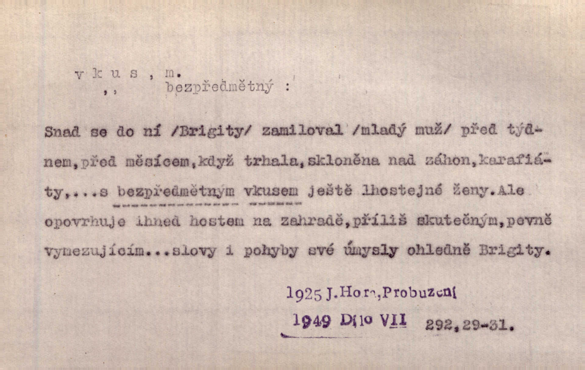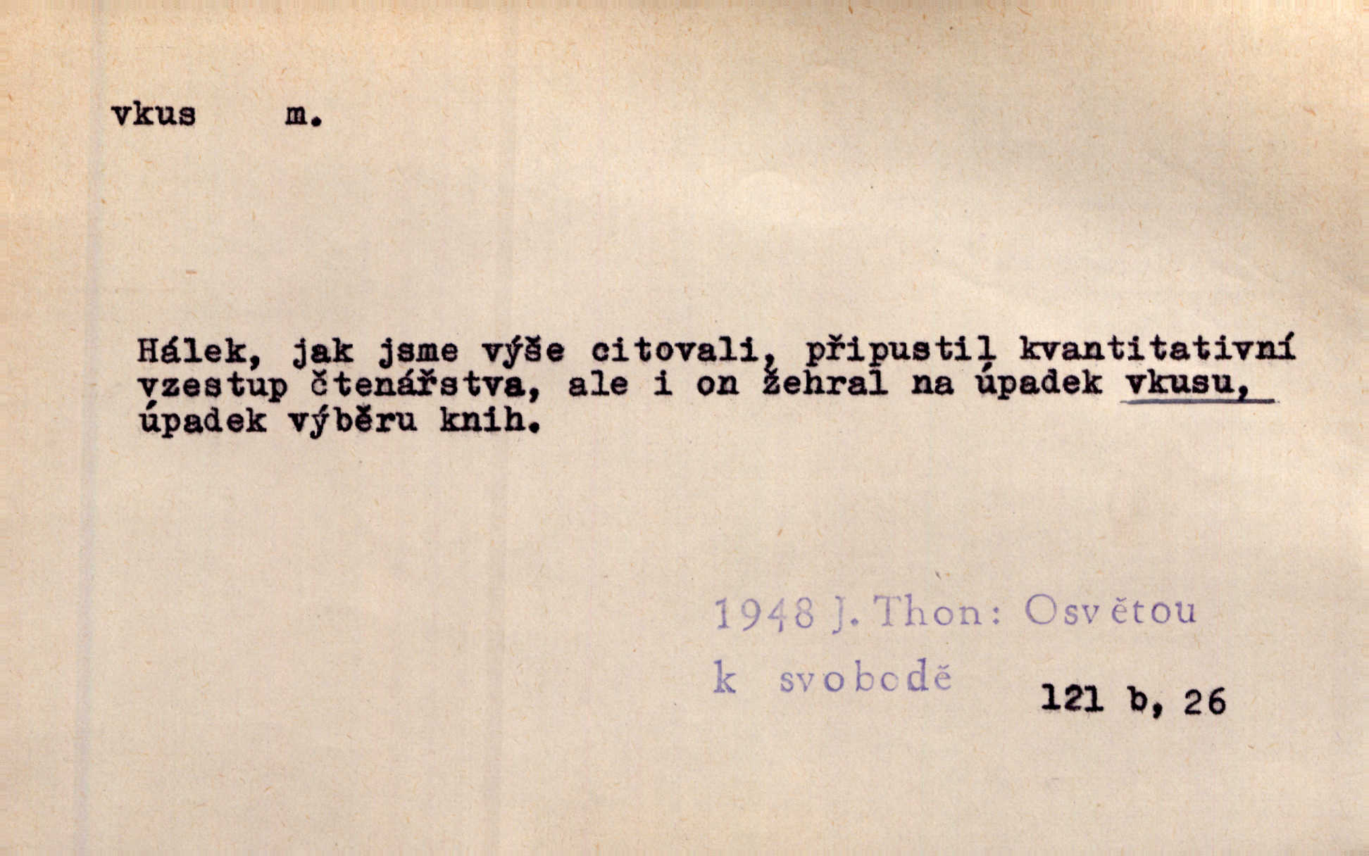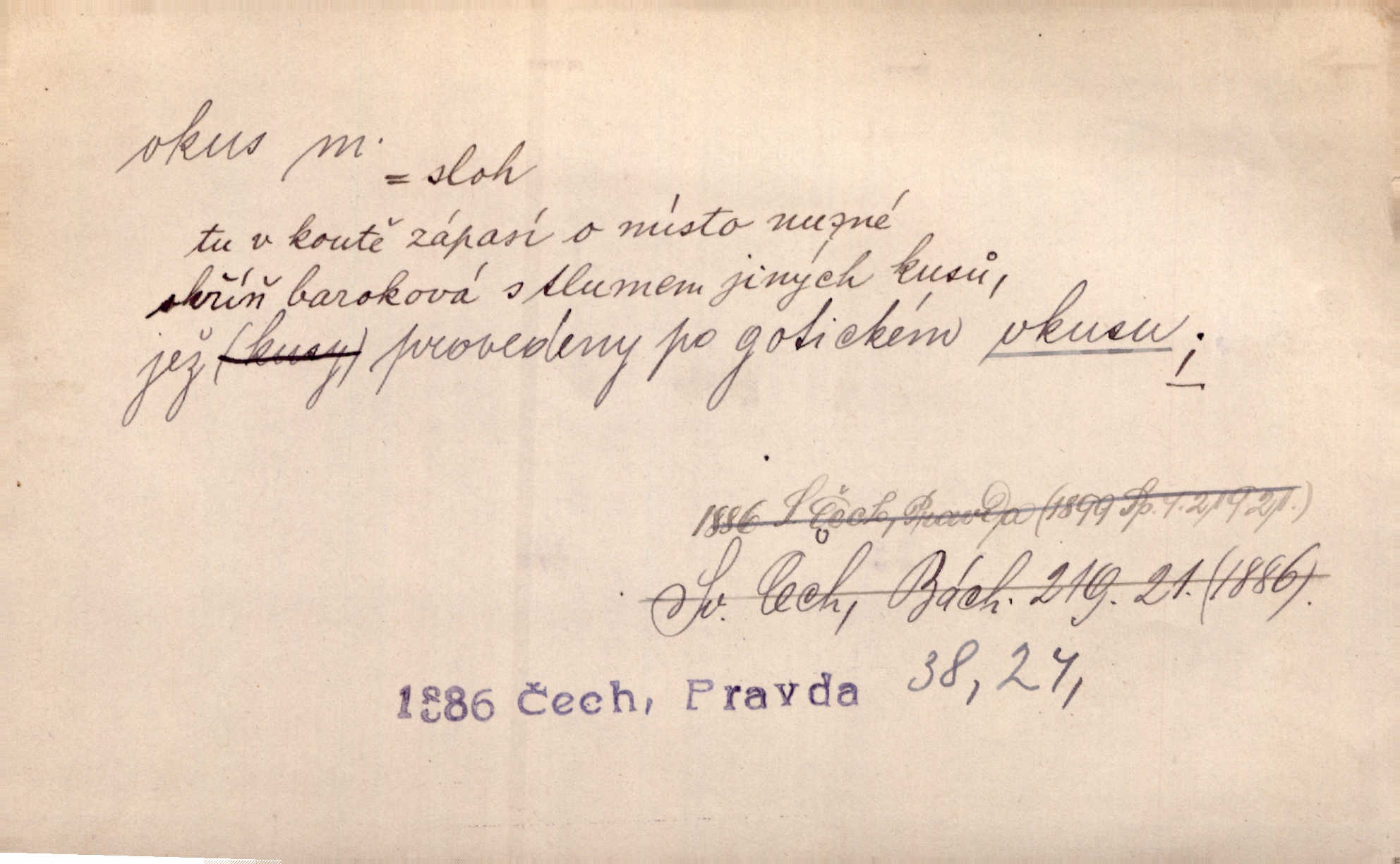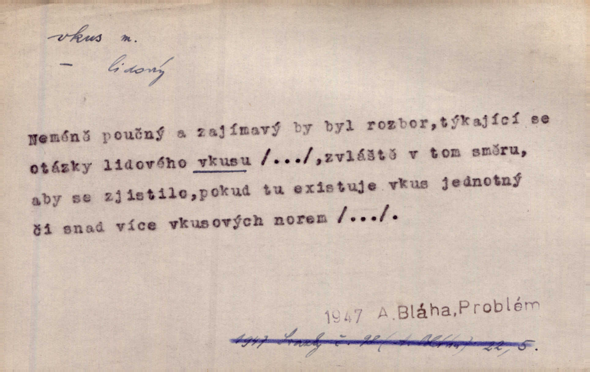 - vkus, -u m. osobní schopnost cítiti a rozeznávati krásu, posuzovati přednosti a chyby s hlediska estetického. Pravda, že nemají venkovští dělníci toho vybroušeného vkusu, té umělosti. Něm. [Malířův] dobrý vkus byl obecně znám. Herrm. Když se jednou vdám, vyberu si ženicha dle svého vkusu. Preis. [Byla hrda] na svůj vkus, jak se i za laciné peníze uměla šatiti. Herrm. To byly náhledy a slova dle Štěpánova vkusu vyhovující mu. Svět. Filos. schopnost estetického posuzování. D soubor dobových, místních a j. měřítek pro výběr po stránce estetické. [Dějiny umění] nejpádněji ukazují, že tak zv. vkus, podle něhož přisuzujeme věcem hodnotu krásna, jest velmi rozmanitý a proměnlivý. Z. Nej. [Stůl] a ostatní části nářadí byly již modernější, zrobeny dle toho vkusu, jaký panoval na konec republiky. Jir. [Za hájem objevil se] pravidelný obdélný zámek ve vkusu císařství. R. Svob. Proposice k čistě uměleckému a k tomu domácímu vkusu položili Mánes, Aleš, Chittusi, Myslbek, Jenewein, Schwaigr. V. Mrš. Dílo přírody nikdy nepodléhá dobovému vkusu. K. Konr. Nábytek vídeňského vkusu plnil jeho pokoje. Staš. Zast. Pavillony v italianském, čínském, francouzském i Bůh ví jakém ještě vkusu stavěné slohu, stylu. Něm. [Schody se rozbíhají] vroubeny jsouce promalovaným kamenným zábradlím v barokovém vkusu. Čech. [Vazba] jest přísně provedena buďto v byzantinském, maurském nebo gothickém, italském nebo francouzském vkusu. Ner. Filos., est. soubor ustálených hledisek, na základě nichž něco posuzujeme, obyč. po stránce estetické, vládnoucí kánon estetických norem.