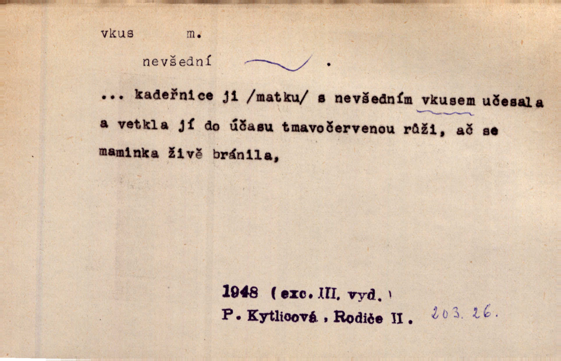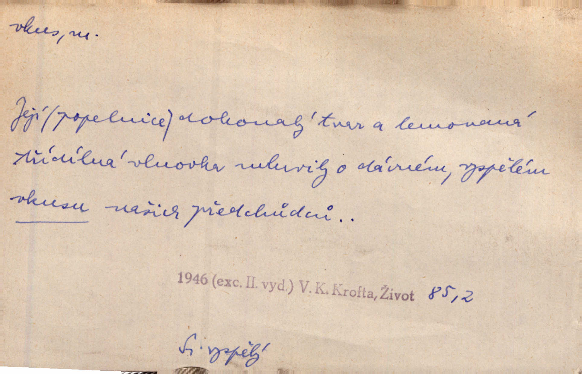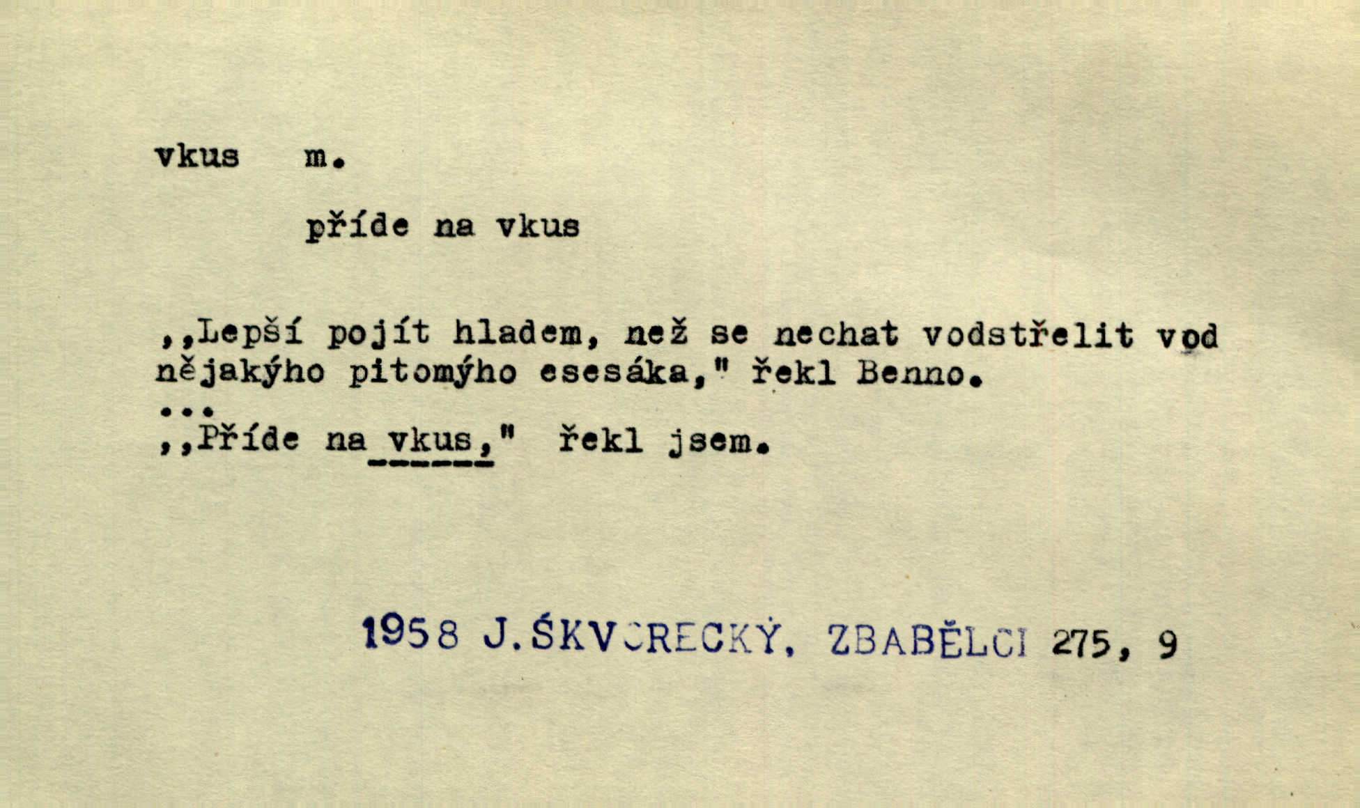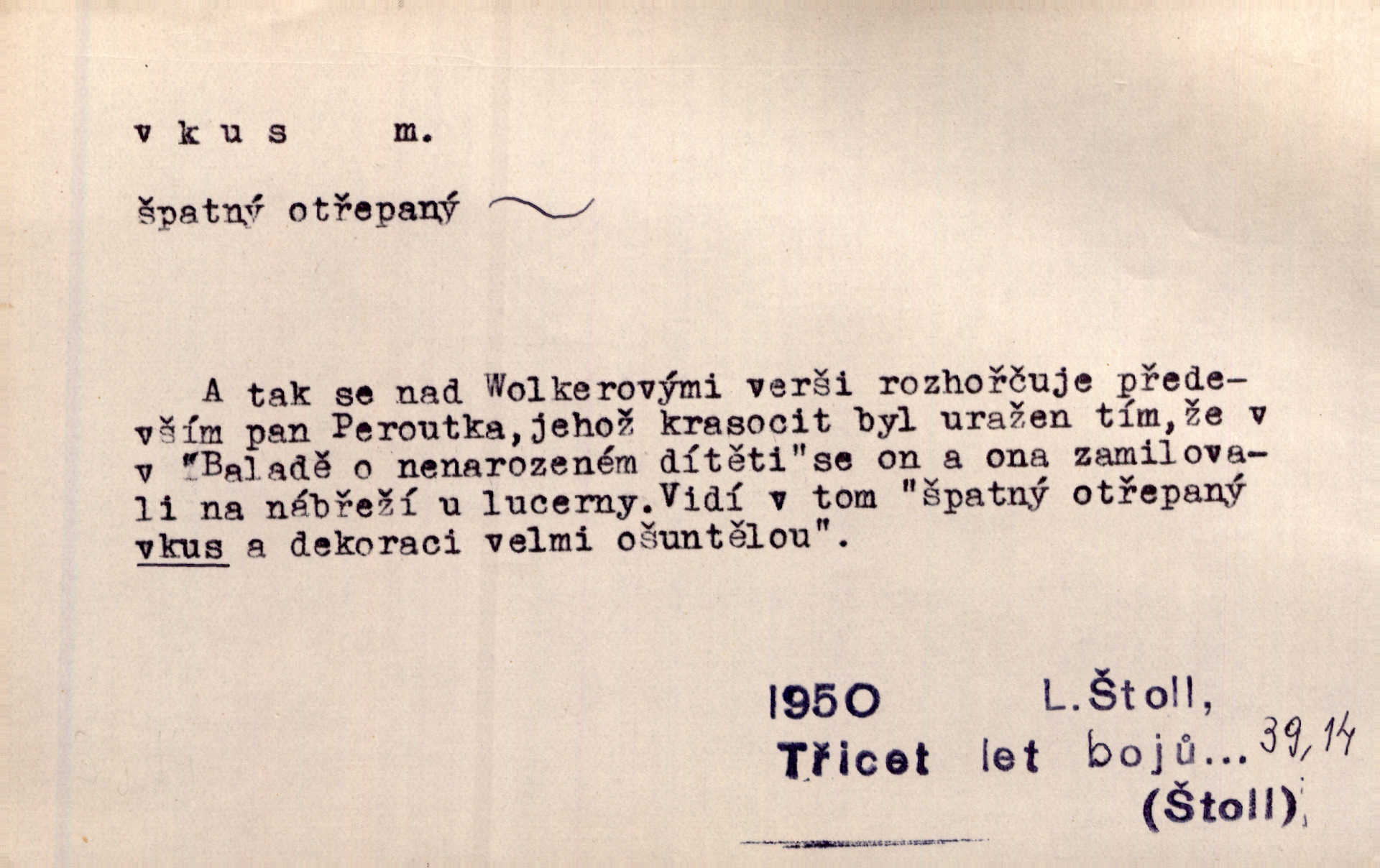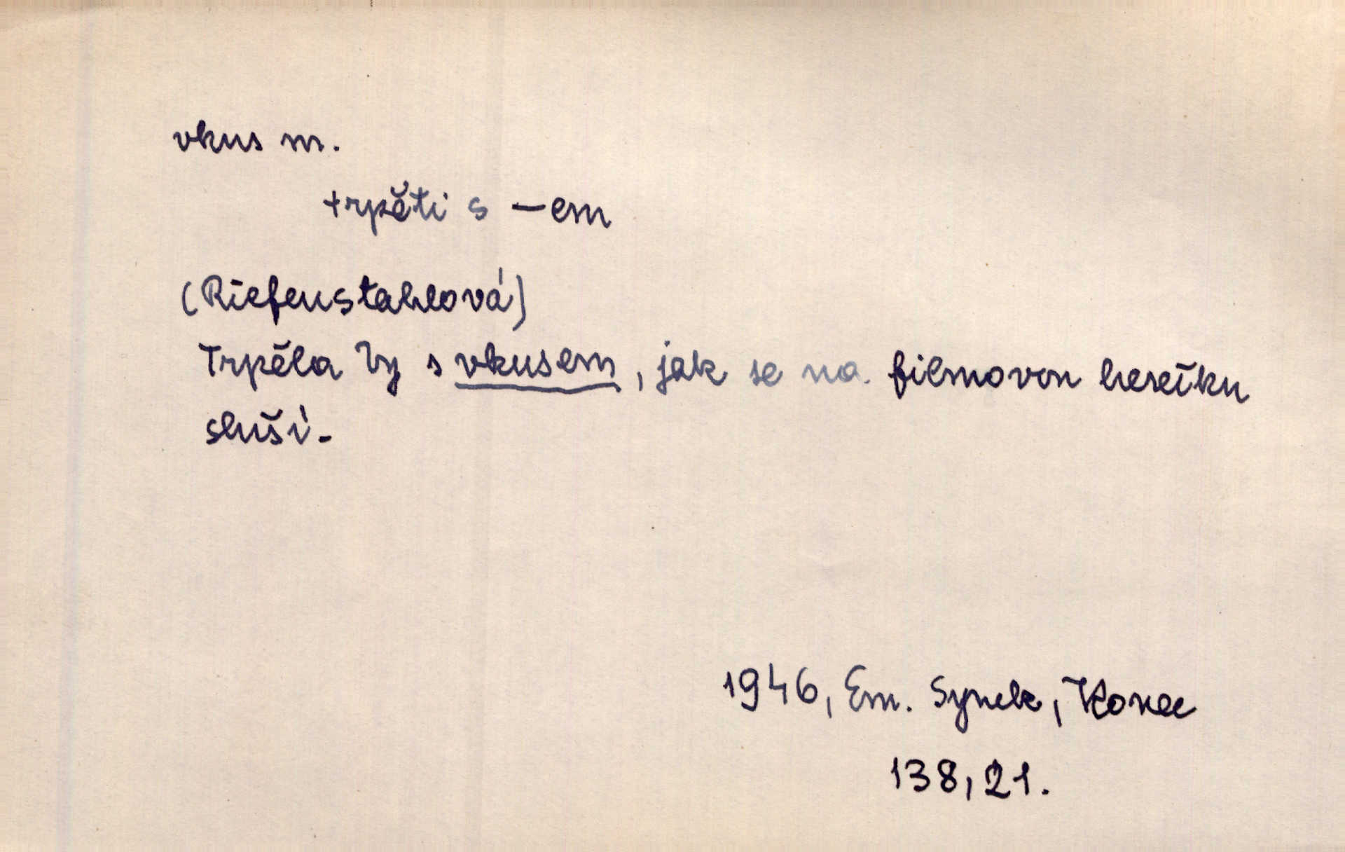 - vkus, -u m. osobní schopnost cítiti a rozeznávati krásu, posuzovati přednosti a chyby s hlediska estetického. Pravda, že nemají venkovští dělníci toho vybroušeného vkusu, té umělosti. Něm. [Malířův] dobrý vkus byl obecně znám. Herrm. Když se jednou vdám, vyberu si ženicha dle svého vkusu. Preis. [Byla hrda] na svůj vkus, jak se i za laciné peníze uměla šatiti. Herrm. To byly náhledy a slova dle Štěpánova vkusu vyhovující mu. Svět. Filos. schopnost estetického posuzování. D soubor dobových, místních a j. měřítek pro výběr po stránce estetické. [Dějiny umění] nejpádněji ukazují, že tak zv. vkus, podle něhož přisuzujeme věcem hodnotu krásna, jest velmi rozmanitý a proměnlivý. Z. Nej. [Stůl] a ostatní části nářadí byly již modernější, zrobeny dle toho vkusu, jaký panoval na konec republiky. Jir. [Za hájem objevil se] pravidelný obdélný zámek ve vkusu císařství. R. Svob. Proposice k čistě uměleckému a k tomu domácímu vkusu položili Mánes, Aleš, Chittusi, Myslbek, Jenewein, Schwaigr. V. Mrš. Dílo přírody nikdy nepodléhá dobovému vkusu. K. Konr. Nábytek vídeňského vkusu plnil jeho pokoje. Staš. Zast. Pavillony v italianském, čínském, francouzském i Bůh ví jakém ještě vkusu stavěné slohu, stylu. Něm. [Schody se rozbíhají] vroubeny jsouce promalovaným kamenným zábradlím v barokovém vkusu. Čech. [Vazba] jest přísně provedena buďto v byzantinském, maurském nebo gothickém, italském nebo francouzském vkusu. Ner. Filos., est. soubor ustálených hledisek, na základě nichž něco posuzujeme, obyč. po stránce estetické, vládnoucí kánon estetických norem.