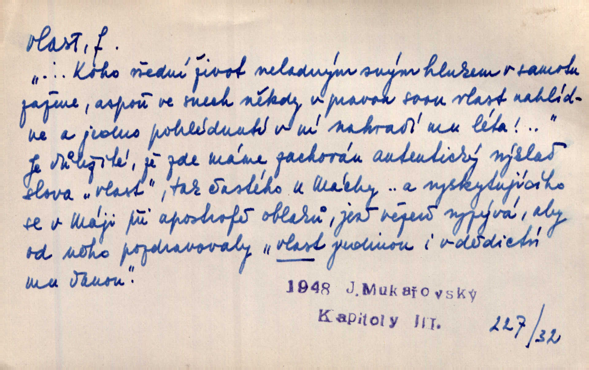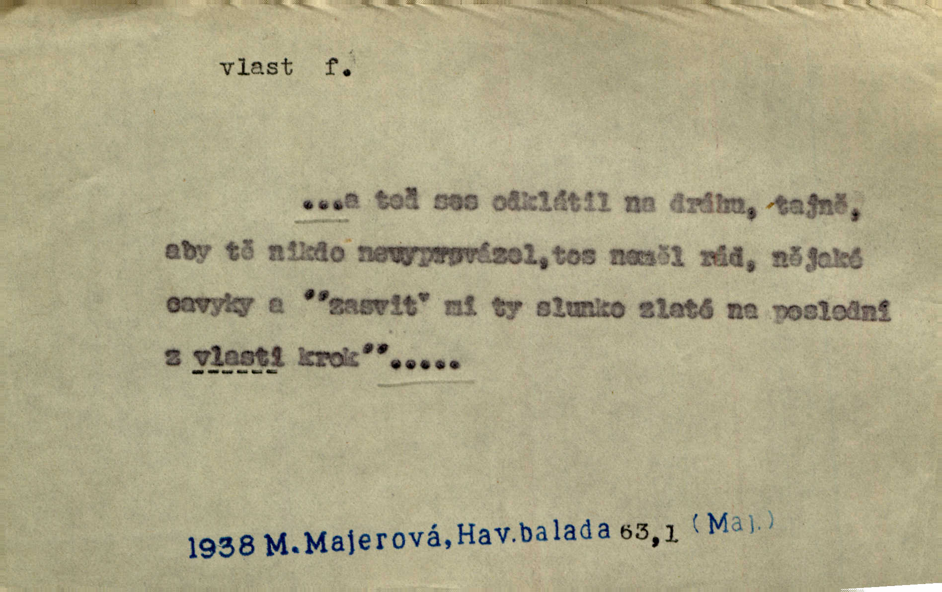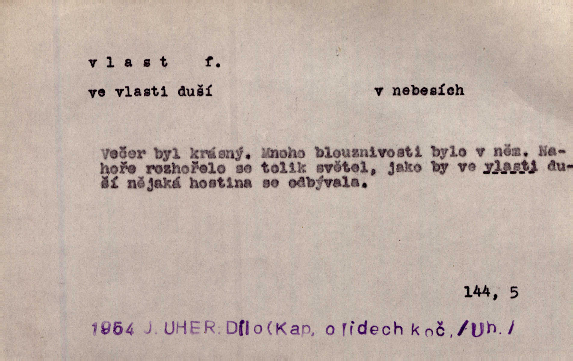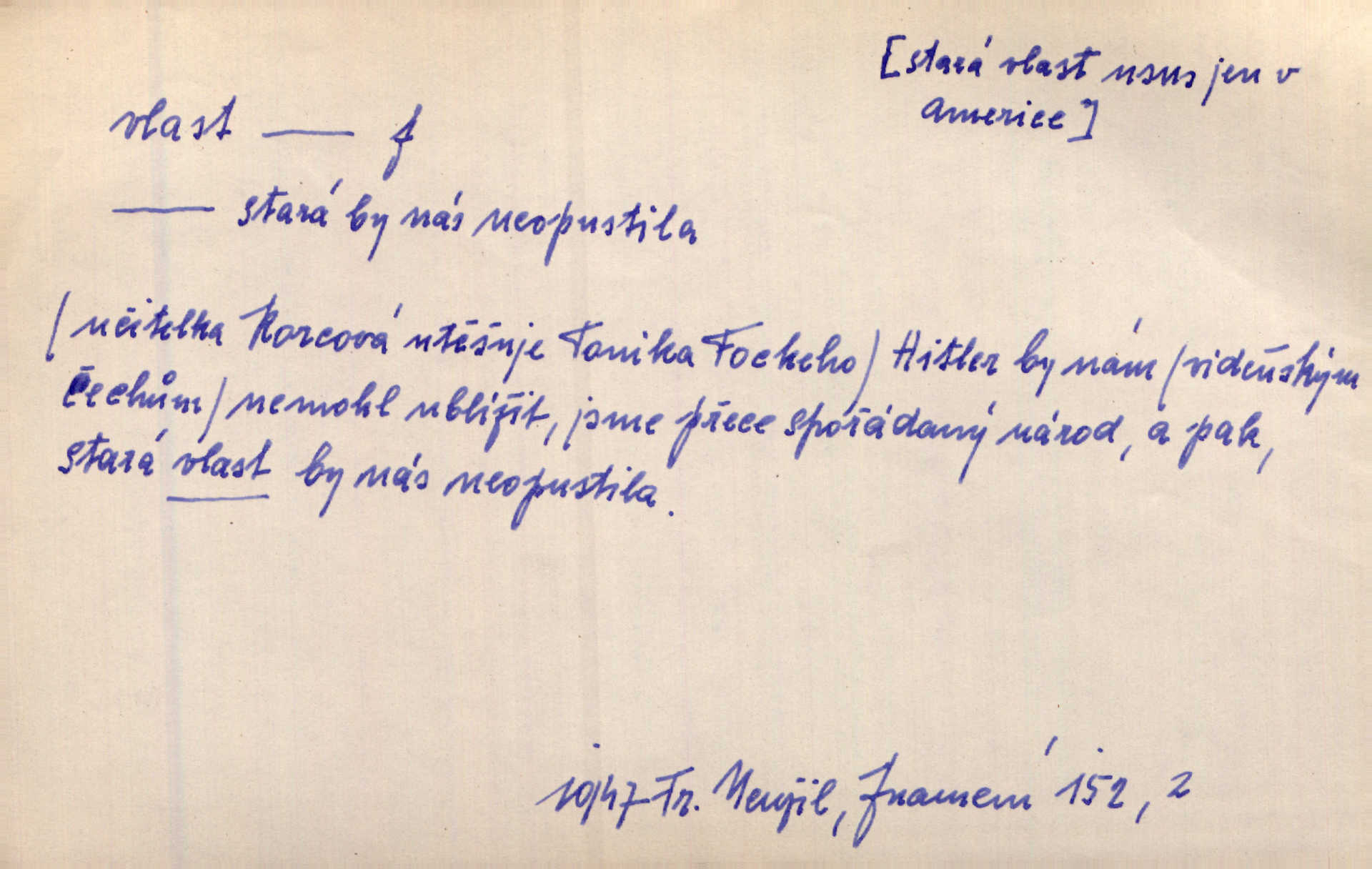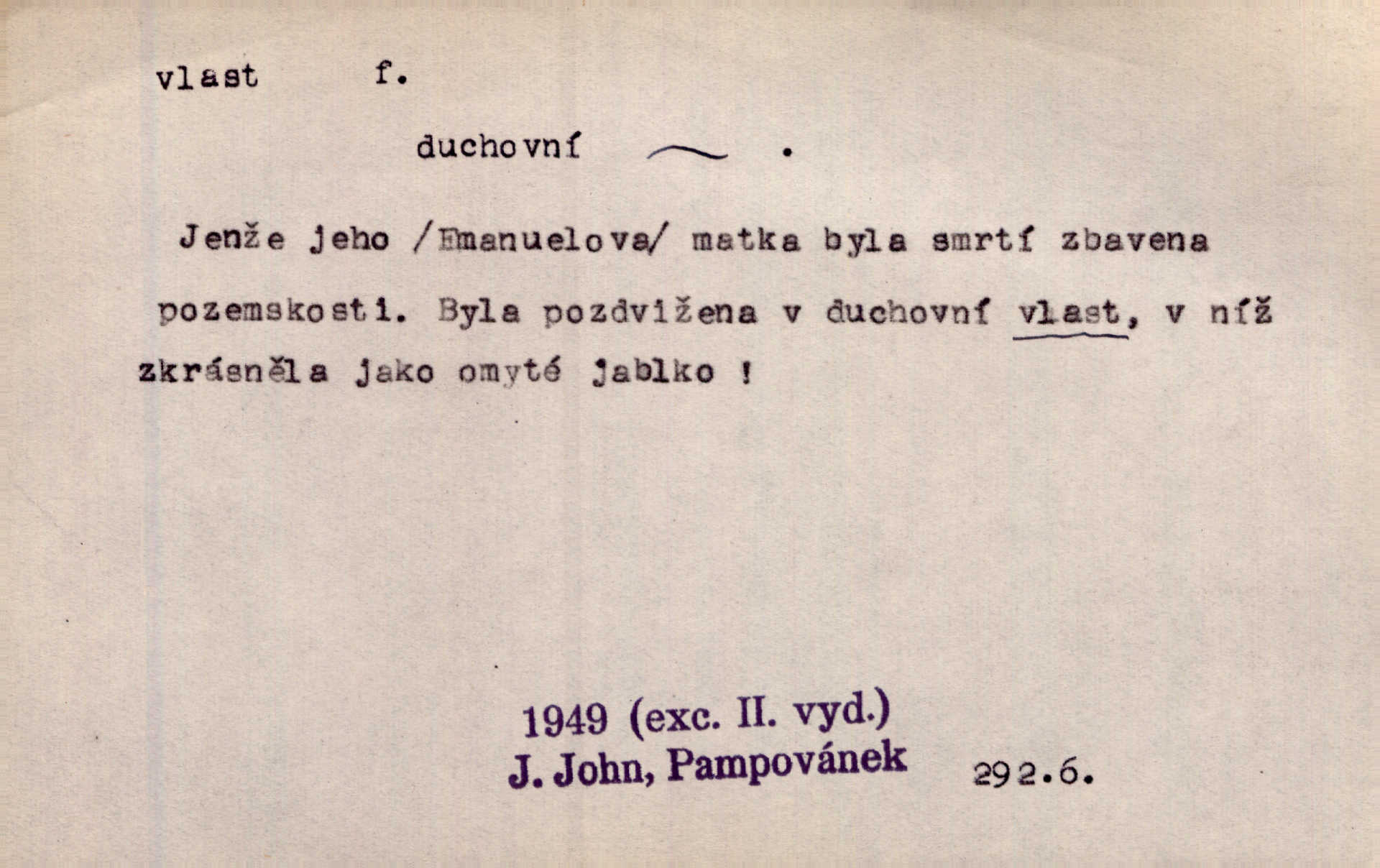 - vlast, -i f. rodná země, otčina. Vlasti své je Čech vřele oddán. Jir. Kdo to byl, kdo tehdy na prvním místě zvedl svůj hlas a volal k obraně vlasti. Z. Nej. Jak by se mohla [mládež] dívat na budování socialistické vlasti s rukama založenýma. Knih. úder. [Drahomíra ke sboru kněží:] Vy jediní jste zbyli z průvodu, jenž vyšel se mnou z drahé vlasti mé. Vrch. Na širší naši vlast, na Rakousko, připomíná velký nadpis „vyslanectví rakouské“. Ner. Po slavném panování krále Karla, Otce vlasti. Ehrenb. Paže tuž, vlasti služ. Kam. Tatík mne prosil, abych se s nimi vrátil do staré vlasti. Karník. Kollára si netroufám jmenovati, — totě básník z doby vlasti — slasti z doby, kdy se vlastenčilo. Kos. D místo narození n. pobytu, domov. Když i někdy Habrůvce pohrozil, že ji opustí a půjde sobě hledat jinou vlast — nikdo mu nevěřil. A. Mrš. „Z Čech?“ „Přímo z vlasti Václavů.“ Čech. Mnou [branou] vchází se do zatracenců vlasti do pekla. Vrch. Tu [ve skále] měly vlast svou sovy rozličné. Klác. D Poněk. zast. krajina, země. O hradě tom [Karlštejně] šly po všech vlastech pověsti až báječné. Třeb. Rozloučiv se odešel arcibiskup z vlasti moravské. Vanč. Sta a sta telegramů a přípisů [k oslavám Palackého] došlo netoliko z vlastí českých, ale i ze všech ostatních zemí slovanských. Kal. Nestydatěji, surověji se tehdy roztáhl nenáviděný cizák po českých vlastech. Gottw. I přivede na tě Pán lidi z daleké vlasti. Jir. Prochodil huslař celý svět, vlasti i daleké země domácí kraje. Heyd. [Rezinka] četla hlasem tlumeným: „Rozpomeň se, matko dobrotivá, v nebeské vlasti na dítky své v tomto slzavém údolí.“ v nebi. Jir. Těšil se, až se lepší jeho částka povznese do lepší vlasti, kde kraluje světlo nejjasnější. Svět. Duch [starcův] po vlasti nad hvězdami práhne. J. z Hv. D místo, odkud něco pochází, kde se něco hromadně vyskytuje, vyrábí a pod. Chtěl jsem poznat vlast vítězného proletariátu na vlastní oči. R. právo. Švýcary jsou vlastí výborných sýrů. Svob. nov. Roztoužil se po dalekých krajinách, po vlastech hraček javanských. R. Svob. V naší církvi vyšlo pronásledování z vlasti inkvisice, ze Španěl. Ner.