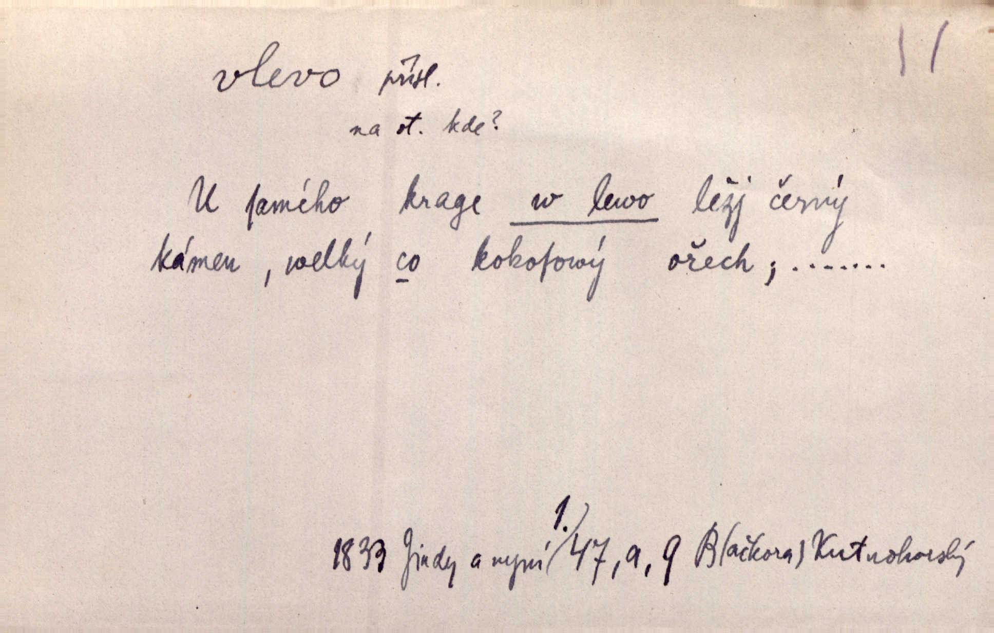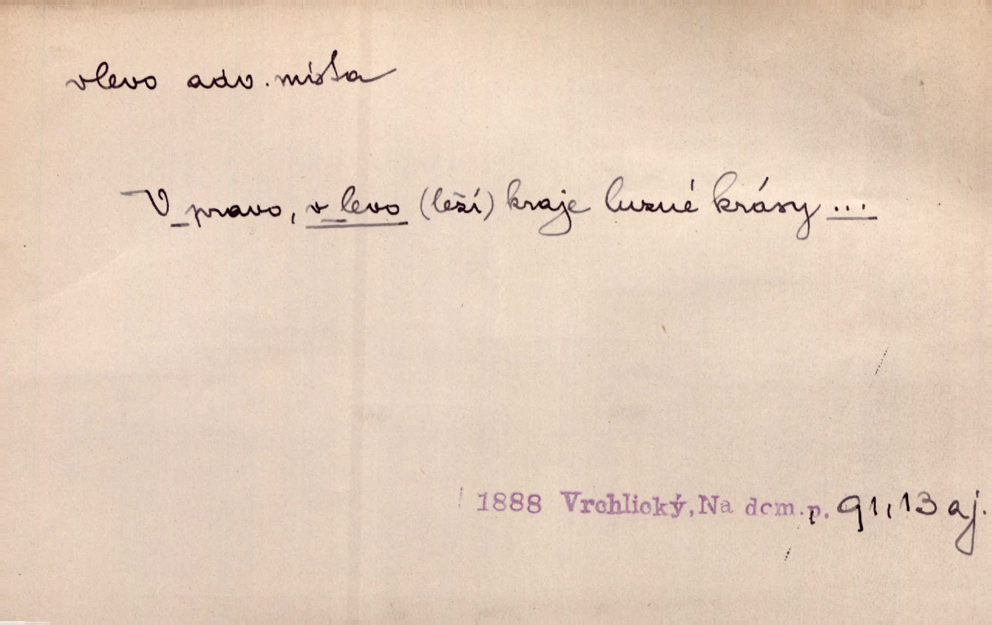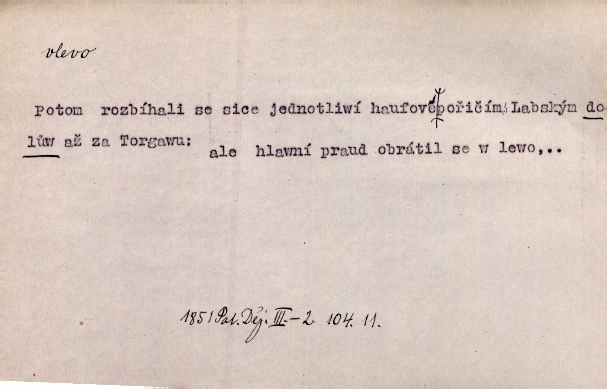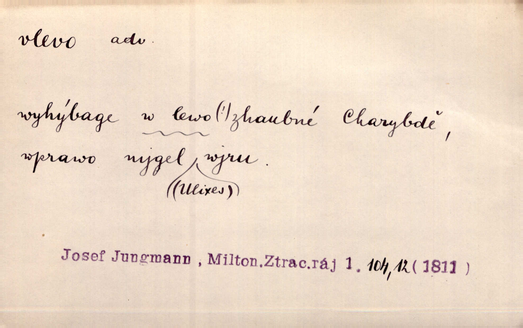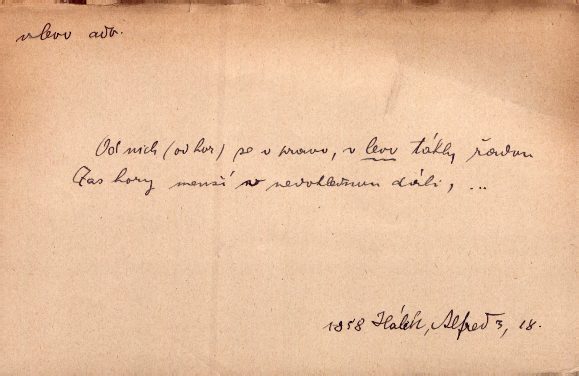 - vlevo adv. ve směru levé ruky, na levé straně, na levou stranu. Zahněme vlevo! John. Nechali [jsme] vlevo prostorný zámek se dvěma křídly. John. V pravo, v levo od silnice [stály] statky a chalupy. Jir. Chvátali hřbitovní stezkou v levo do města. Rais. I jde v pravo ten a onen v levo. Kal. Tenkráte silně v levo střelil jsi zmýlil ses. Šub. Ondrejkovy zraky těkaly v pravo v levo sem tam. Jir. Zř. Vlevo skály u prostřed olšin a bujných luk je velký dvůr. Svět. Voj. vlevo v bok, vlevo hleď (povel). D směrem k pokroku, k socialismu. Vývoj směřuje vlevo. Lid. nov.