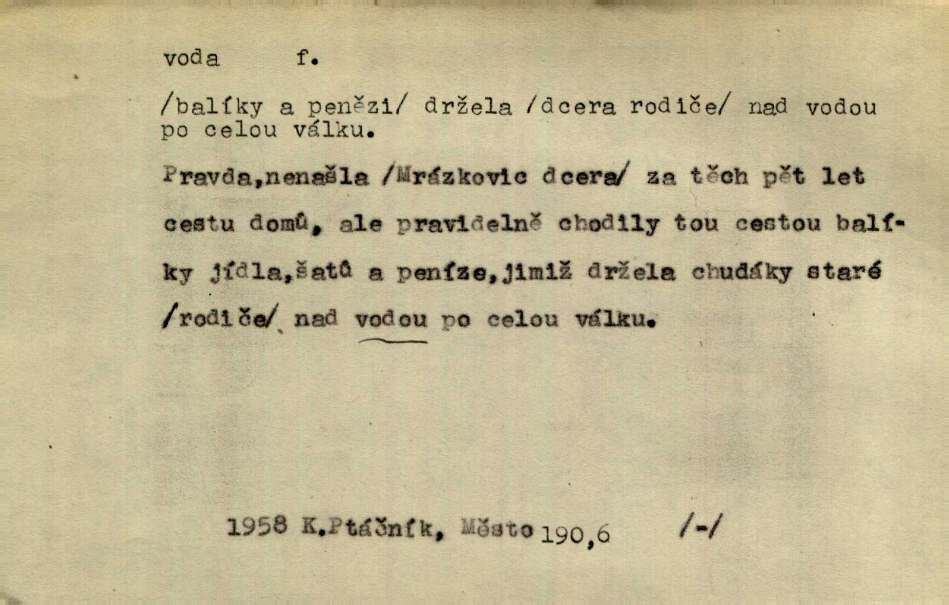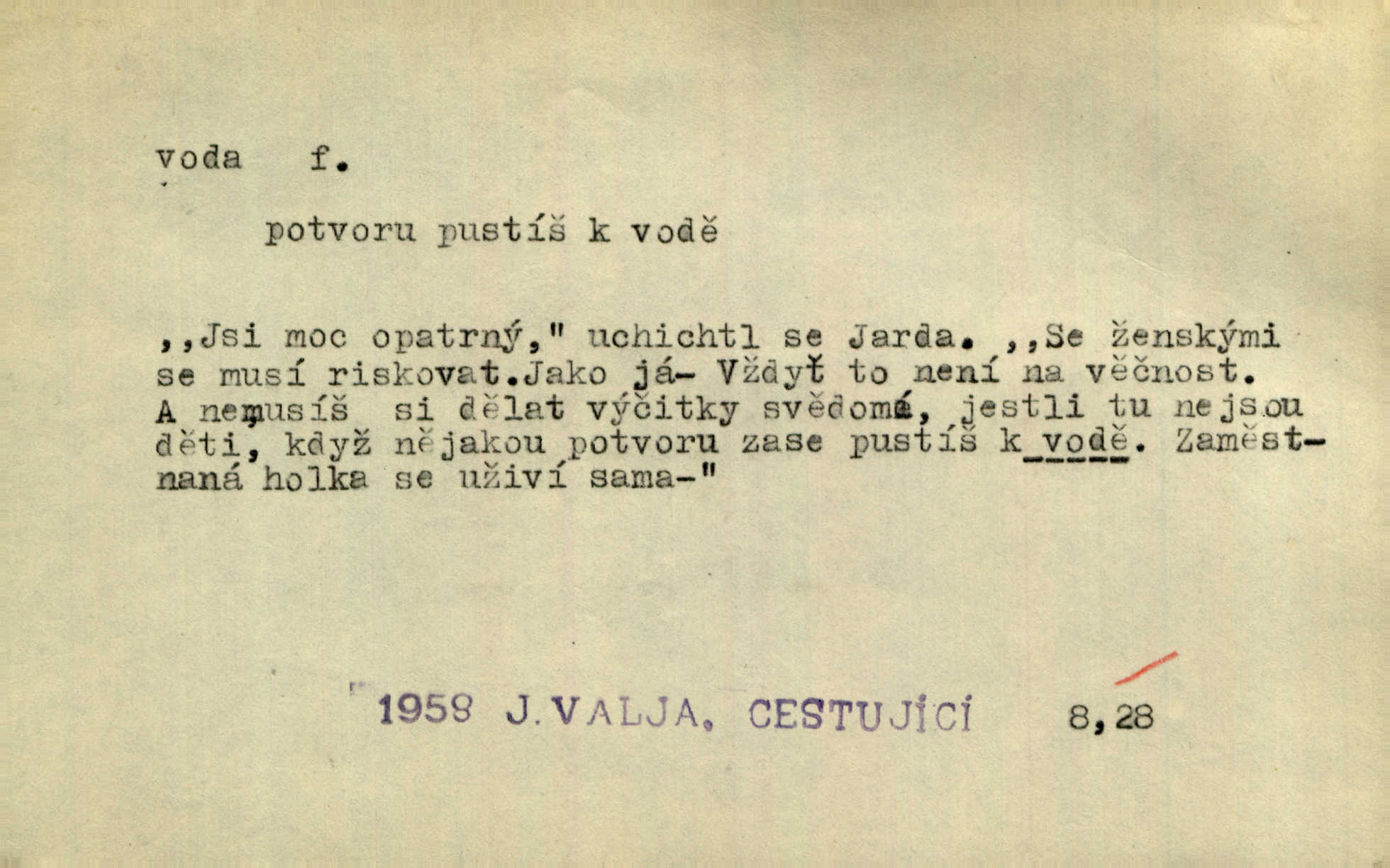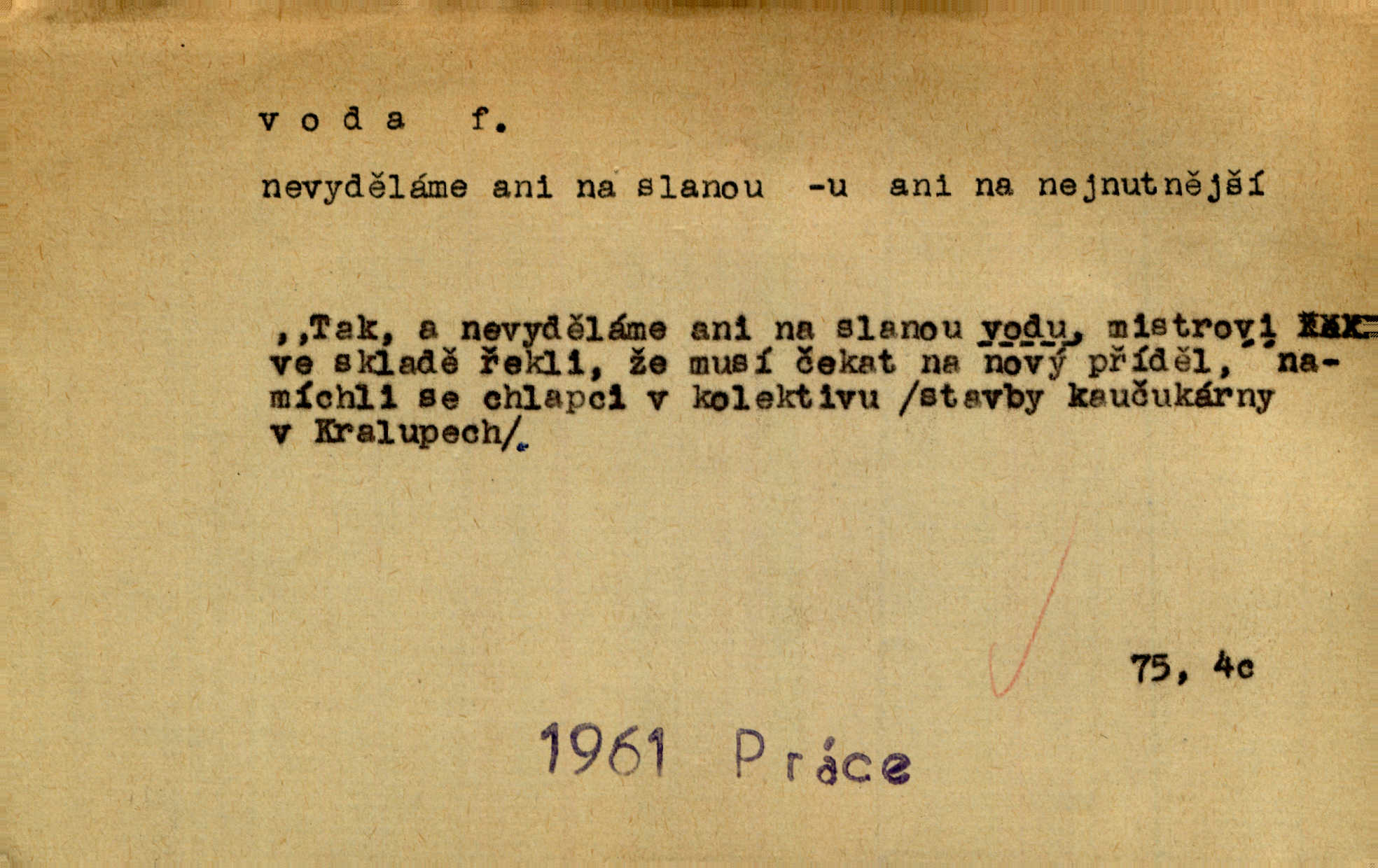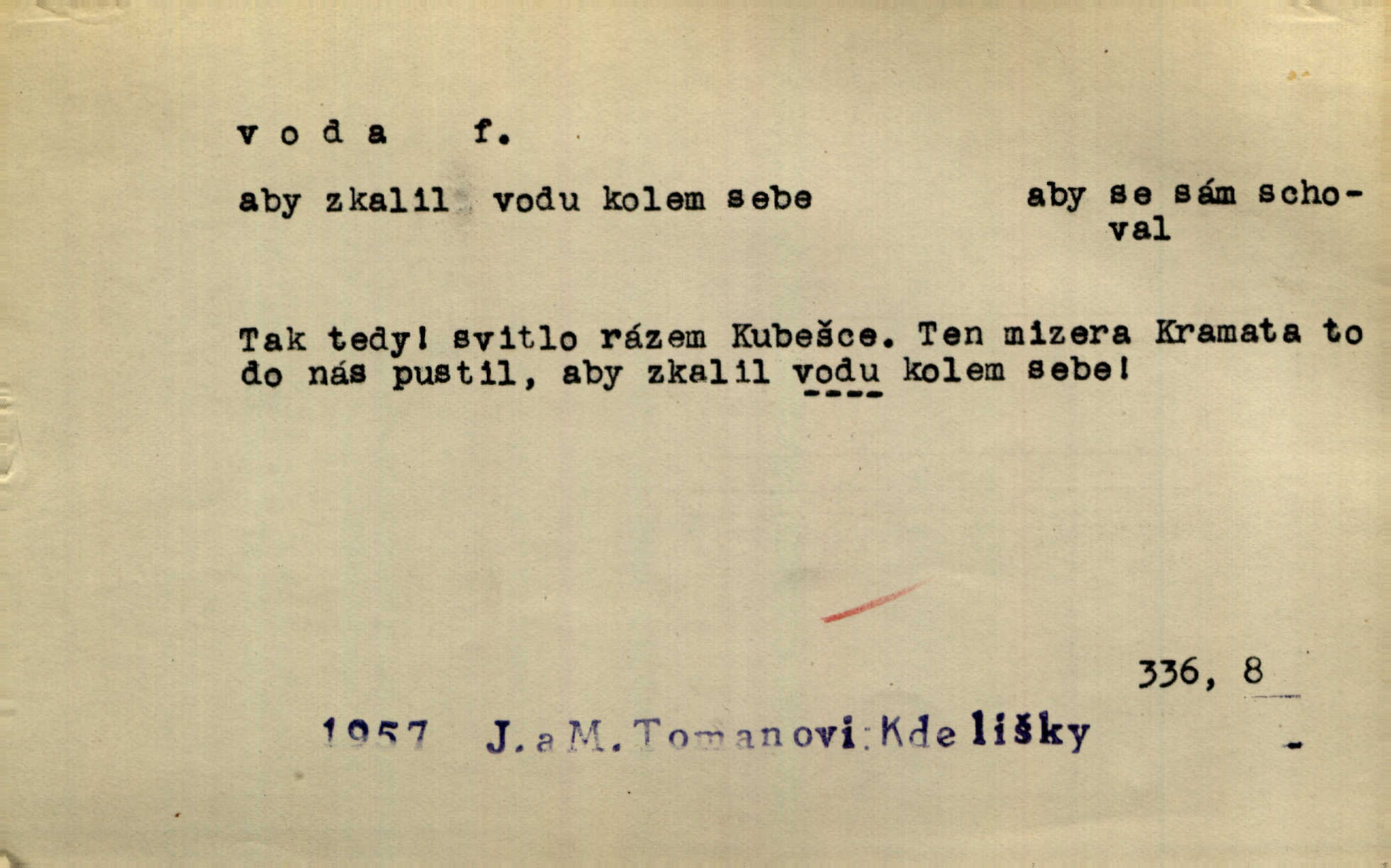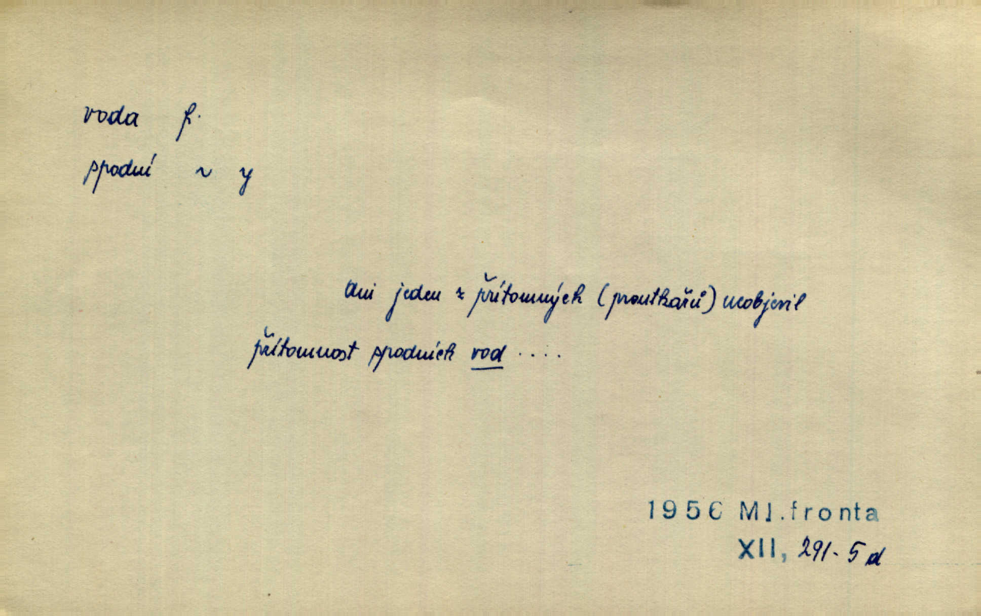 - voda, -y f. průhledná kapalina, vyskytující se jako déšť (sníh, led) n. pramenící ze země, uložená v různých přírodních nádržích a sloužící za základní nápoj. Vyběhnuvši na dvůr, navážila vody. Rais. Voda se už vaří a můžete hned po čaji usnout. Ner. Po mase přinesla sobě sklenici vody. Šim. Přišel čas, kdy došla [na lodi] sladká voda pitná. Dyk. [Řeka] je nějak zachmouřená. Spadla někde voda dešť. V. Mrš. A v dáli Eufrat své sivé vody valí bez hluku jak řeka smrti vlny. Mach. Ráda kočka ryby jí, ale do vody se jí nechce. Přísl. Tak dlouho se chodí s hrnečkem pro vodu, až se ucho utrhne všecko má své následky. Přísl. Není ostýchavý a nesmělý: ryba přišla do vody je ve svém živlu. Hol. Krev není voda. Přísl. Řeč se mluví a voda teče něco nemá závažnosti. Přísl. Inu, voda se pije a řeč se mluví. Bozd. Je [syn] jako voda v koši nestálý. Poláč. Jen nesmíš zapomjet, že von je stálej jako voda v saku. Lid. nov. U mladého jsou peníze jako voda v koši hned je utratí. Jir. Neřekl nic a vytratil se jako voda z koše. Jir. Plynou peníze jako voda skrz prsty snadno se utratí. Ner. Celý den jsem jako na vodě, z pláče nevycházím. Rais. Karla zůstala, jako by ji polil studenou vodou zaražena. Štol. Všichni tu stáli, jako by je polil horkou vodou. Hál. Byly na sebe jak oheň a voda nesnesly se. Herb. Po čtyřnedělním pátrání vyšla skutečně pravda na světlo jako olej na vodu zřetelně, jasně. Herb. Bylo tam řečí jako vody mnoho. Vrba. I lidé nadělají řečí jako vody. Rais. Je tu tak potřebný jako voda velmi. Svět. Jsme my ženy sobě podobny jako voda k dešti. Šmil. Stála průhledná jako voda úplně. Hol. Já byl střízliv jako džbánek vody. Šmil. Žoli jako by se byl do vody propadl zmizel beze stopy. Čech. Jako by se nad ním voda zavřela. Šim. Byl stále jako na vodě nejistý, neklidný. Rais. Mám dneska žaludek jako na vodě podrážděný. J. Tom. V dalších dnech se chodník pod botami poddával, chodci „šli jako na vodě“ nejistě. Techn. obz. Spala ještě jako na nepokojné vodě. Šmil. [Říkala o zubech,] že je už má jako na vodě viklavé. Šim. [Bříza] rostla jako z vody a brzo přerostla všecky smrčky bujně. Vrba. Byli dvojčata a rostli jako z vody. Herb. Měl jedinou dceru Gábinku, dívku jako z vody vyrostlou ztepilou. Šmil. Dni utíkaly jako voda rychle. Jir. Léta ubíhají jako vlny po vodě. Šmil. Spal jsem celou noc, jakoby mne do vody hodil tvrdě. Jir. Inu pan doktor je pevná hlava a hodí se do těch časů jako ryba do vody dobře. O. Červ. Ve dveřích, jak ji [rakev] vynášeli, se na ní zaleskly kapky svěcené vody posvěcené církevním obřadem. Til. Svěcení „tříkrálové vody“. Cin. A teď mu ani svěcená voda nepomůže nic, nikdo. Vrba. Uvidíš časem, že bude třeba, abys měla svěcenou vodu v žilách místo krve velkou trpělivost. Šmil. Neruda vznášel se tu vždycky [při humoru] nad vodami vyhnul se všednosti. Vrch. [Žurnalista] musí nové prameny pro svůj časopis hledat, neboť by jeho čtenářstvo mnoho vody nesneslo banalit. Ner. „Kočku,“ vykřikla paní Včeličková [hádajíc, co jí muž přinese]. „Samá voda,“ smál jsem se vesele jsi daleko od pravdy (cíle). Lid. nov. Menší děti měly oči na vodě plakaly. J. Šír. Tolik dokladů měl, že ho mohl utopit na lžíci vody velmi snadno. Vrba. Socialistu by na lžíci vody utopil. Zápot. Na koho si zasedla, byla by jej na lžíci vody utopila. Pitt. Kdo má cit v těle, ani vám vody nepodá nebude mít nejmenší úctu. Šmil. Tito koníčci by na příklad hanáckým „vody podat nesměli“ nevyrovnali se. Herb. Do konce června t. r. bude ústava z první vody projednána zhruba, v hlavních rysech. Svob. nov. Zašlete mi novellu svou třeba jen z první vody napsanou. Svět. Hrál jsem symfonii z jedné vody načisto z listu, bez nácviku. Smet. Domácí povinnosti vykonány z jedné vody na čisto najednou, bez okolků. Kun. [V úvodníku] bylo práno špinavé prádlo páně purkmistrovo z jedné vody na čisto činnost důkladně probírána. Vrba. Měli svatbu najednou, aby se to vypralo jednou vodou odbylo najednou. Kosm. Mnoho práce bude potřebí, než budeme moci říci, že jsme již opravdu z vody venku z nejhoršího. R. právo. Machno se zrovna do vody propadl zmizel beze stopy. Maj. Stalo se — nestalo, padlo do vody a bylo dobře zapomnělo se. Herrm. Potřebuješ mě vždycky, když ti teče voda do bot jsi v nesnázích. Branald. My začínáme vařit z vody žijeme skromně. Práce. No, kalí to nebylo, chudý lidi vařej z vody mají chudá jídla. Kubín. Bylo to ohromné plácnutí do vody nicotný čin, zbytečnost. K. Čap. Purkmistr mu prorokoval, že bude vodu řešetem nabírat, omluvil se a odešel dělat marnou práci. Baar. Blázen, kdo vodu řešetem měří. Čech. Tedy nemá nazbyt peněz, ale chce honit vodu dělat dojem. K. Čap. Jistě by neopomněli poznamenat, že bych v nich [rukavičkách] mohl i „honit vodu“ dělati šviháka. Svob. nov. Bude vám na prospěch, když vám v „Pražském sportu“ udělám trochu vody reklamu. Böhn. Uhlídá pan direktor, jakou zvednu vodu způsobím rozruch. Štech. A co ti lidé mají? Vždyť nikomu vody nekalím neubližuji. Herb. Po lidských žlabech kalná voda teče lidé rádi pomlouvají. Přísl. Byla to sebranka, lidé, kteří chtějí lovit v kalných vodách těžiti ze situace. Dyk. Postihla jeho rozpaky, a to byla voda na její mlýn velmi se jí to hodilo. Herrm. Nesprávná politika hnala přímo vodu na mlýn hlinkovských zrádců prospívala jim. R. právo. Nač hnáti vodu cizí na kola? Vrch. Noviny varovaly ministry naše, že nadhánějí vodu jen na mlýn pruský. Herb. Udržoval s napětím pozornosti hovor nad vodou plynulý rozhovor. Schein. Jen ponižující vydávání h