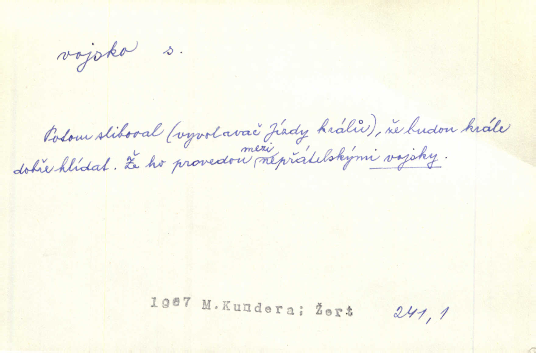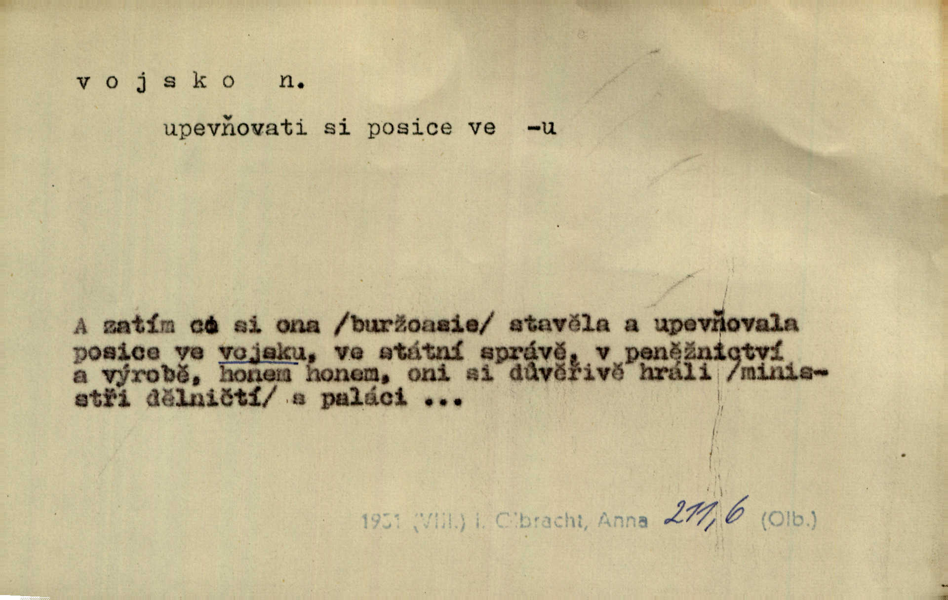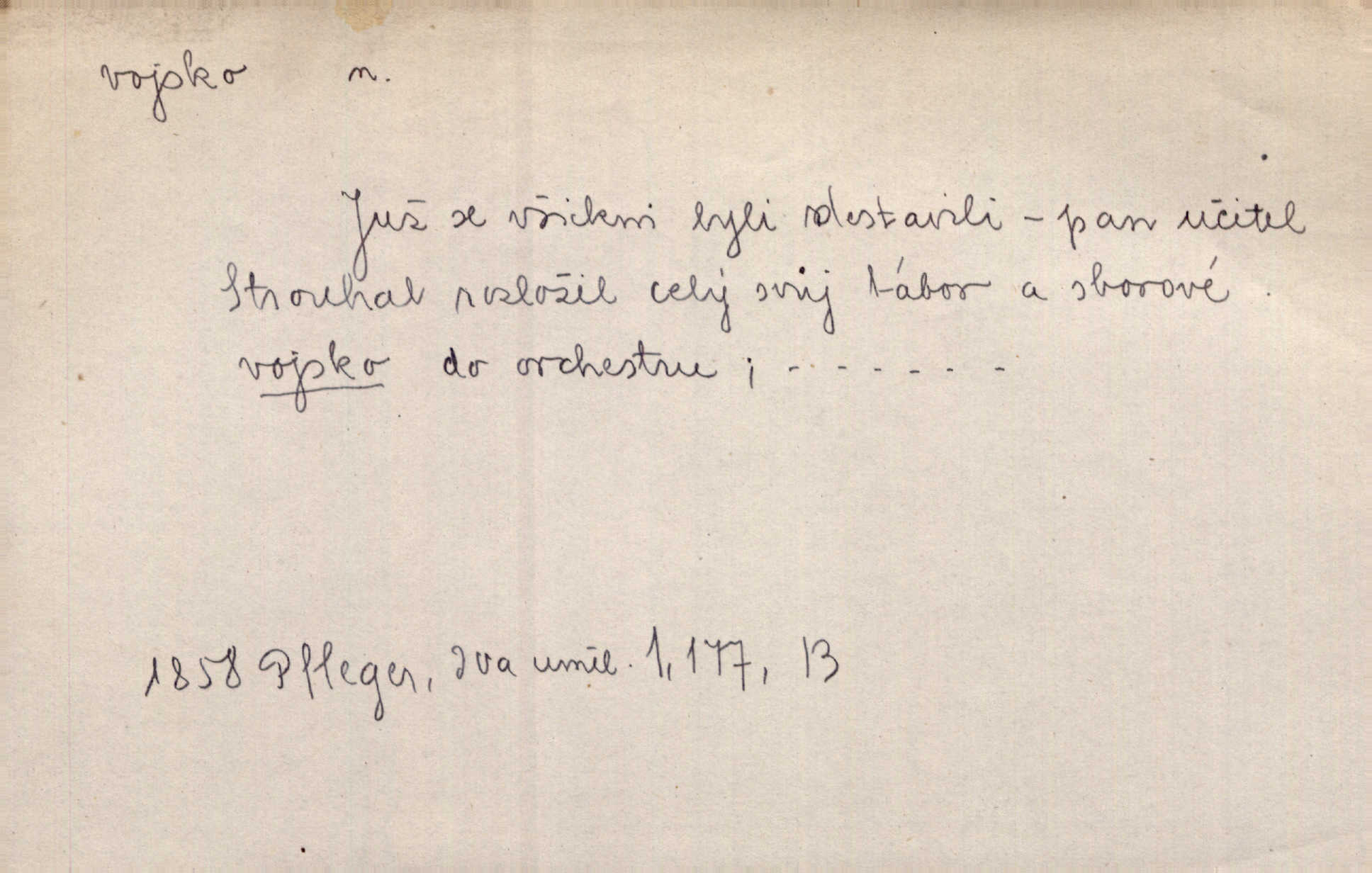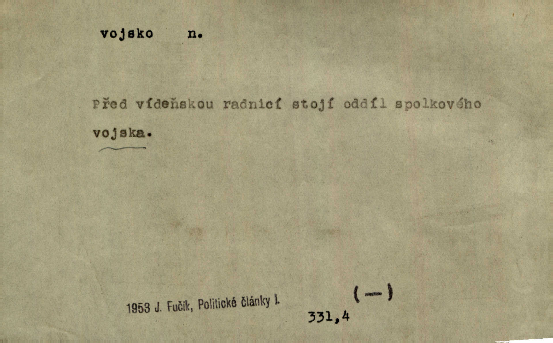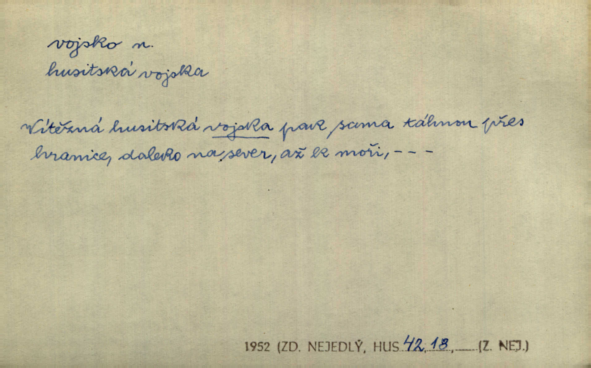 - vojsko, -a n. (6. sg. ve vojsku, zast. ve vojště; zast. vojska, -y f.) souhrn vojenských sil státu; armáda; vojáci. Můj [babiččin] nebožtík Jiří sloužil v pruském vojsku. Něm. Bylo mi asi deset let, když mého bratra k vojsku odvedli. Zey. Císař začal sbírati vojsko. Herb. Jedinou čekárnu naplnil transport vojska. K. Čap. Panenko Marja, ešče jde jiný vojsko! Jir. Ve vojště se roztahuje nahnilá půle Francie. Bozd. Tam se obraťte, tady máme vojsku na starosti a vojnu. Jir. Musilo přijít vojsko a výtržníky rozehnati. Svět. Delegace lidových vojsk dala [na Koreji] při jednáních jasně najevo [své úmysly]. Ml. fronta. Co se v něm [sedlákovi] dálo, táhlo jako nepřátelské vojsko. Hál. Přen. Na jasném nebi se rozsvěcuje vojsko bledých hvězd. V. Fiala. Voj. branná moc n. její část. Jednotlivý druh vojska (op. služeb) (pěchota, dělostřelectvo, letectvo, vojsko ženijní, spojovací, chemické, výsadkové, protiletadlové, tankové a mechanisované). Vojska n. pl. všeobecné souhrnné označení pro vojenské jednotky n. útvary. Pozemní vojska, uskupení vojsk, řízení vojsk.