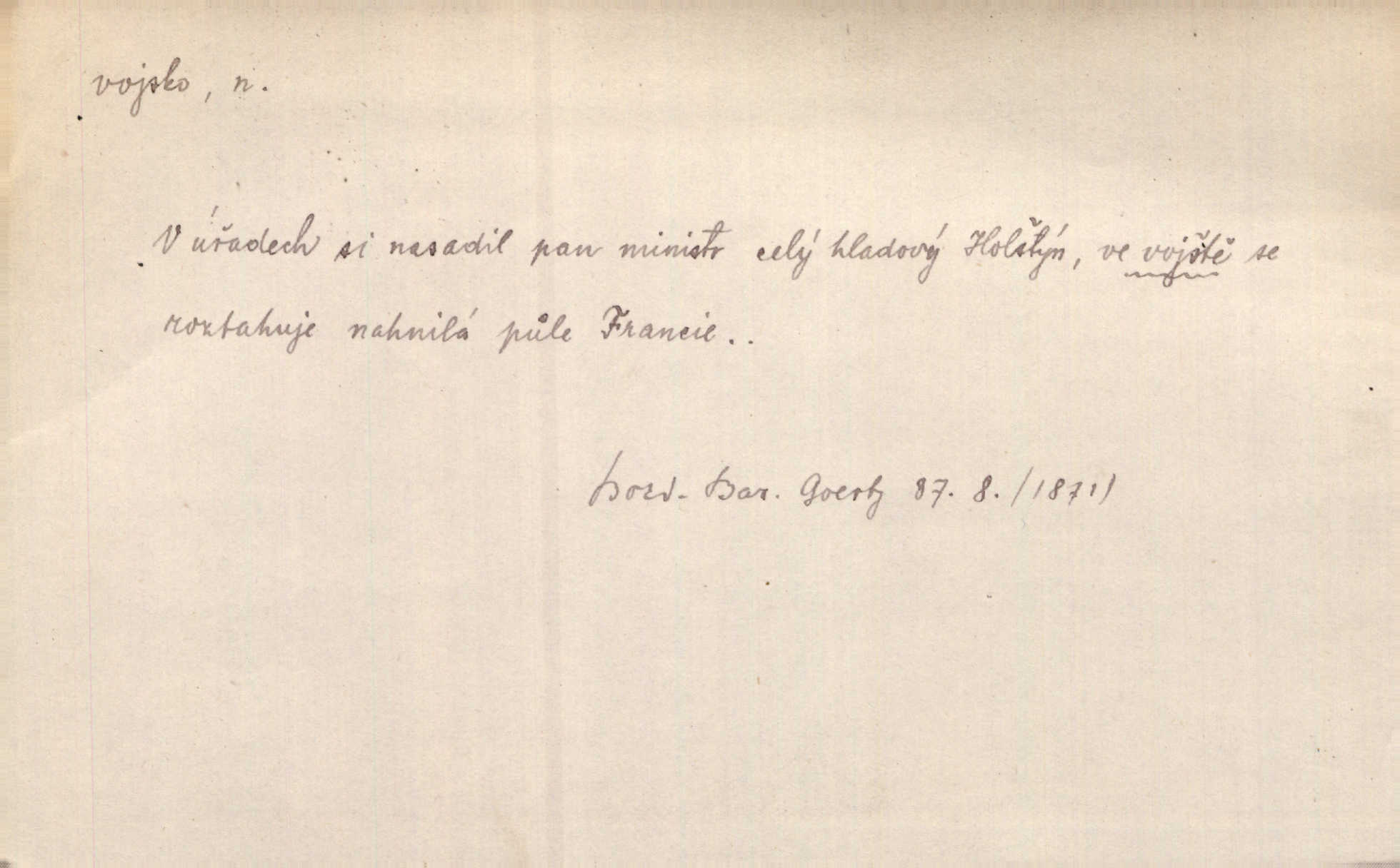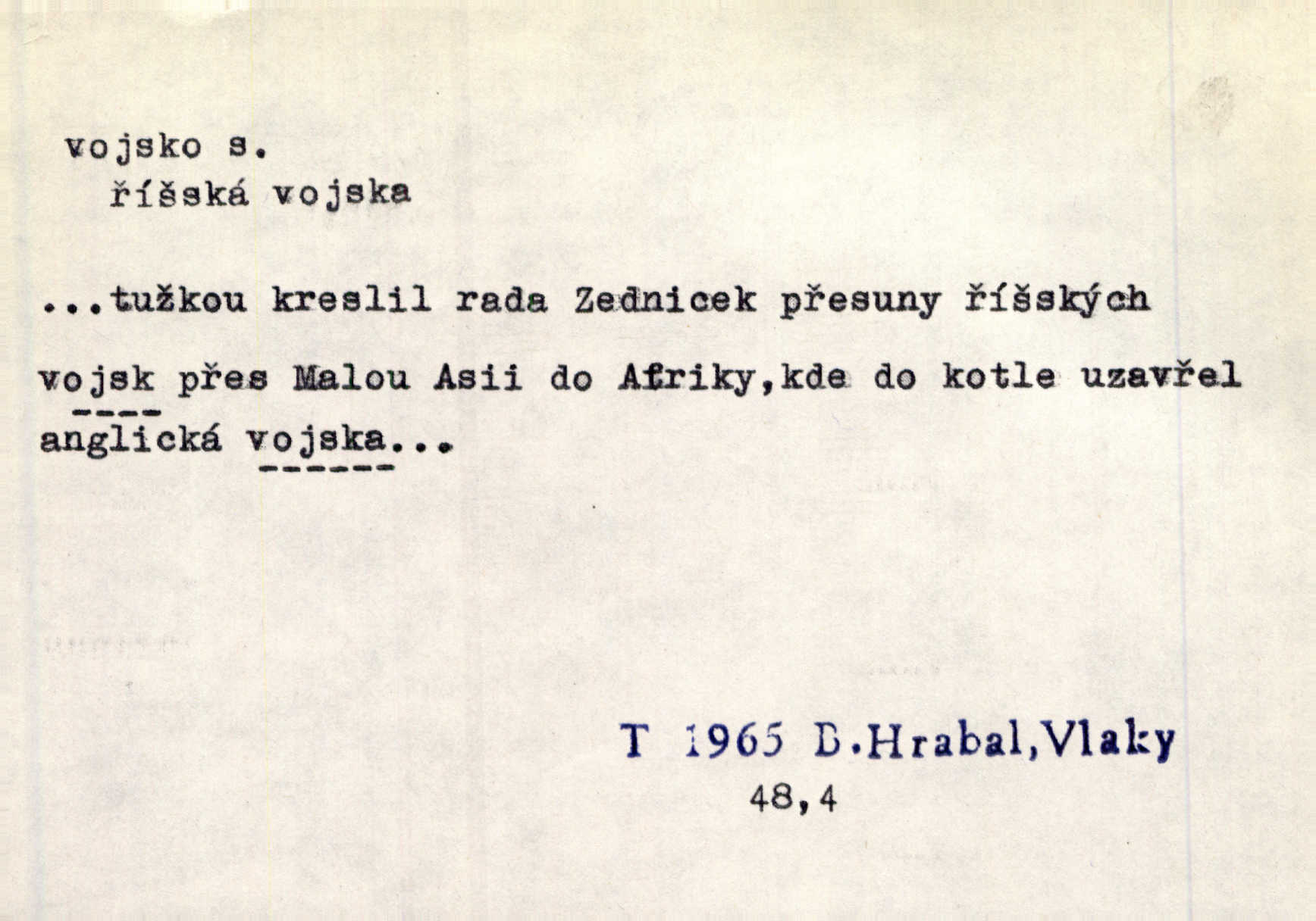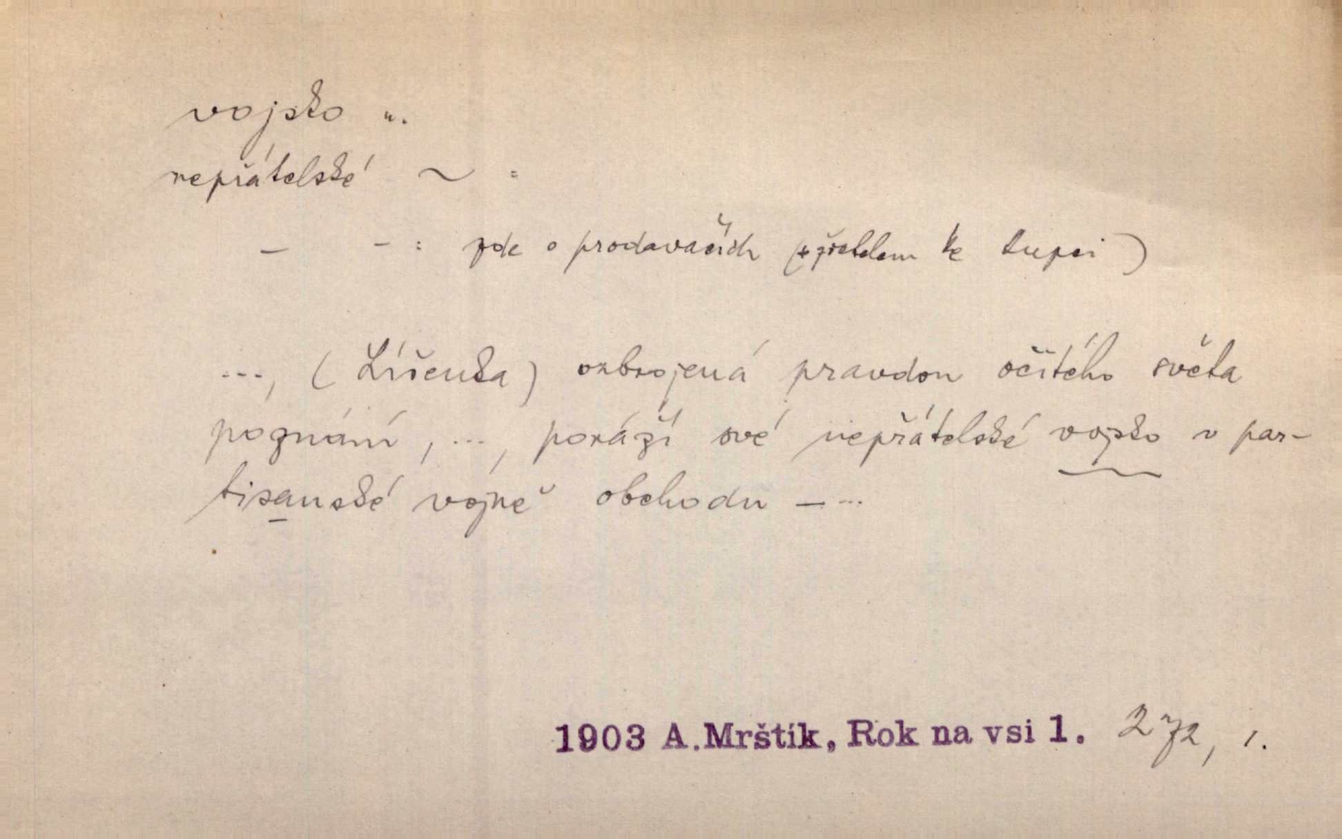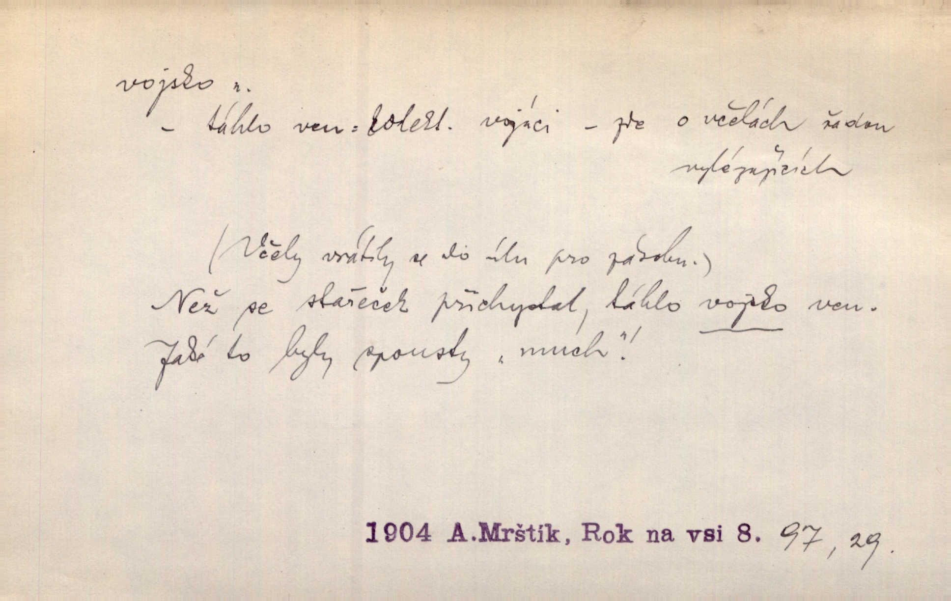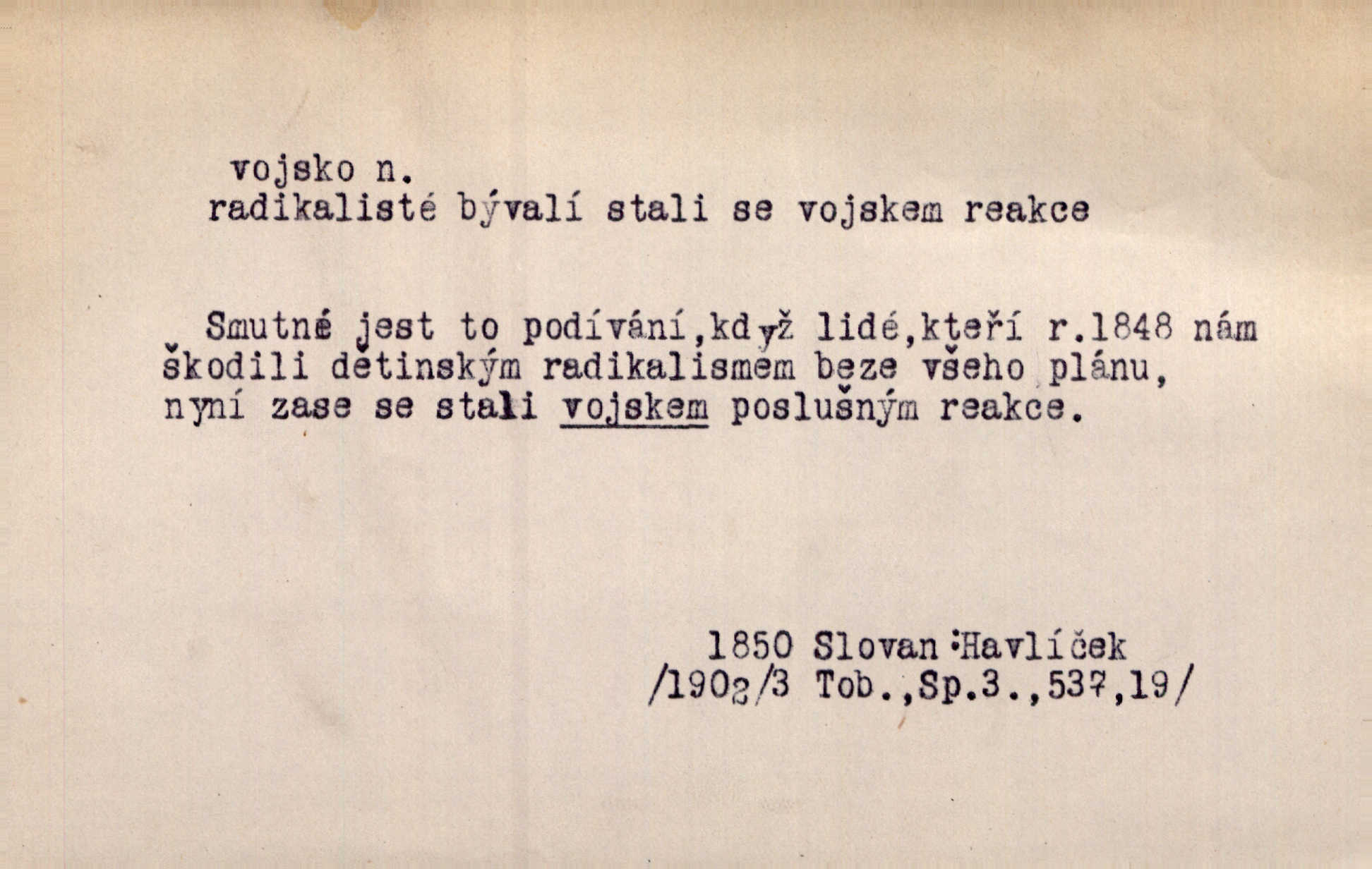 - vojsko, -a n. (6. sg. ve vojsku, zast. ve vojště; zast. vojska, -y f.) souhrn vojenských sil státu; armáda; vojáci. Můj [babiččin] nebožtík Jiří sloužil v pruském vojsku. Něm. Bylo mi asi deset let, když mého bratra k vojsku odvedli. Zey. Císař začal sbírati vojsko. Herb. Jedinou čekárnu naplnil transport vojska. K. Čap. Panenko Marja, ešče jde jiný vojsko! Jir. Ve vojště se roztahuje nahnilá půle Francie. Bozd. Tam se obraťte, tady máme vojsku na starosti a vojnu. Jir. Musilo přijít vojsko a výtržníky rozehnati. Svět. Delegace lidových vojsk dala [na Koreji] při jednáních jasně najevo [své úmysly]. Ml. fronta. Co se v něm [sedlákovi] dálo, táhlo jako nepřátelské vojsko. Hál. Přen. Na jasném nebi se rozsvěcuje vojsko bledých hvězd. V. Fiala. Voj. branná moc n. její část. Jednotlivý druh vojska (op. služeb) (pěchota, dělostřelectvo, letectvo, vojsko ženijní, spojovací, chemické, výsadkové, protiletadlové, tankové a mechanisované). Vojska n. pl. všeobecné souhrnné označení pro vojenské jednotky n. útvary. Pozemní vojska, uskupení vojsk, řízení vojsk.