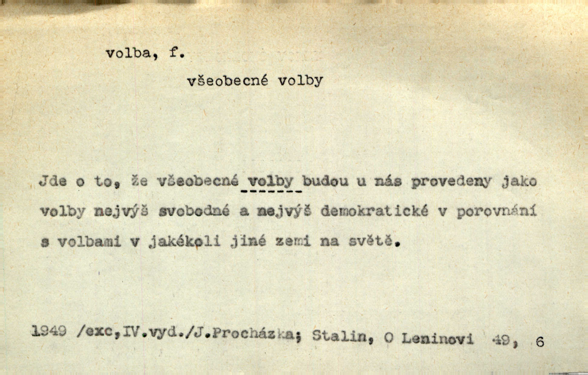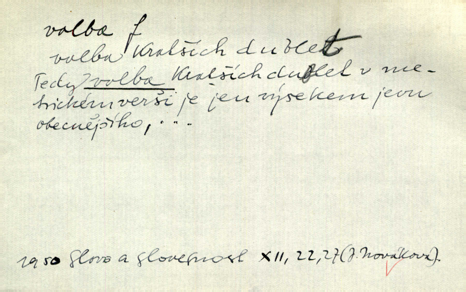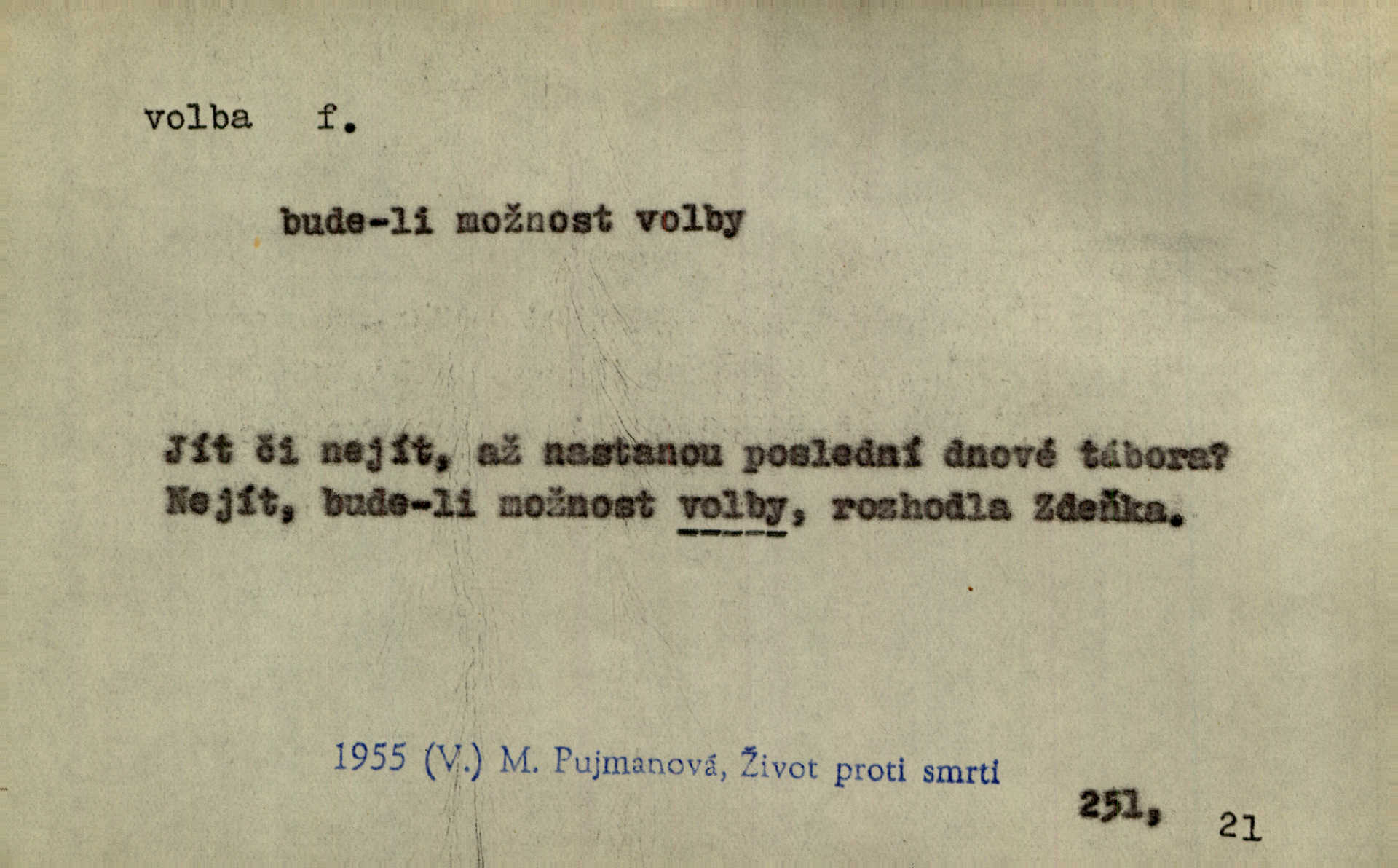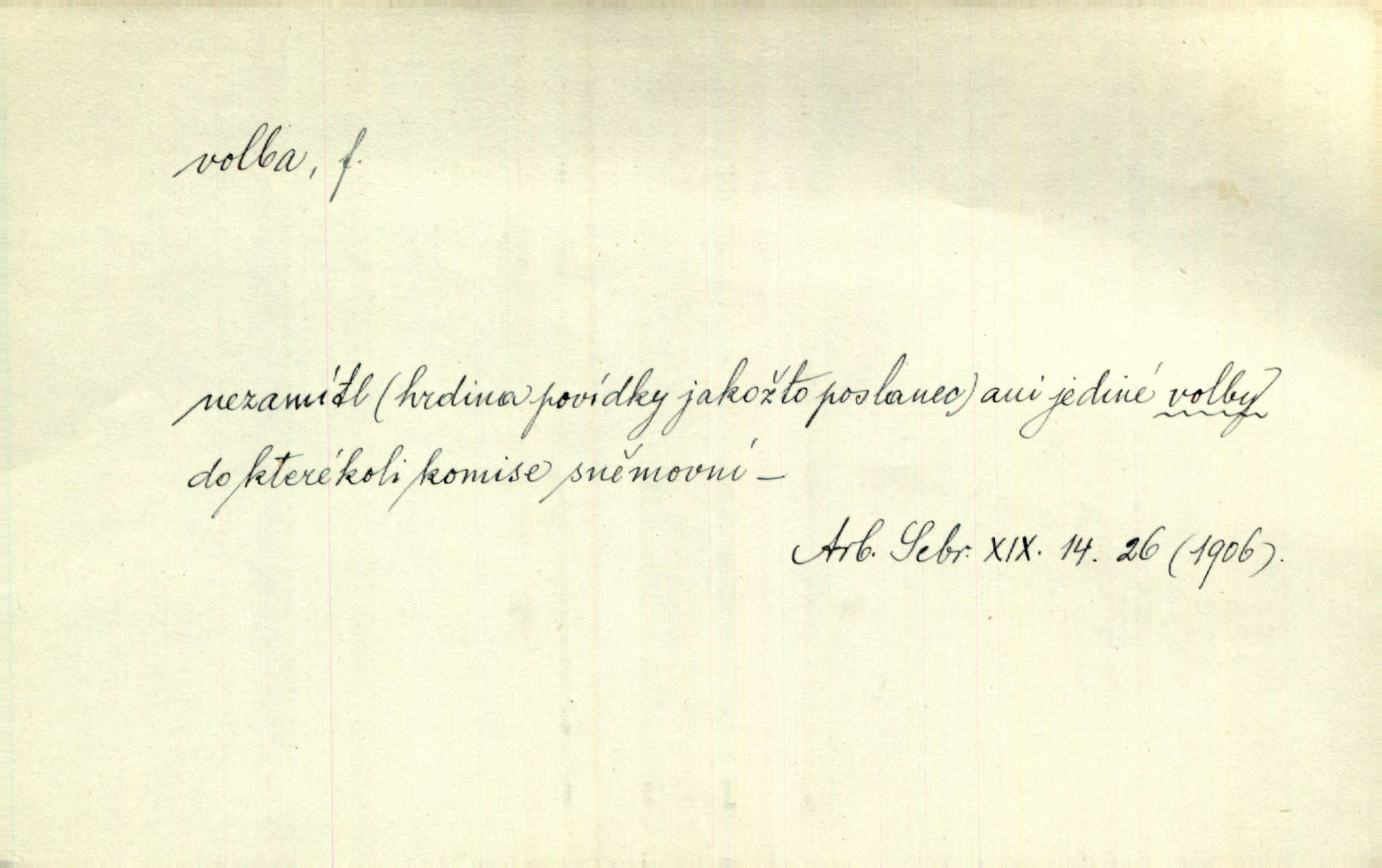 - volba, -y f. rozhodování se pro jednu z daných možností svobodným výběrem; výsledek tohoto rozhodnutí. Nám věru nezbývá jiné volby, než abychom lichotivé vaše nabídnutí přijali. Čech. Rozdílem kroniky a básně lze si vysvětliti volbu zcela různých výrazů pro touž věc. Goll. Matinka odpověděla, že u volbě svého chotě mám první i poslední slovo já. Herrm. Já měla volbu mezi hříchem a povinností. Zey. Sám kdybych měl volbu, jít ještě jednou tam [do vězení] nebo si dát uříznout nohu u kolena, řeknu bez rozmyšlení: nohu. Mach. Složil Měchura o své volbě třetí kantátu opět z Erbenovy „Kytice“ z vlastního podnětu. Šmil. D obyč. volby, -leb pl. jistým způsobem, obyč. hlasováním uspořádané provádění výběru osob, které nějaké lidské společenství pověřuje jistými funkcemi, hlavně zastupováním příslušného celku. Podrobnosti o podmínkách volebního práva do Národního shromáždění a o jeho výkonu, jakož i o provádění voleb poslanců, stanoví zákon. Ústava. Volba presidenta, na které si časopisy zdejší tak mnoho zakládaly, nemá zcela žádného politického významu. Havl. Bude v Římě volba nového papeže. Zey. Otec býval voličem pro nepřímé volby do sněmu. Rais. Tak se přiblížily městské volby, v nichž byla oposice na hlavu poražena. Mach. Volby do závodní rady. K. Čap.