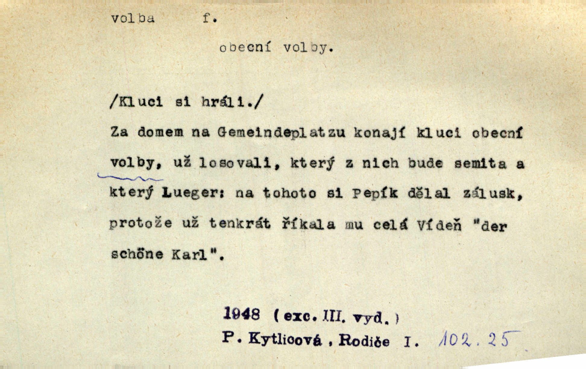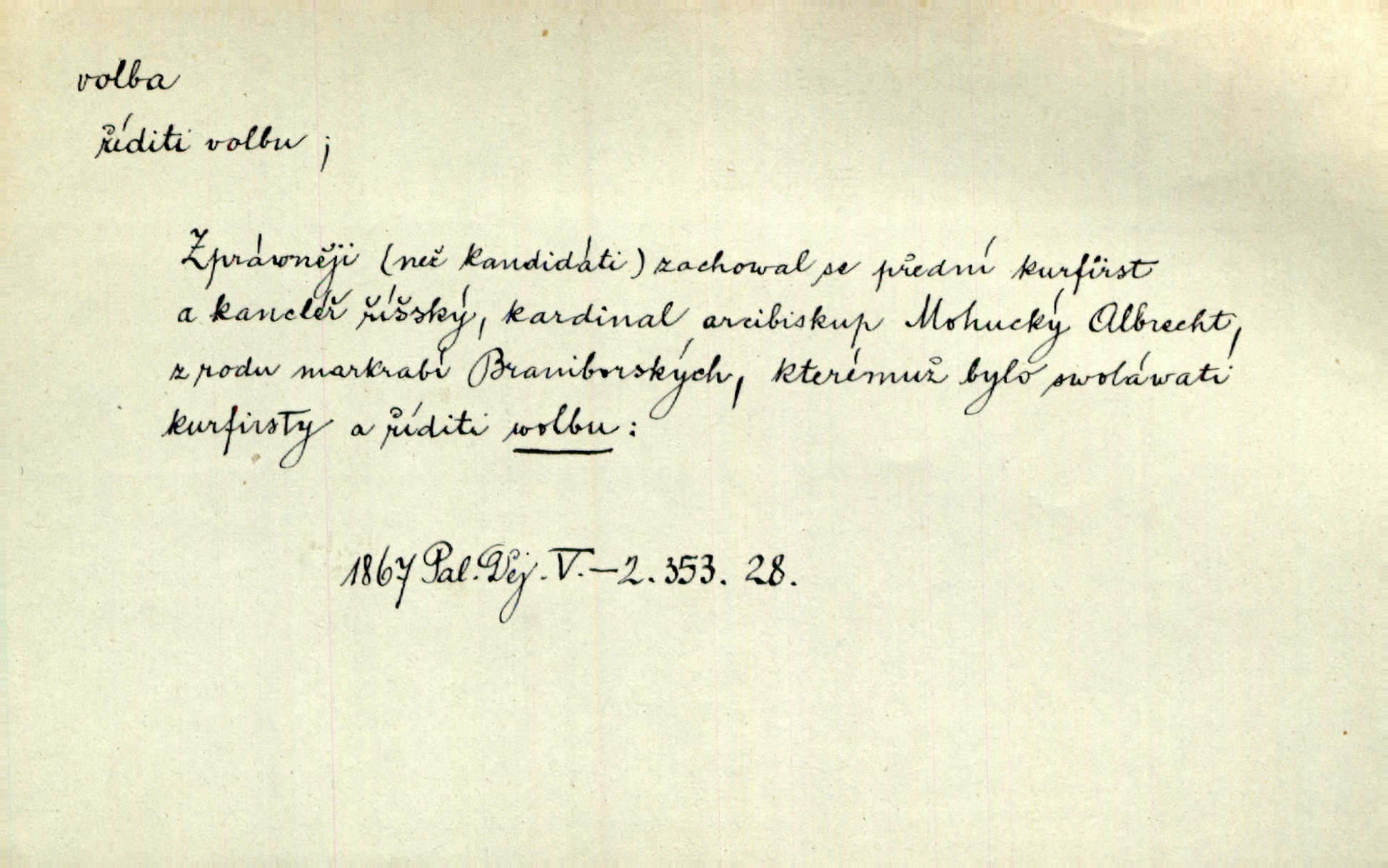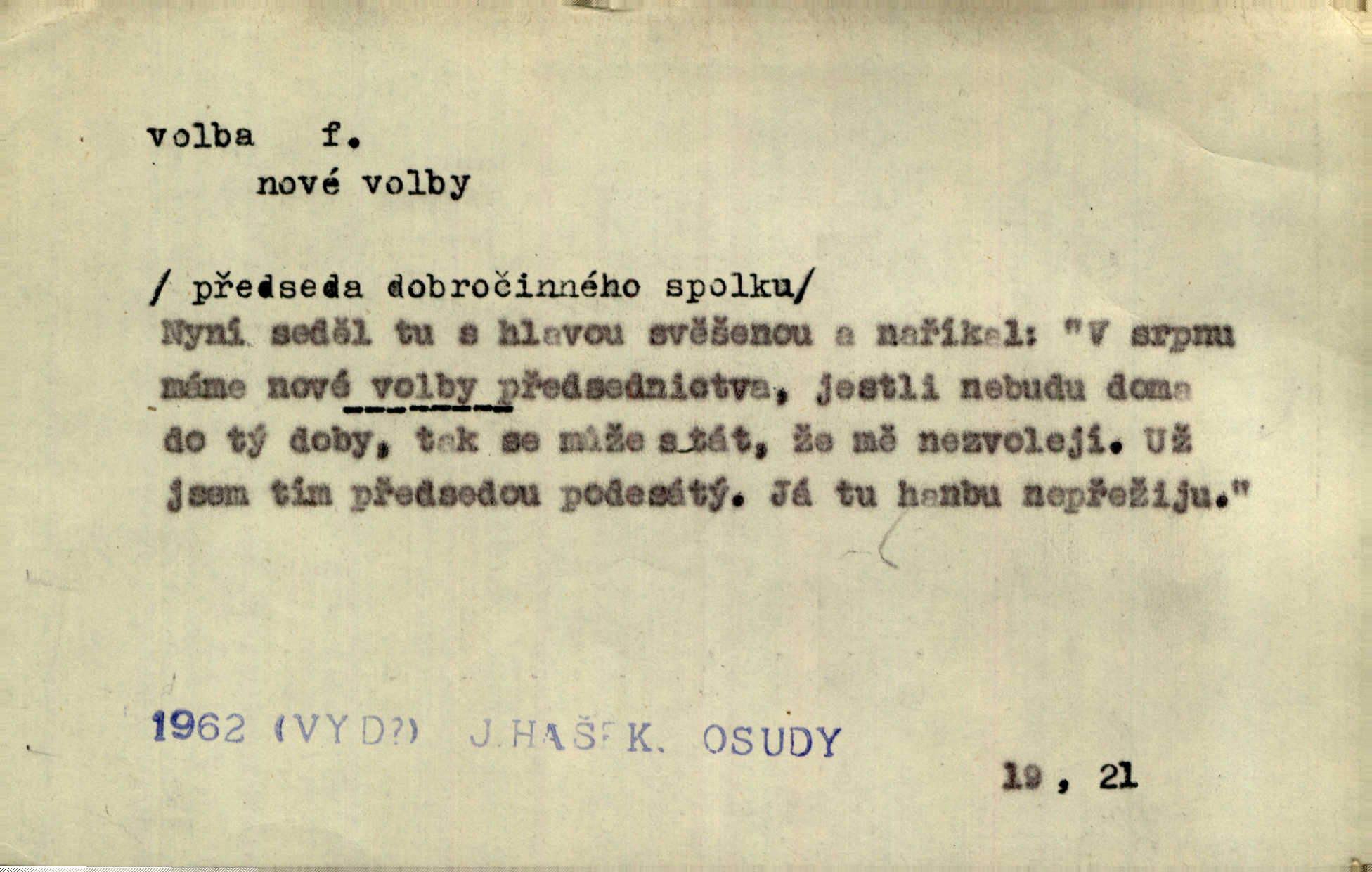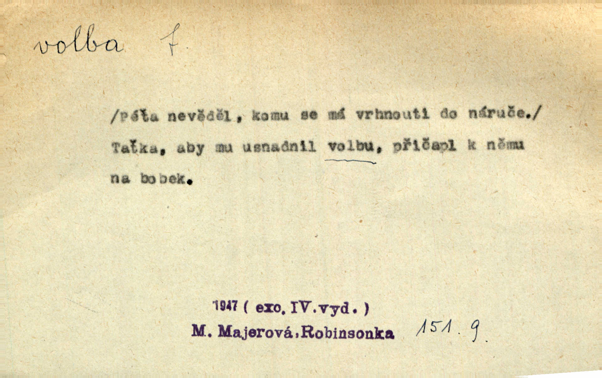 - volba, -y f. rozhodování se pro jednu z daných možností svobodným výběrem; výsledek tohoto rozhodnutí. Nám věru nezbývá jiné volby, než abychom lichotivé vaše nabídnutí přijali. Čech. Rozdílem kroniky a básně lze si vysvětliti volbu zcela různých výrazů pro touž věc. Goll. Matinka odpověděla, že u volbě svého chotě mám první i poslední slovo já. Herrm. Já měla volbu mezi hříchem a povinností. Zey. Sám kdybych měl volbu, jít ještě jednou tam [do vězení] nebo si dát uříznout nohu u kolena, řeknu bez rozmyšlení: nohu. Mach. Složil Měchura o své volbě třetí kantátu opět z Erbenovy „Kytice“ z vlastního podnětu. Šmil. D obyč. volby, -leb pl. jistým způsobem, obyč. hlasováním uspořádané provádění výběru osob, které nějaké lidské společenství pověřuje jistými funkcemi, hlavně zastupováním příslušného celku. Podrobnosti o podmínkách volebního práva do Národního shromáždění a o jeho výkonu, jakož i o provádění voleb poslanců, stanoví zákon. Ústava. Volba presidenta, na které si časopisy zdejší tak mnoho zakládaly, nemá zcela žádného politického významu. Havl. Bude v Římě volba nového papeže. Zey. Otec býval voličem pro nepřímé volby do sněmu. Rais. Tak se přiblížily městské volby, v nichž byla oposice na hlavu poražena. Mach. Volby do závodní rady. K. Čap.