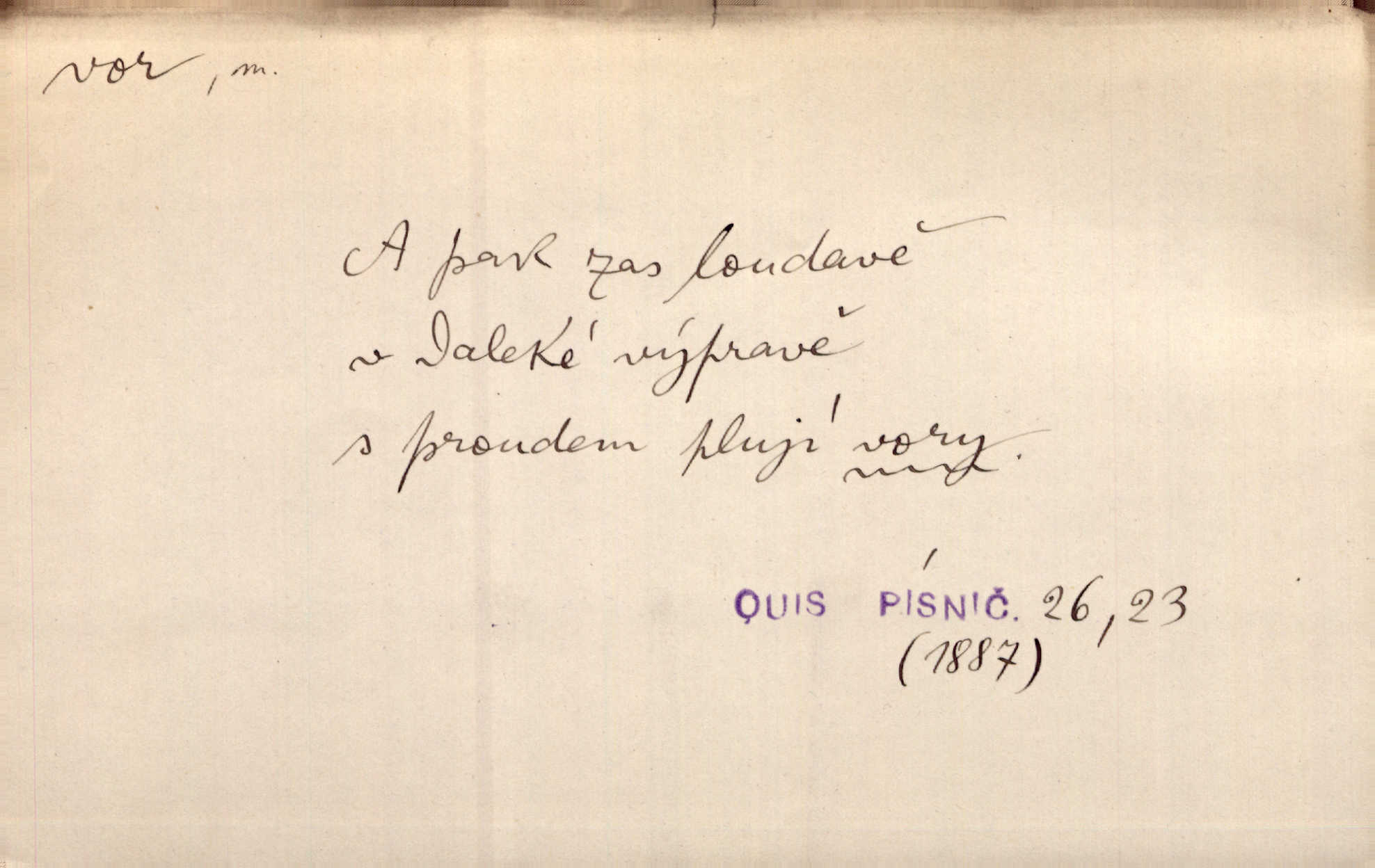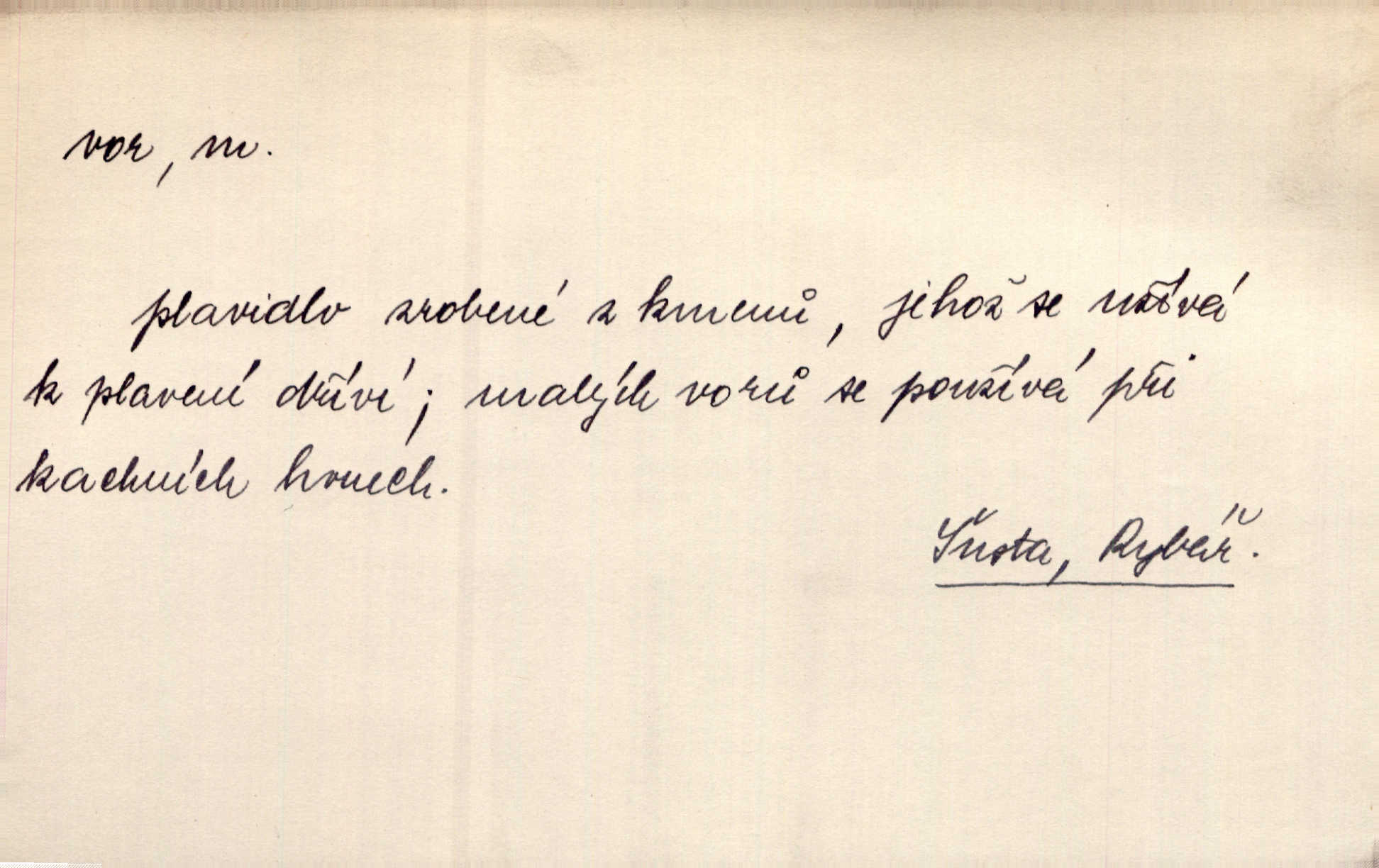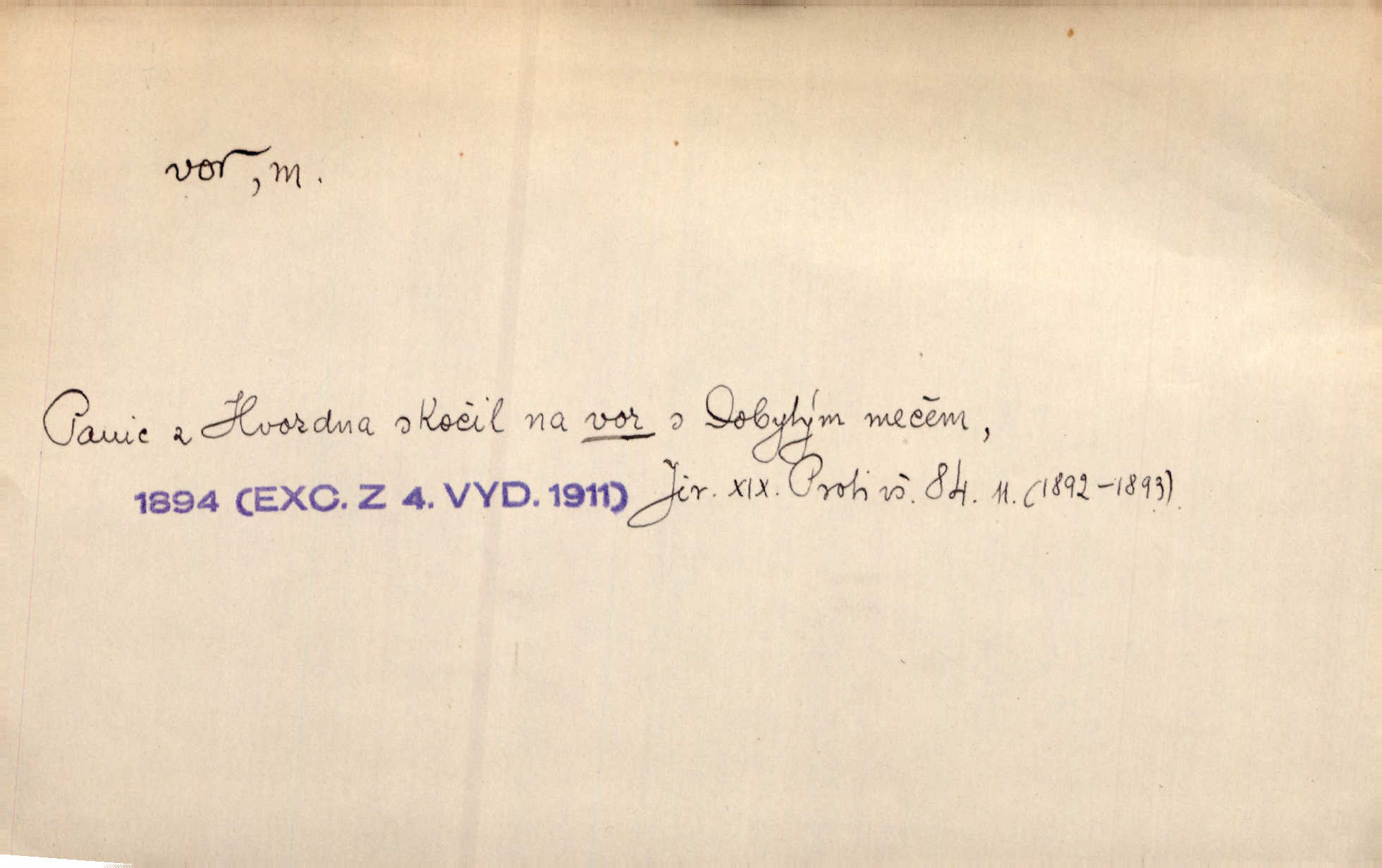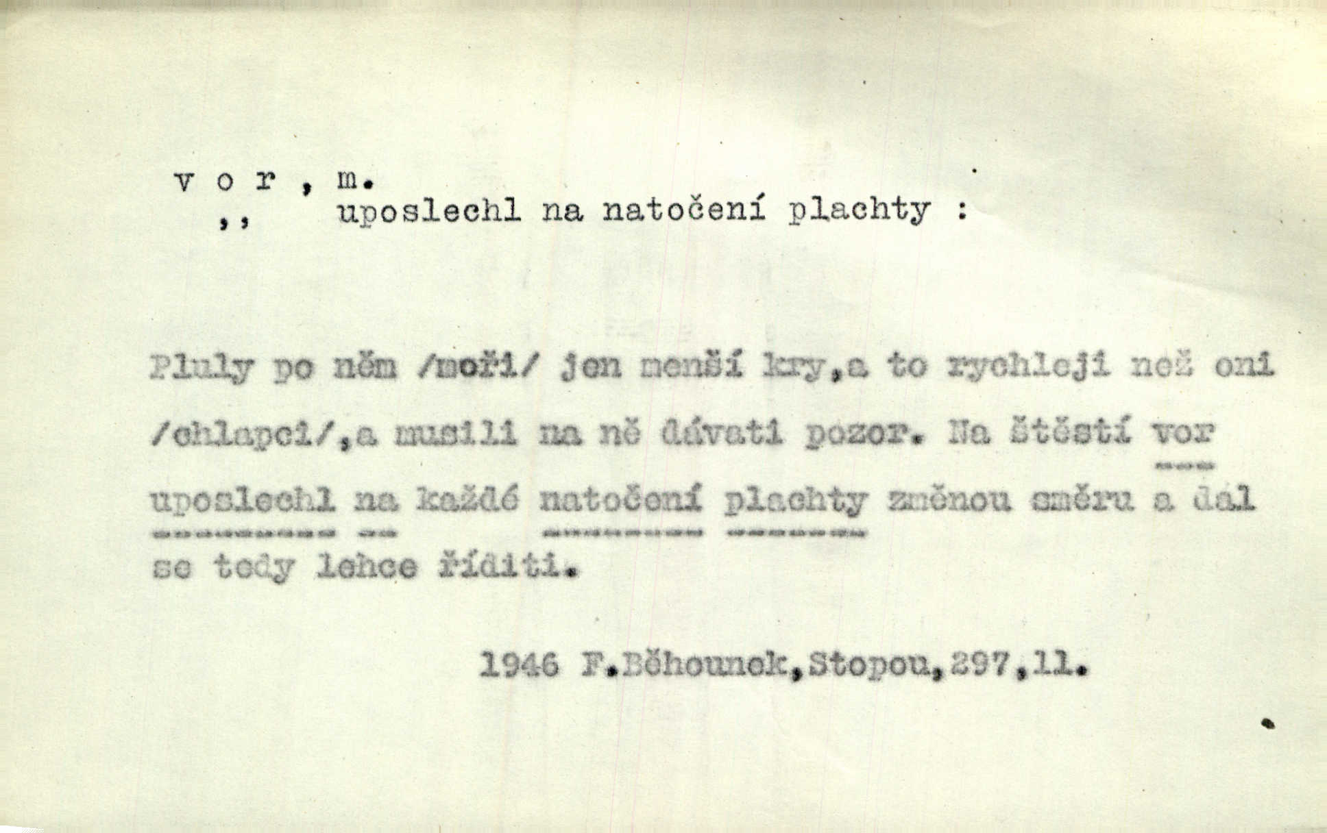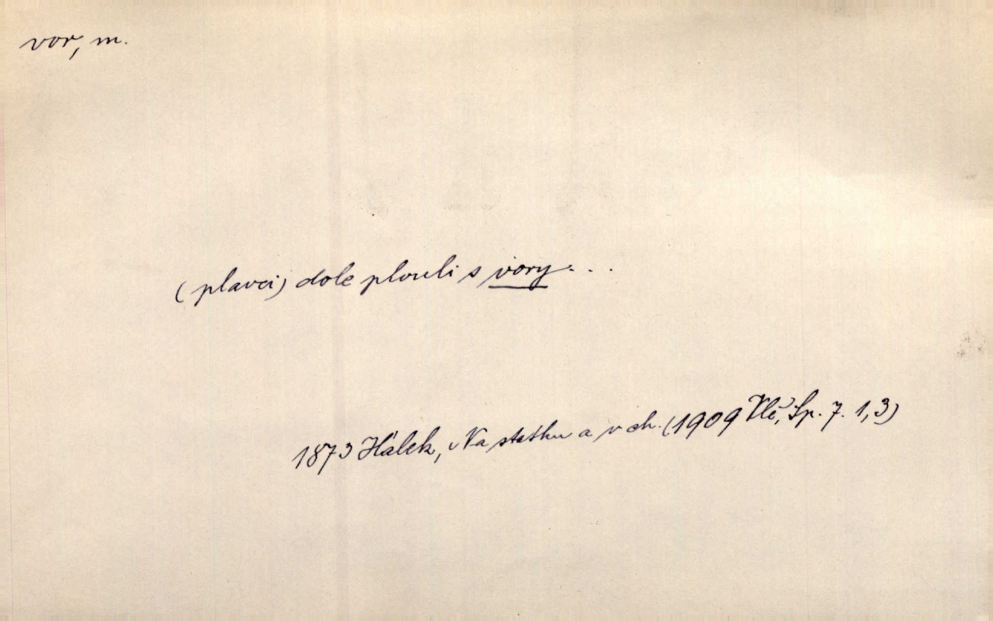 - vor, -u m. svazek kmenů upravený pro přepravu po vodě. Věděli jsme, kdy poplujou vory po Labi. Mach. Panic z Hvozdna skočil na vor. Jir. Plav. sestava stejně dlouhých a stejně silných kmenů spojených houžvemi pro plavení po vodě, tabule.
