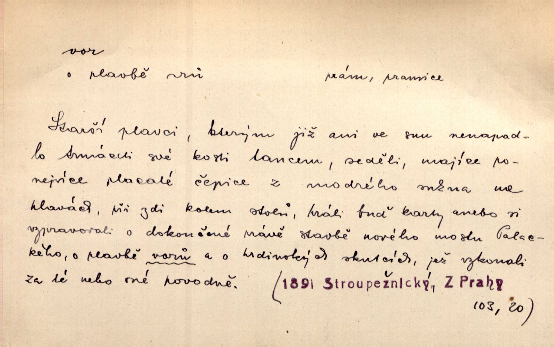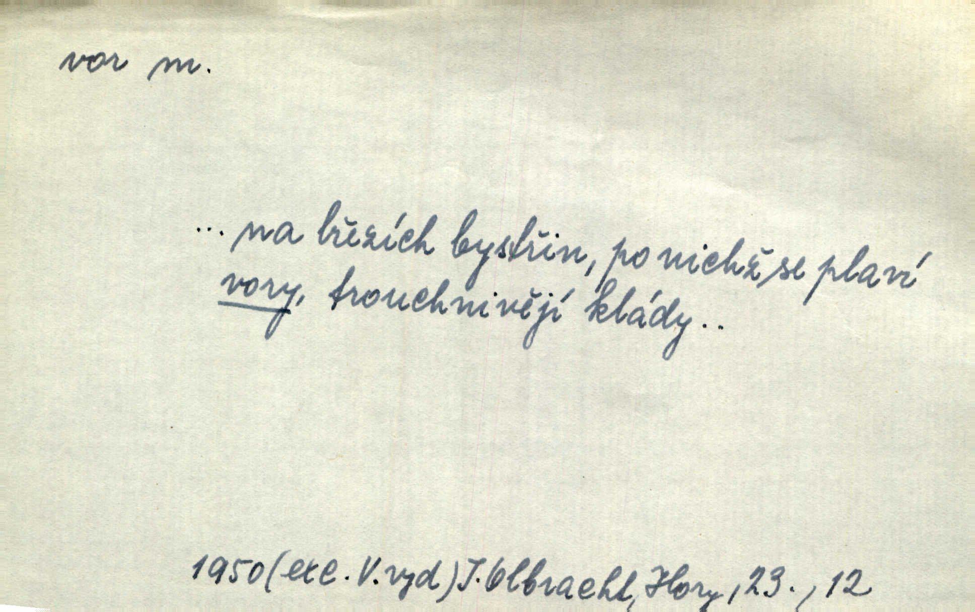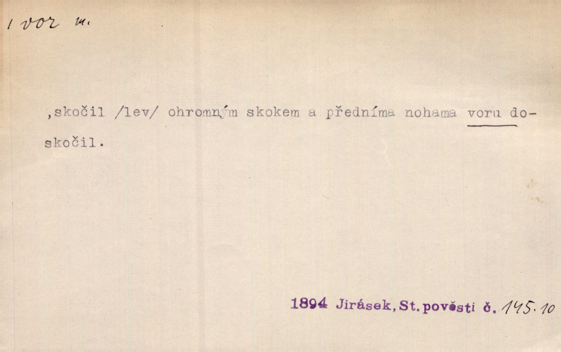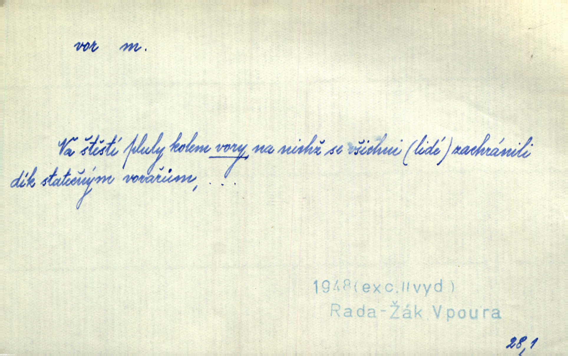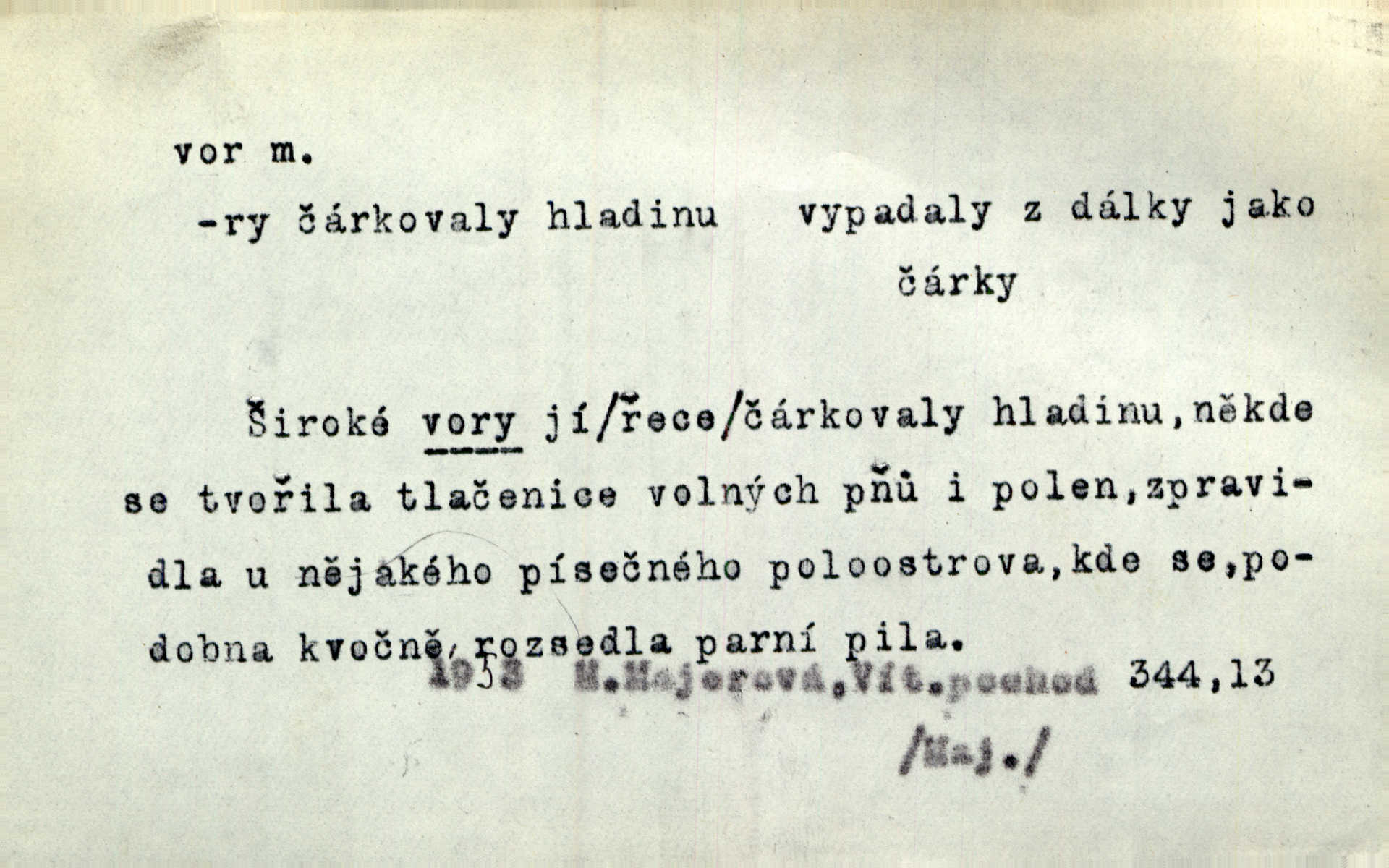 - vor, -u m. svazek kmenů upravený pro přepravu po vodě. Věděli jsme, kdy poplujou vory po Labi. Mach. Panic z Hvozdna skočil na vor. Jir. Plav. sestava stejně dlouhých a stejně silných kmenů spojených houžvemi pro plavení po vodě, tabule.