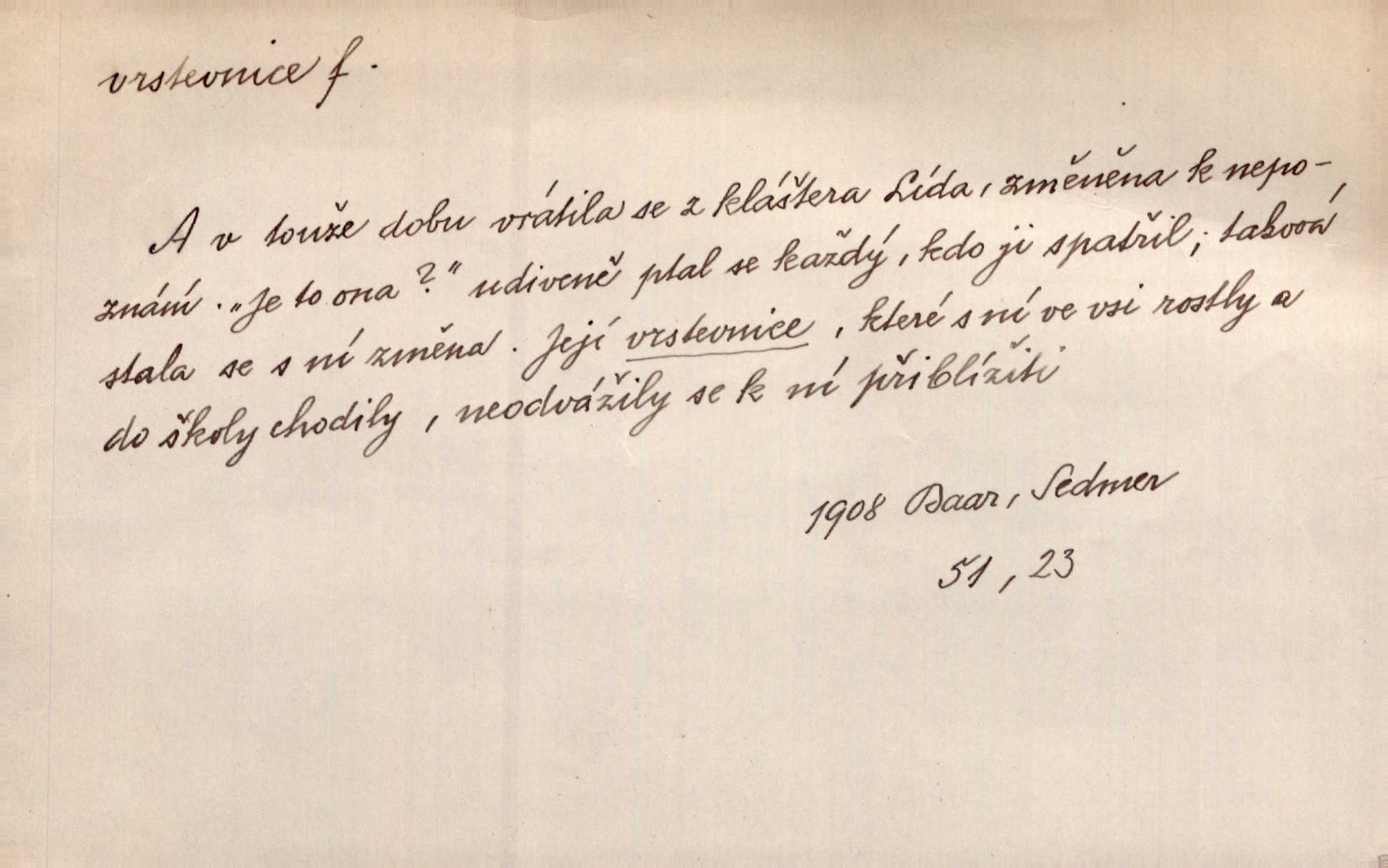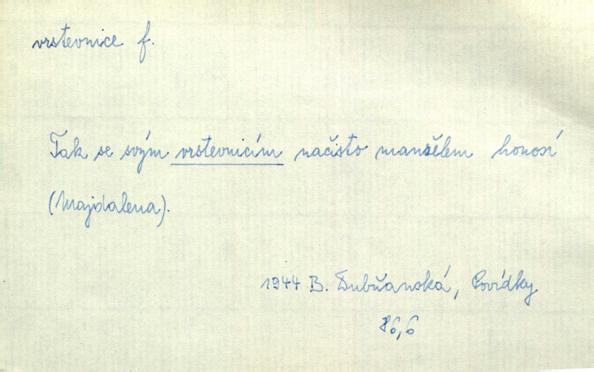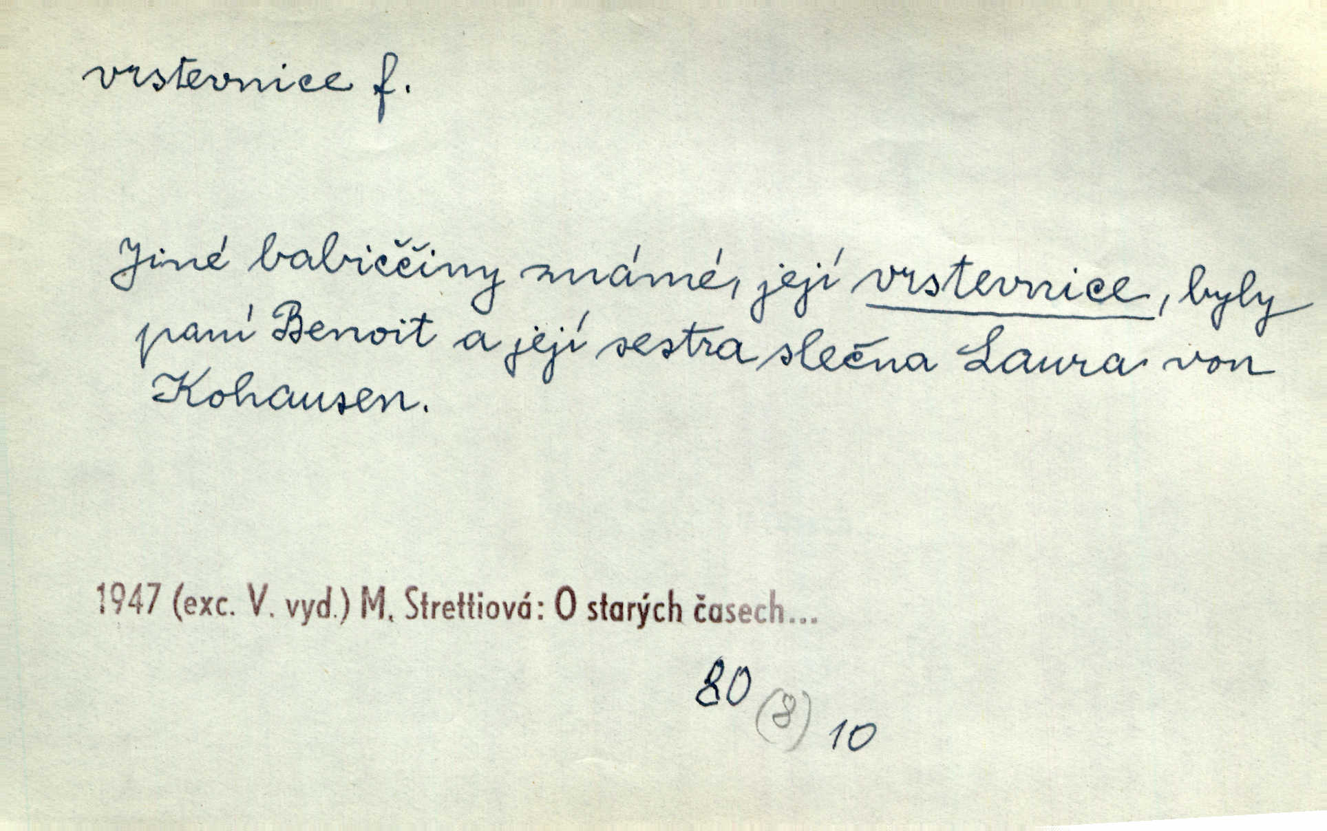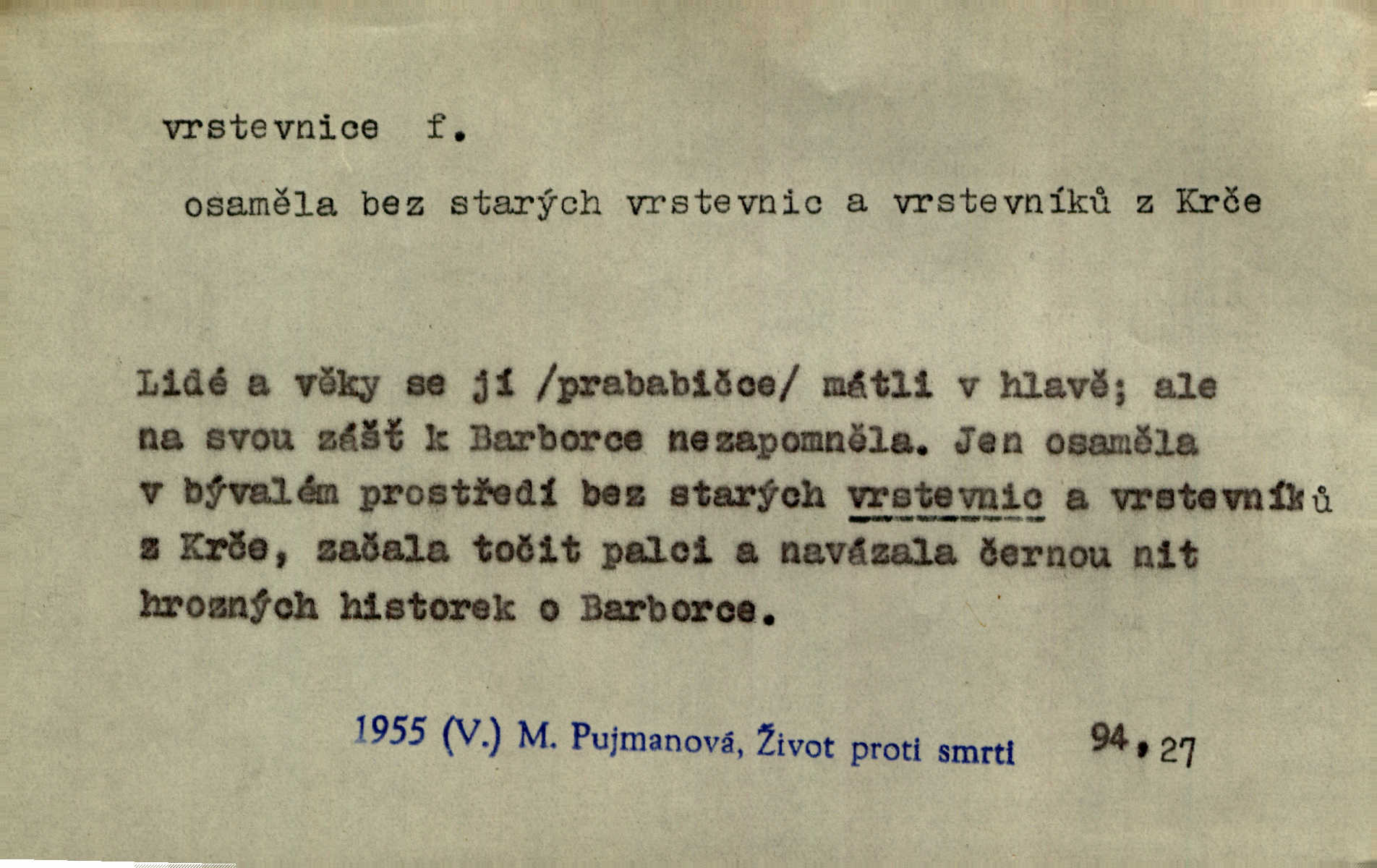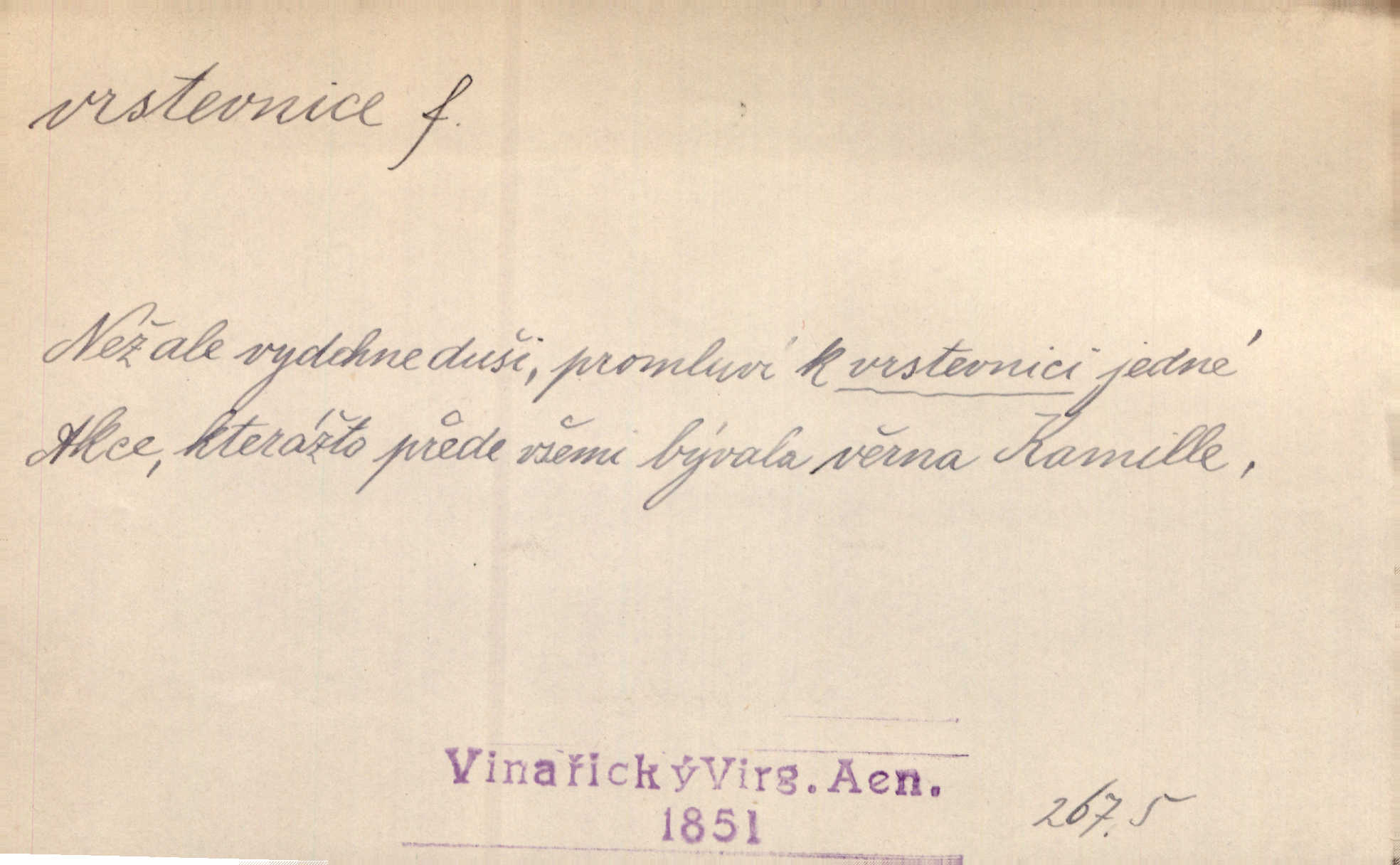 - vrstevnice, -e f. 1. k vrstevník. S druhými vrstevnicemi chodila do dívčího gymnasia. Staš. [Babička] žila spokojeně v malé chaloupce se starou Bětkou, která byla její vrstevnice. Něm. Nabyla Verunka většího vzdělání než vrstevnice její, dívky selské. Staš.