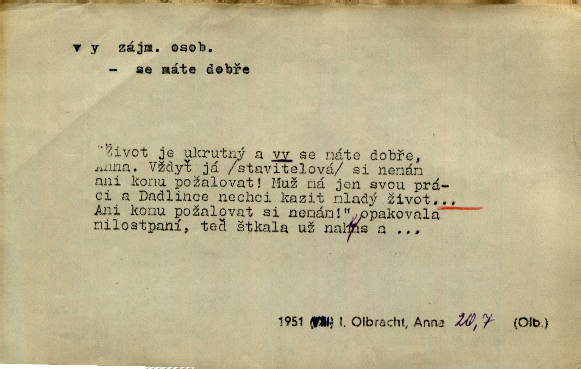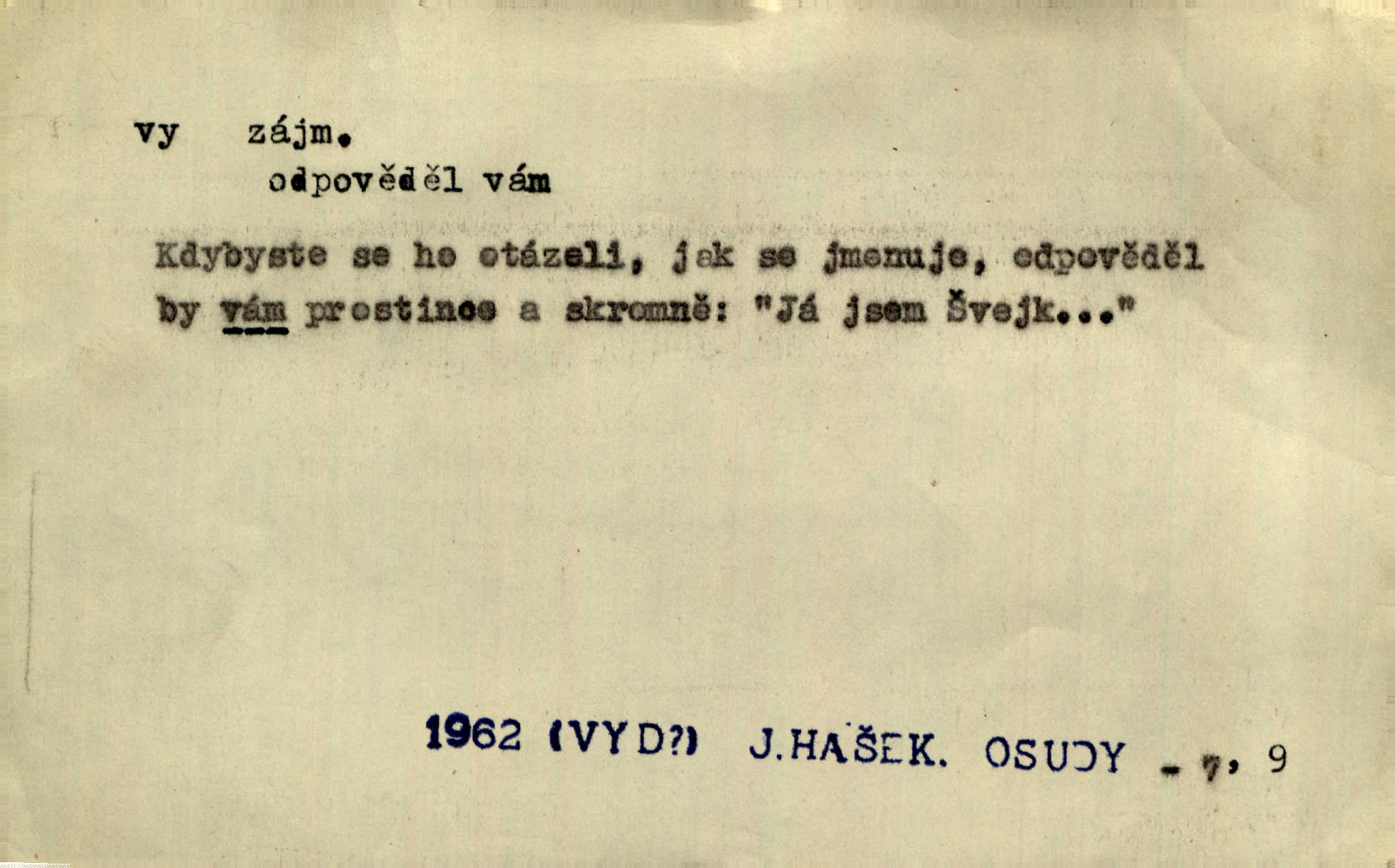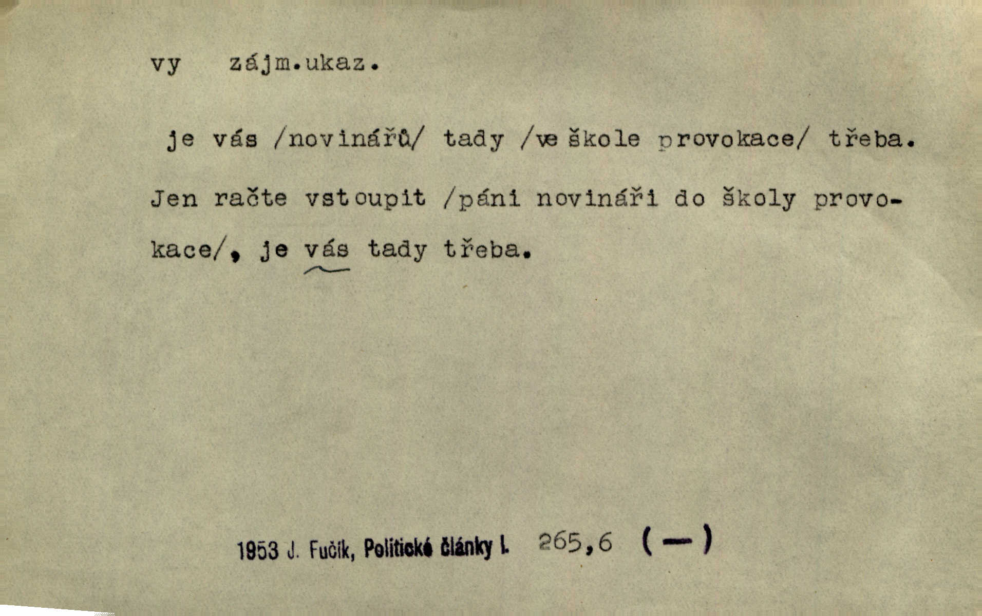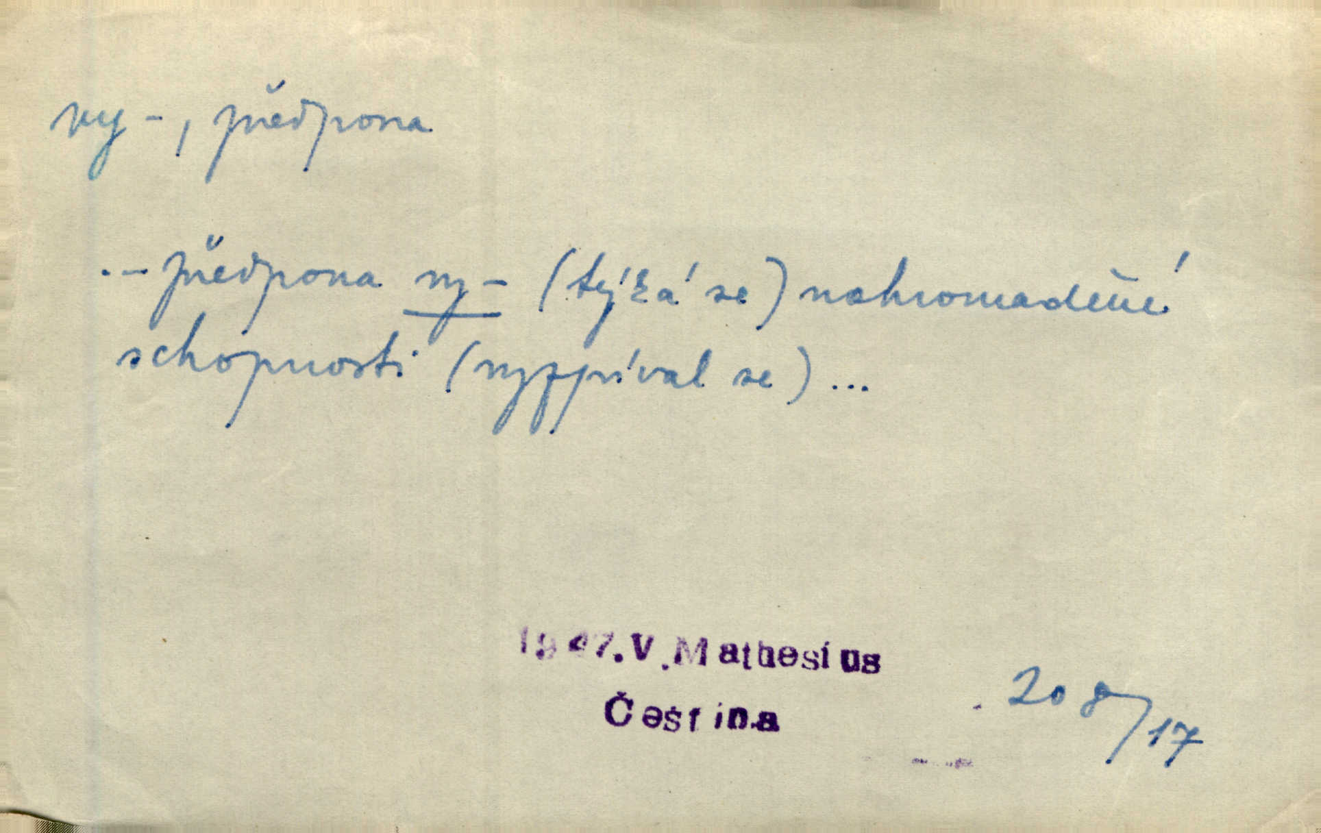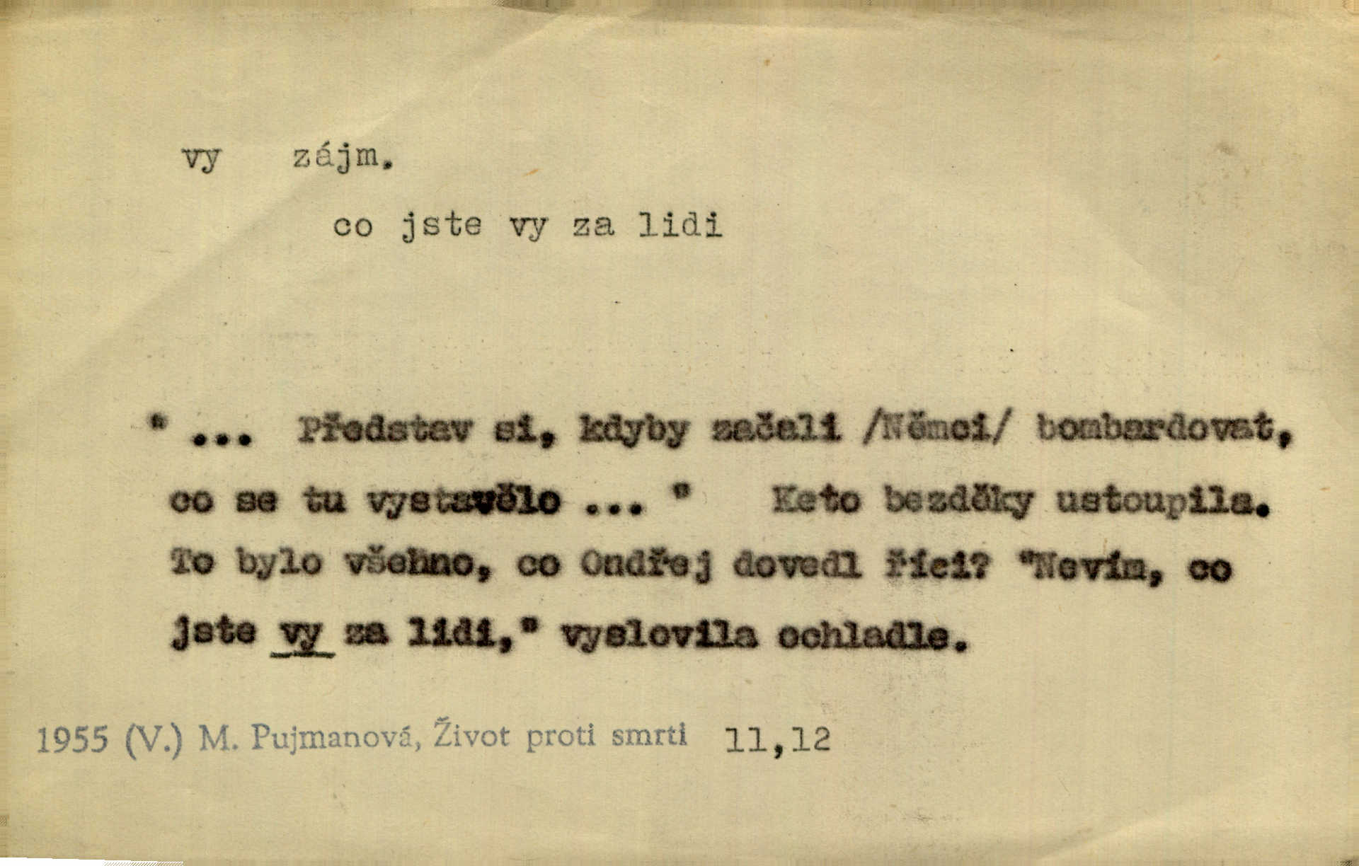 - vy zájm. osob. 2. os. pl. (2., 4. a 6. vás, 3. vám, 7. vámi) označuje dvě n. více osob n. věcí, k nimž se mluvící v řeči obrací. Vy jediní jste zbyli z průvodu, jenž vyšel se mnou z drahé vlasti mé. Vrch. „I všecko, všecko vám [babičky] udělám, co jen chcete, odpověděla Liduška radostně. Erb. Dala bych Ti kamaráda — ale koho dát Ti, koho? Je vás [děvčat] ve vsi trochu mnoho. Ner. Změňte svá sídla a odejděte do neznámých krajů, neboť půda, která neživí mne, nebude ani vás živiti. Vanč. Ani z vás čtoucích nikdo tomu listu nerozumí. Win. Pán Bůh s vámi, co ten čtvrtý? Hál. Brzy uslyším vás, milé zvony, zas! Čech. D označuje osobu, k níž se mluvící v řeči obrací a jíž vyká. „Pozdrav tě Bůh, děvče!“ řekl k Dobrunce. „I vás, pane!“ odpověděla Dobrunka. Něm. „Do jakých koncův to s vámi dojde, Mrštino, povedete-li pořád svou?“ Šmil. Prý takový chudý chlapec jako vy, Půlpáne, si má víc vážit vzdělání, kterého se mu poskytuje. K. Čap. „Jste vy pan hospodský?“ Pfleg. Stěžujete si, můj drahý, že Vám příliš málo milostivě a srdečně píšu. Ner. [Farář] chce, aby mu lidé nevoňovali, aby mu říkali vy vykali mu. Jir. D Nom. vy zdůrazňuje n. má význam citově zabarvující. Povolání vaše, milí přátelé, právě vznešené jest; vyť lidi vzdělávati máte. Pař. Já se s vámi sdílet chtěl — sdílet o vše, co jsem měl; vy však všecko jste mi pobrali. Paleč. Nežádejte to, lidé! Má velká duše pod tím [tajemstvím] klesá, vy byste se v prach a popel obrátili! Klicp. Třetí [dítě] povídá: „Ale, babičko, vy máte jen čtyři zuby!“ Něm. „Vy nejste přece stár.“ Čech. „Hleďme — vy mne budete chtít poučovat, co to znamená!“ Něm. „Tak, tak, Fanynko! Vy jste dnes nějak čiperna.“ Šim. „Snad máme hrát na ulici fortepiáno, co? Vy!“ Herrm. D Nom. vy expr. při zvolání dává důraz na oslovenou osobu n. věc. Vy lenochové, to jste toho nasekali od rána! Herb. Vy, Václave, ať se mi o to postaráte, aby se sem dostal člověk jak se patří. Svět. Vy všichni, kdo jste stísněni, již pojďte, pojďte ke mně. Hál. Vzhůru, vy hoši, podívejte se všichni z ostra ven. Svět. Ej, ztepilí šuhaji v čižmách vy, ej, děvčata v suknici rudé. Bezr. Mateřídouško vlasti naší milé, vy prosté naše pověsti! Erb. Neplačte, vy modré oči, však se brzy vrátím k vám! Čech. Proč vy, moje mladé dni, ve tmách jste se zasypaly? Čel. Vy hvězdy jasné, vy hvězdy ve výši! Mácha. D u vás ve vaší rodině, ve vašem domě, ve vašem kraji, ve vaší domovině. „Ale měli u vás radost, že jste přišel?“ Rais. „U vás ani nevědí, kde bydlíš.“ Svob. „Tak co tam u vás robíte?“ začal se výminkář sklinkařů vyptávati. Preis. „Co pak u vás nesejou [obilí]?“ Rais. D Dat. vám expr. vyjadřuje citové zaujetí, důvěrnost. „I dušičky drahé, to je vám novina.“ Rais. „Počnu se vám s ním hádat, a nadávám taky.“ Šrám. „On vám sem přišel jako do hospody a chce s Máry tancovať.“ Pfleg. „Tam [v nebi] je vám prý krásně.“ Svět. „On vám byl jako u vytržení.“ Svob. „Ale on vám byl jako blázen.“ Šim.