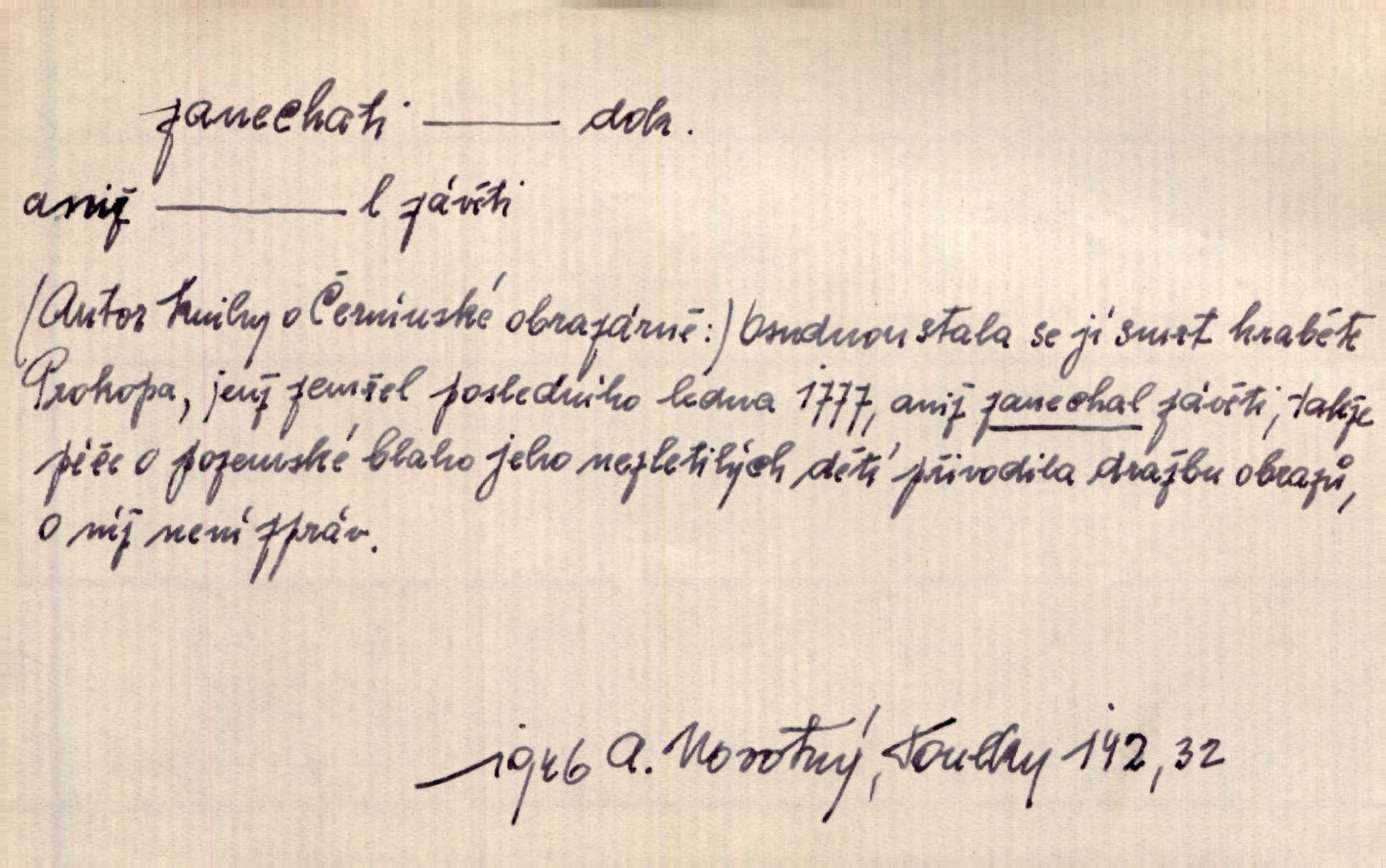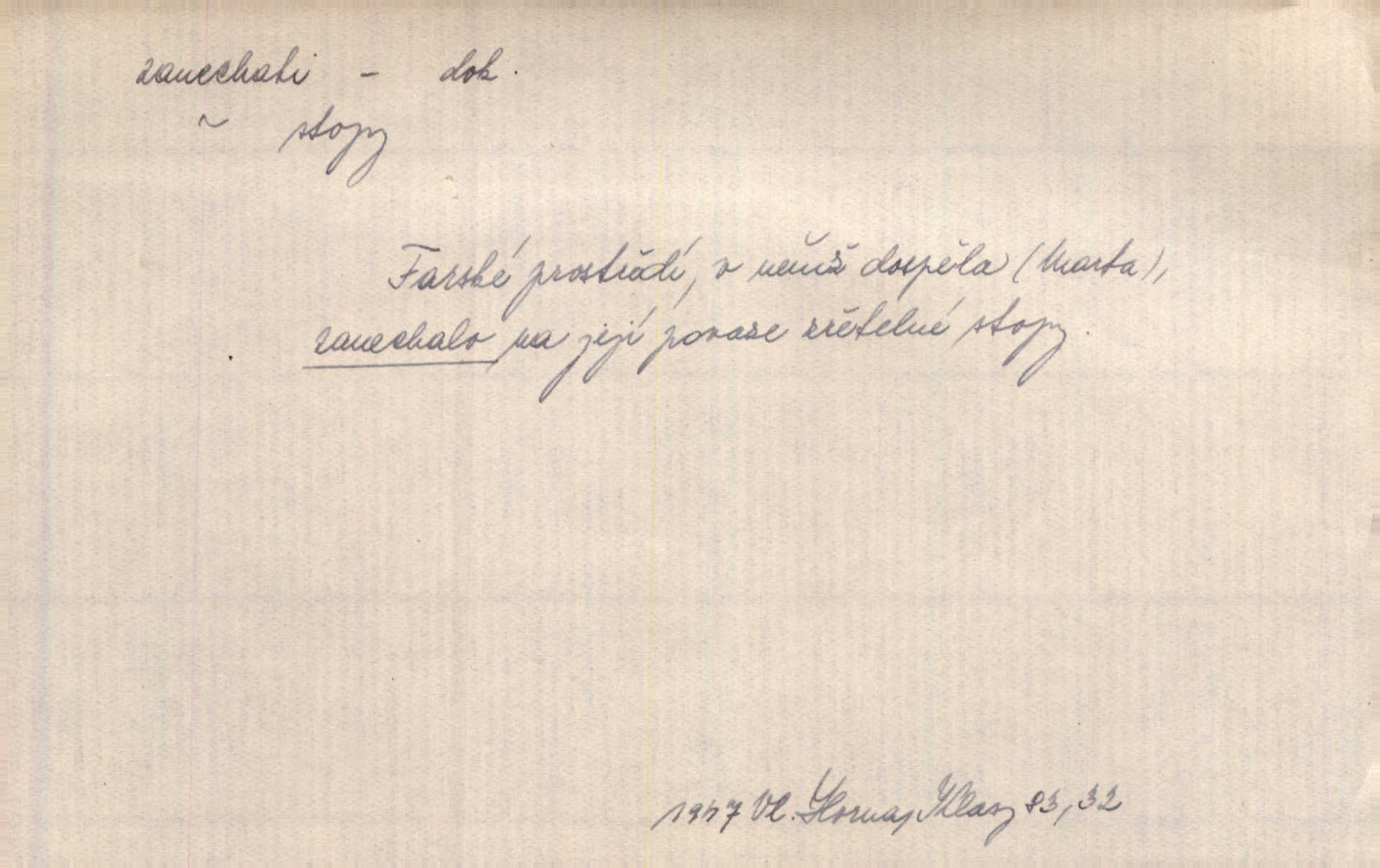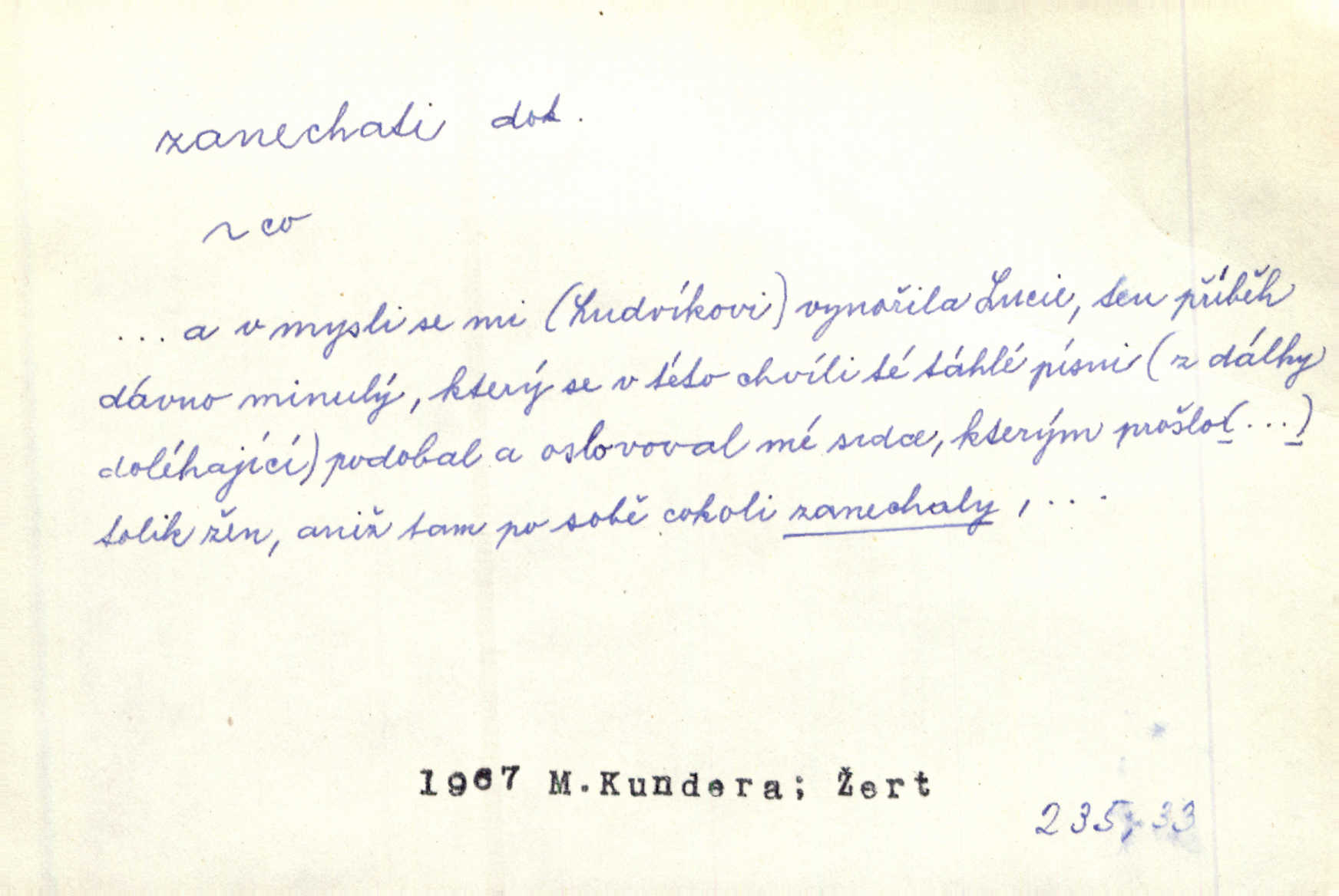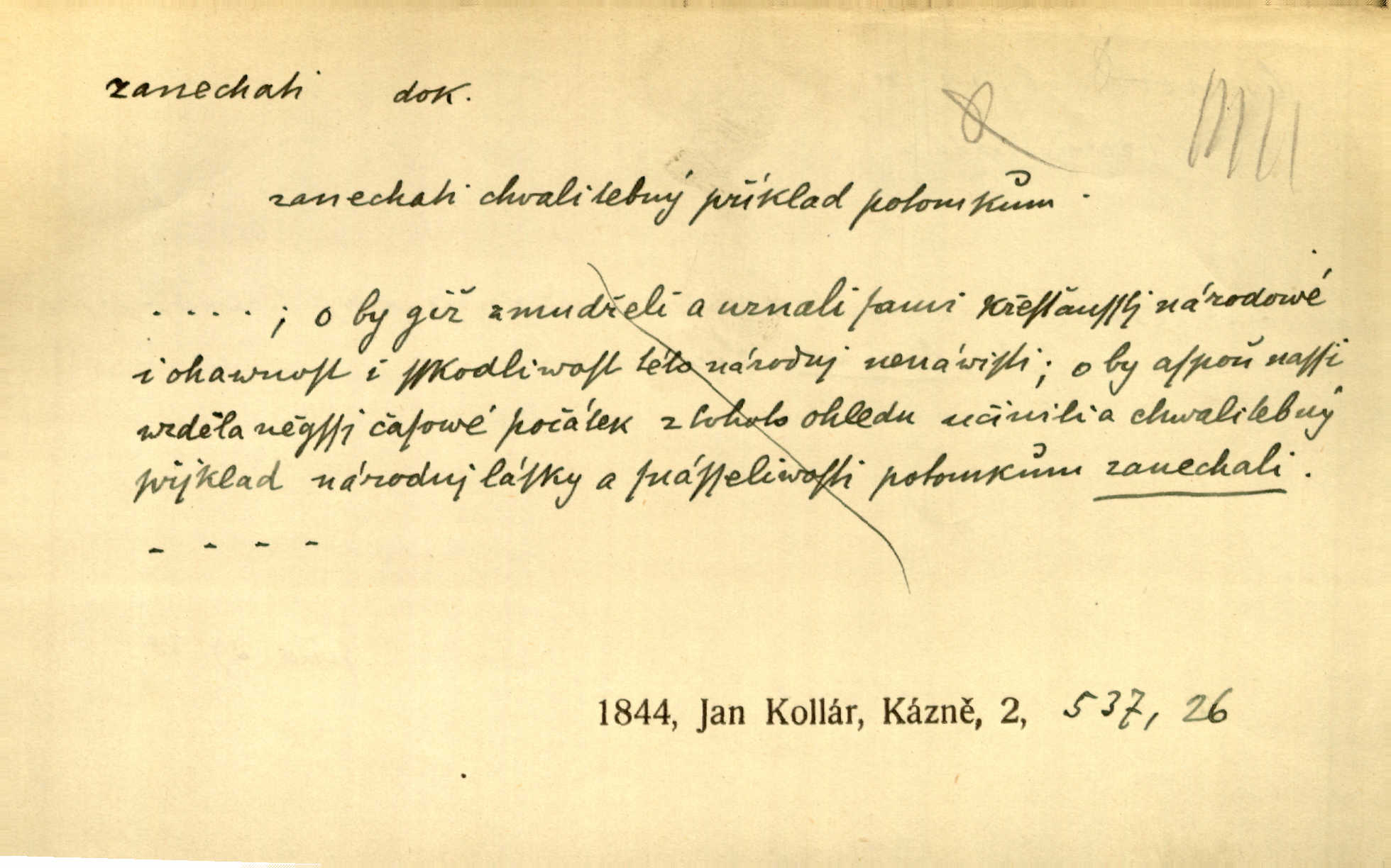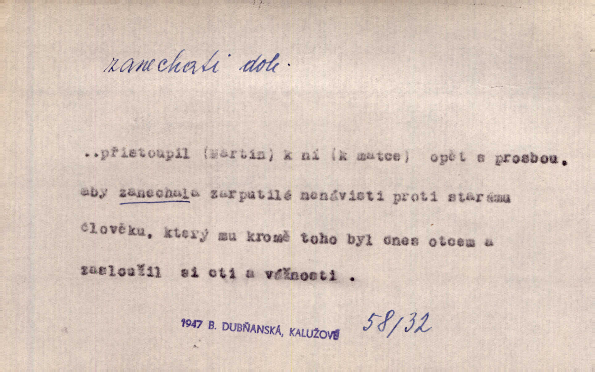 - zanechati dok. (imper. zanech) (co komu) nechati, ponechati, zůstaviti po sobě něco někomu. Dětem svým zanecháte dobré dědictví. Herb. Zanechá svým dětem slušné hospodářství. Vach. Choť zanechala mu k útěše tři krásné dcery. Čech. Vždyť jste zanechala nám své požehnání. Slád. [Hrabě] nezanechal žádné závěti. Jir. Teď své poklady zanechali nepřátelům. J. Heyd. Zanechal město v plen podvratným živlům. Švan. Pan rada zanechal Cimburovi vzkaz, že před polednem nevyjedou. Baar. Pohled Honzův dával tušiti lidem, jak veliké zásoby zloby zanechal v něm život. A. Mrš. Kdo prošel mým dětstvím, každý tam zanechal stopu. Mach. Vědomí, že zanechal člověk brázdu v cizí duši — to je nade všecko. Sez. Smrt mladšího syna zanechala v jejím srdci otevřenou ránu. Č. Jeř. [Těžký porod] zanechal následky. John. Dějiny křesťanství zanechaly těžký dojem v její duši. R. Svob. Hned na první pohled se přesvědčíme, že si ministerstvo nejdůležitější věci zanechalo za lubem utajilo. Havl. Zanechal sobě vrata zajistil se pro všechny případy. Čel. Kdykoliv něco před se vzal, zanechal si vždycky kozí vrátka. Šmil. D (koho, co) opustiti, ponechati, zůstaviti někoho samotného, bez ochrany, péče, pomoci, nepostarati se o něco. Do svaté země rytíř odejel, a věrnou ženu doma zanechal. Vrch. Ah, a zemřel beze mně, zanechal mě, můj Kyros! Zey. Sotvaže slyší, že muž měl jinou, s dítětem že ji zanechal, jde a skočí do vody. Rais. Jdu vás prosit, abyste ho zanechala, abyste za ním nechodila. R. Svob. Josef ještě nebyl na ouřadě a cikáni již byli mnoho hodin cesty od místa, kde ho zanechali. Prav. Ubíraje se do salonu, zanechal lichváře s Valentinem. Arb. Kněžna vás volá, kněžna rozkazuje zanechati stád a shromážditi se s kopími. Vanč. Zanechme řezníků a pojďme do trhu na rynk. Win. A tu mi tedy radíš, abych zanechav lidu věrného, o bezpečí hlavy své se postaral? Tyl. Lid náš vznícen dechem Páně zanechal svých příbytků. Čech. Víc nás tam na tiché lávce není, to už je dávno zanechaná půda. Svob. Jde ke své práci včera zanechané. Leg. Viďte, že jste slečny Betty zanechal? přerušil poměr. Šmil. Slovinec svého kroje buď zcela zanechal aneb jej cizím pokazil odložil. Něm. To byla vůle Boží, aby [duše] zanechaly tento svět zemřely. Havl. Nemyslete, že snad bych ji úplně zanechal bídě připustil, aby trpěla bídu. Svob. Sobě zanecháni v prostřed širých polí mrtví podřimují opuštěni. Leg. Nemysli, až budeš ve světě a sám sobě zanechán, že můžeš dělati, co chceš odkázán na sebe. Šmil. D (čeho, zř. co) upustiti, ustati od něčeho, přestati s něčím. Cítíš-li, že nejsi ve své kůži, zanech cvičení! O. Jand. Zanechal hry. Zey. Pavel chybil velice, že zanechal studií. Čech. Kondelík zanechá živnosti. Herrm. Doktor hodlal prakse zanechati. Šmil. Vzpomněl si na tuto příhodu ze svého houslaření, před lety již zanechaného. Čap. Ch. Myslili, že zapotřebí jest, aby zanechali předešlý život a přijali nové mravy. Prav. Zanech těch myšlenek! Mrš. Kdo lásky žádáš, zanech doufání. Quis. Kdys mně kamarádi domlouvali, abych zanechal mrzutosti a s nimi byl vesel. Něm. D (co komu) řidč. odevzdati, přenechati něco někomu. Nedělaly nic a zanechaly péči o živobytí docela svým rodičům. Něm. Ostatní zanechali osudu a vesele odtáhli se svou kořistí. Vanč. Ty hračky, Titiane, zanech mládí. Vrch. Duchovní zprávce zanechal rakev péči hrobníkově. Tyl. D zanechati si (co) poněk. zast. podržeti u sebe, pro sebe, ponechati si něco. Zanechal si jenom několik kousků polí. Herb. Ničeho si nezanechal, jen otcovu šavli při boku. Něm. Rodina prodala [panství], zanechavši sobě toliko jednu ves. Koll. Já k příhodnější zanechal si chvíli ti ukázat, že silnější jsem tebe. Vrch. Jsem vedle tebe žena ubohá, jež dadouc srdce, sama nemá nic, jen touhu zanechavši sobě bolestnou. Hál. O vyvinování celého děle zanecháme si úsudek, až novellu dokončí. Havl. Seschlá tváře zanechala na sobě lehký úsměv. Svob.