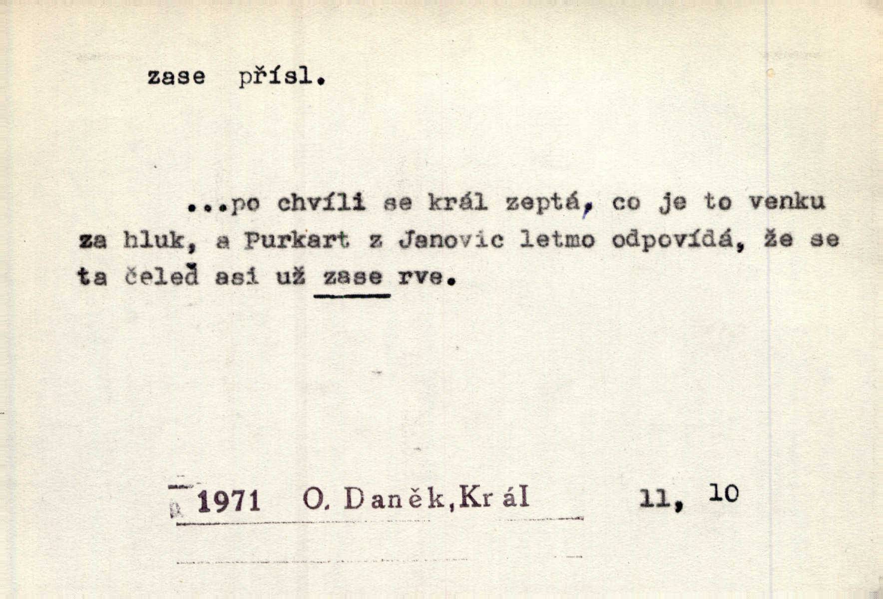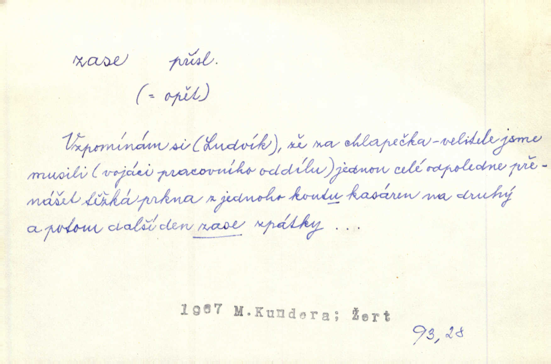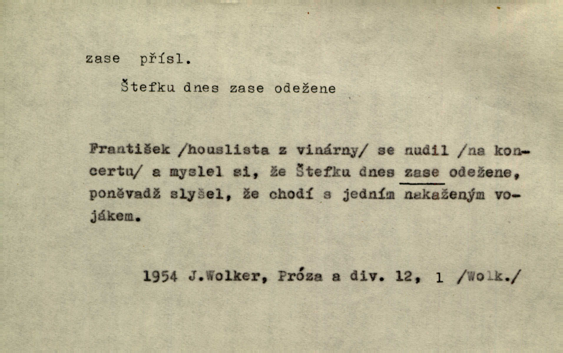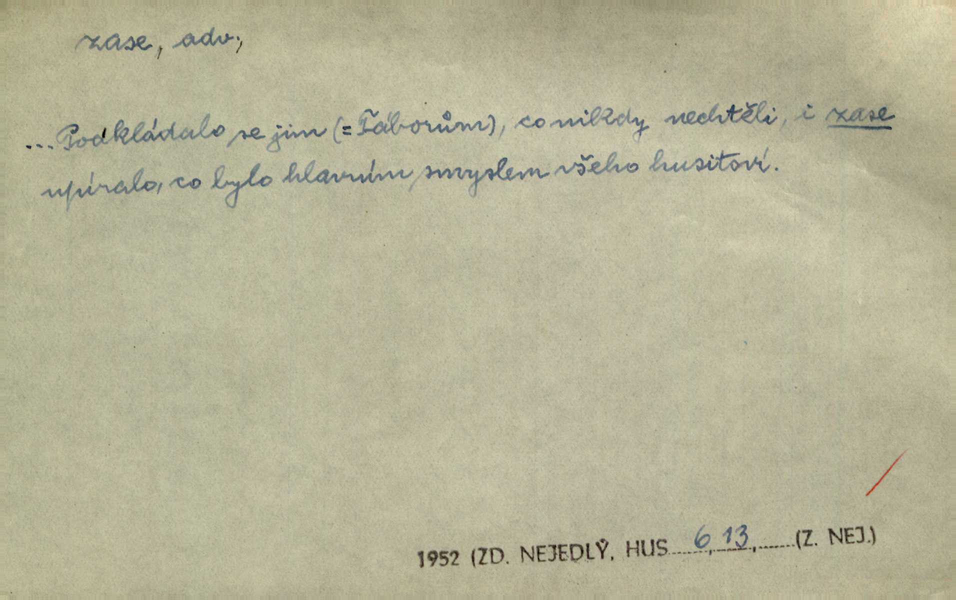 - zase, zas (dial. zasej, zasejc) adv. opět, znova, ještě jednou, po druhé. Až zase přijdete, uděláme to zase tak. Šmil. Když odešla, Liduška si zase k oknu sedla. Erb. Od Karlova Týna jsem po letech zase šel. Čech. Konečně péra se zase chopiv, začínám o lásce. Tyl. Má naděje zase stoupla. Vach. Po chvíli bylo ticho — zase zahučely varhany — opět utichly. Rais. Skřek zazněl, ještě hroznější a zase skřek a zase, zas a zas. Zey. Právě jsem se dověděl, že příčinou domácích nesvárů jsem já a zase jenom já opětovaně. V. Mrš. D vyjadřuje připojování s částečným odporováním; pak, dále, však. [Pes] štěkal hned prudce, divě, zas vesele ňafal. Rais. Hned bouří rozmarem, zas dá se v pění. Vrch. Zas se tiší, zase doufá dívka v šatě zeleném. Čel. Jsme snad tvoji psi, že brzy hladíš nás a kopeš zas? Zey. Říčka vinula se tu vrb, olší tlupou šerou, lučinou tam kyprou zase. Čech. Vinula [list] kolem rákosu, jejž v rákos větší zase vtěsnala. Zey. Vesele se Zemí Měsíc jde, Země zas v mocném kruhu se okolo Slunce otáčí. Ner. Všude vidět bylo smrčí, tam křížek malý, tam hvězda tmavá — tam zas celý věnec zelený kol obrazu Anděla Strážce. V. Mrš. D vyjadřuje změnu, vystřídávání n. vzájemnost. Celé hodiny se dívala z okna na hladinu, která se stále měnila, fialová, zelená, zase růžová hrála na slunci. Til. Již zněla zase píseň jeho jako ukolébavka, tak měkce a sladce. Herb. A žili v štěstí největšim, až jedna [z hvězd] zase zmřela. Hál. Pak přišel zas nějaký starý myslivec; ale tomu se lépe nevedlo. Erb. Tenkráte jste zajisté poprosila některou sousedku, aby se k Vám ob čas podívala, a udělala jste jí za tuto službu zas něco k vůli. Svět. Oko chce [krásu] pohltit, ona pohltí zas oko celé. Rub. Ucti čas a on tě uctí zas. Přísl. D vyjadřuje nesouhlas, odpor; naproti tomu, naopak. Do Kobylího svolán byl lid ze všech blízkých dědin. Jiní zase svoláni byli do Pavlovic. Herb. Když Heine pyšnil se tím výronem německého středověkého ducha, tu měl si vzpomenouti, že ty kathedrály jsou zase výkvětem francouzského ducha. Zey. Hrabě, přimlouvaje se za spolek s Francií, své důvody nám vyloží; vy zase, jsa přítelem Pruska, odpovíte svými. Bozd. Stísněn obavami do budoucna, ale zase naplněn rozpínavou mladickou silou, zaklepal jsem na dvéře. Šim. Juro tvrdil, že jednobarevní koně se hodí více k dílu, a Rakolubský to zas o bělostrakatých jistil. Jir. Tu závist vzbudil nesměrnou, tam soucitu zas něhu. Vrch. Kdybych byl měl pochyby [o jeho učitelství]‚ tento hovor by je byl potlačil. Jen ta reálka zase mě mýlila. Šim. Malý kout na zadní straně chrámu má svůj svět, svět stejně malý jako velký zas. Svob. A mně se zdá, že k nim [rakvím] jen jeden skok a zase k nim přec celý život jest s jiného hlediska. Svob. D vyjadřuje děj protikladný. Až se zase domů vrátím, půjdu z Frydku do Těšína. Bezr. Snad ti dá Hospodin z tej dýdy zasej vyváznout. Nov. Voda zasejc klesne a náš mlejn to vydrží. Hampl. D zdůrazňuje vyjádření; vždyť, přece, věru. Kdyby nám nechali čas rozmyslet si to, tak by se byli přihlásili všichni, to já je zase znám. K. Čap. A to jste zas pěkná hospodyně, když se po ničem neptáte. Rais. Kde je abbé? Chtěli k zdaru připít mu, kde vězí zase? Vrch. A zasejc na mramor patří taky vercajk. Klost. Milostpaní to zas ušetří na šatech. Šim. Ob. Jestli myslíš, že mám nějaký peníze, tak to zas ne. Lang. Já jsem chudá, ale na čest držím, to zas jo. K. Čap. Já si platím koncesi a on by chtěl poslouchat zadarmo? A to zas prr! Týd. rozhl. D Zast. a lid. zpět, nazpět. Z těch, kteří zase přišli, byl nejeden zmrzačen. Jir. S lože vyskočila v mladé kráse — stará bručíc vylezla tam zase. Čech. Co někdy z úst vrabcem vyletí, zase toho nevtáhneš čtyřmi koňmi. Čel. Privilegia nejsou z Hrádku hned vydána zase. Win. Počkej jenom ještě trochu, hned se vrátí zas maminka. Erb. Ale Bože, co my vám zase dáme na oplátku. Něm.
