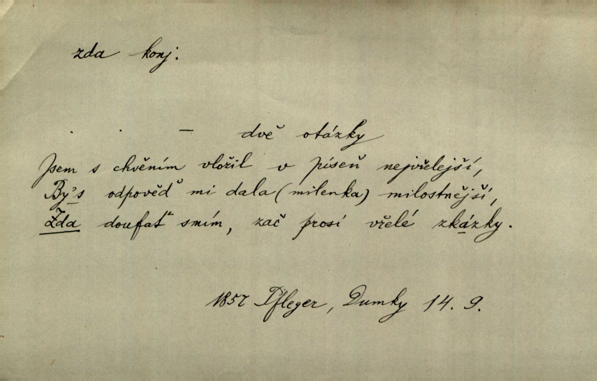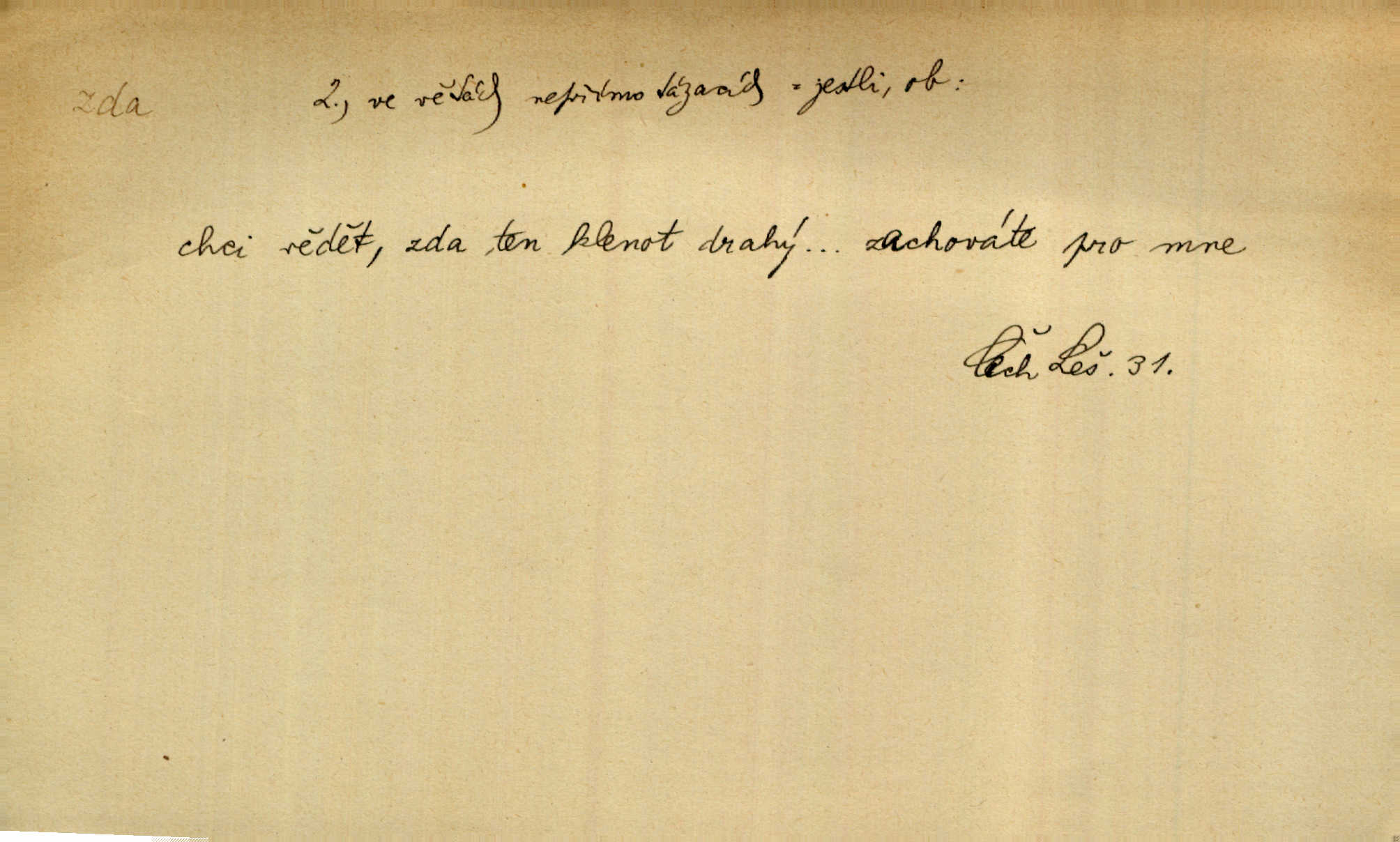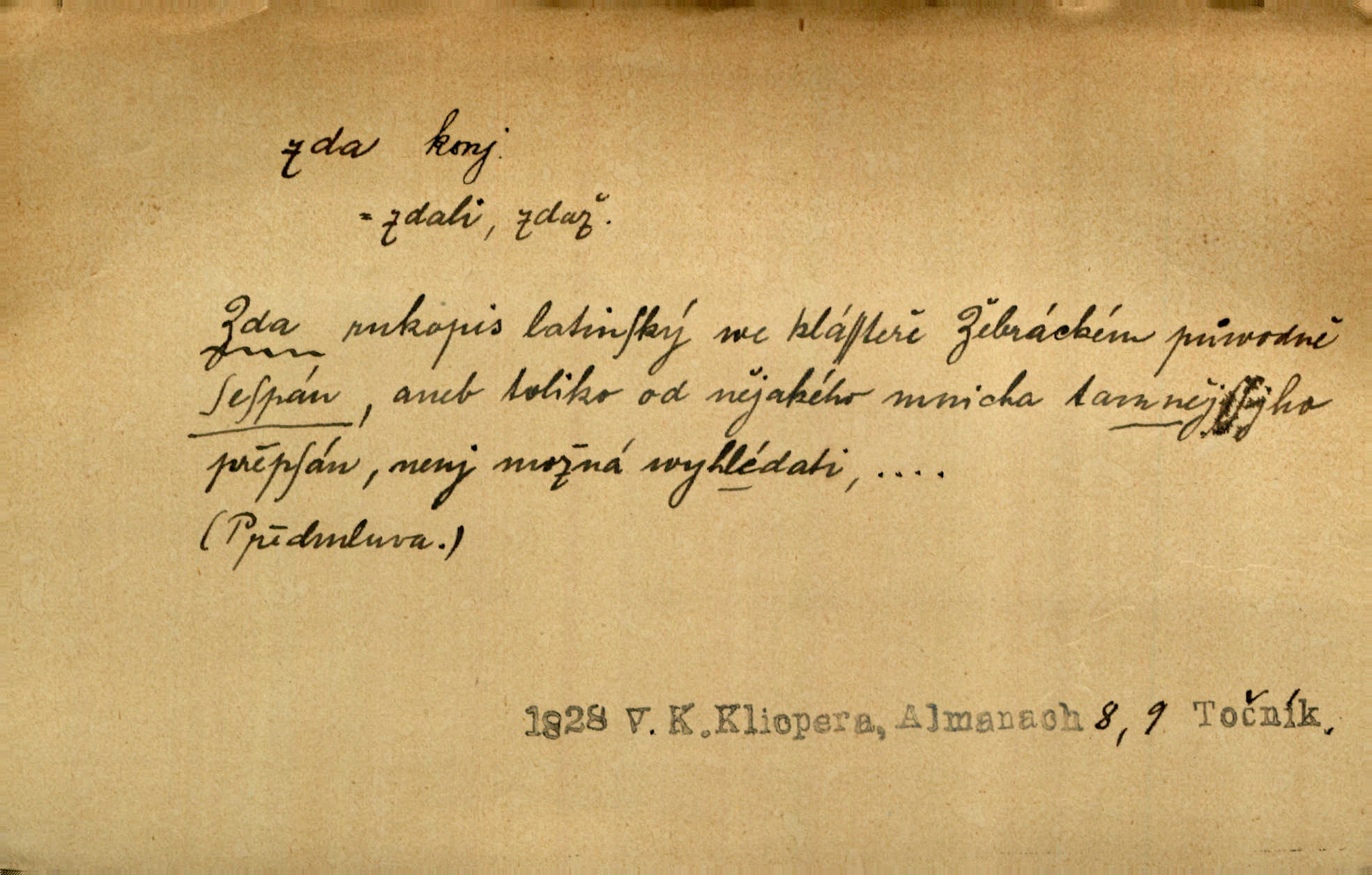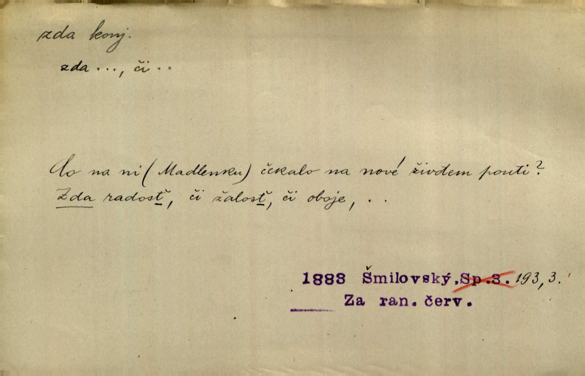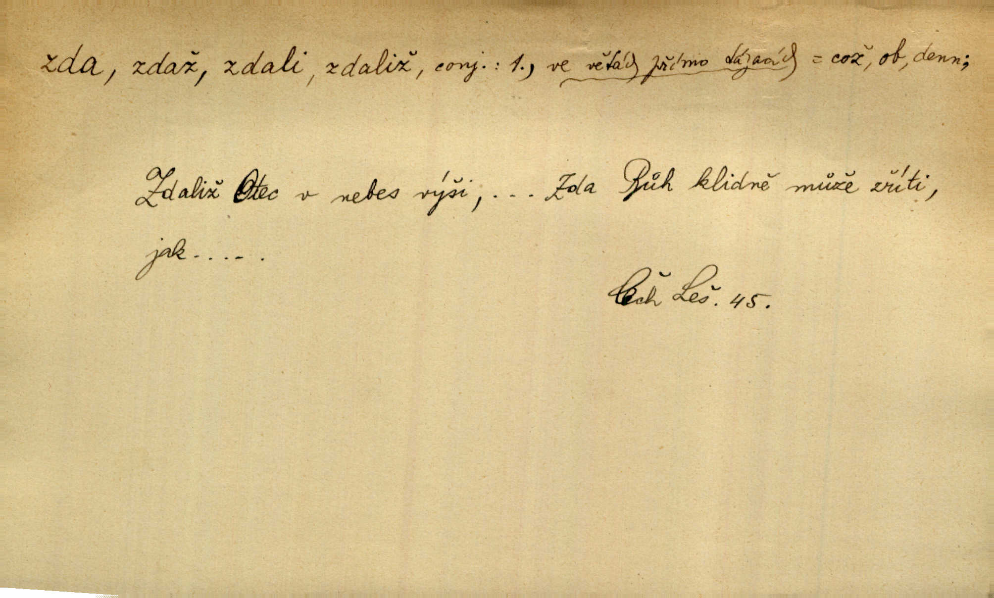 - zda, zdali (poněk. zast. zdaž, zdaliž) (v otázce přímé zprav. ve spoj. s pak) sp. uvozuje otázku zjišťující platnost n. neplatnost nějakého tvrzení. O zda vám věřit mám? Krás. Strýc odešel. Kdy přijde a zdali co přinese? Jir. Zdali pak ještě vás uvidím, Paskovské rybníky, jednou? Bezr. „Zdalipak se modlíš?“ ptala se babička Jindry. Nový. „A zdaž jsi poděkovala, Madlenko?“ ptal se otec. Pfleg. Bůh vás pozdrav, milé paní; zdaž byste popřály krátkého odpočinku a občerstvení mně a koni mému? Něm. „Ty ji miluješ,“ mluvil jsem sám k sobě; „zdaliž pak ale také ona tebe miluje?“ Rub. Přijde-li veliká bouře, zdaliž kmen vydrží! Jir. Zda vzpomínáš [slunce] na onen výkřik, nesený věky, když prvně pohnul se život, zmámen tvou září. Břez. Sandnerová, zdalipak si to budu pamatovat? Maj. D Poněk. zast. vyjadřuje otázku, na niž čekáme, zpr. po splnění jisté podmínky, vyjádřené vedlejší větou podmínečnou, odpověď zápornou. Zdali pak by nám nebylo lépe, kdy bychom byli šest střevíců pod zemí! Třeb. Kdybych se obával o svůj život, zdaliž bych byl tolikrát nastavoval prsa svá střelám i mečům nepřátel našich. J. z Hv. Zdaž tolik slz by kanulo, kam soucit blahý by zasvítal? Ner. Vás kdyby učit chtěli všichni svatí, zda všimnou si jich Češi paličatí. Ner. Zdali jsem ti neřekla, aby’s té zlaté uzdy nechal na stěně a vzal koženou? cožpak. Erb. D uvozuje nepřímou otázku a často vůbec větu vedlejší obsahující tvrzení, jehož platnost není jistá. Jeníka se kdosi ptal, zda o tom [svatbě] co slyšel. Hál. Žabák se ptá, zdaž o světech ještě cos zvědít ráčí [žáby]. Ner. I táže se jinoch mnicha, zdaliž i tito [mrtví] neobživnou? Mácha. Lidé praví, že jste syn uhlířův, povězte mi pak, zdali to pravda? Něm. O rci mně, zdaž pro píseň mou máš ozvěnu ty vděčnou. Ner. Kdož z nás ví, zda pout budoucí vesele tak uhlídá? Sab. Nevím, zdali dobře činím. Zey. Tím spisem jest rozluštěna kontroverse o otázce, zdaliž skutečně Tataři u nás pobiti byli. Zl. Praha. Neohlíželi se [lidé], zda je někdo poslouchá. John. Jitka ve své nevinnosti zkoušela, zdaliž i ty věci vlastností svých předešlých pro ni pozbyly. Svět. Na všechny strany rozbíhali se poslové a vyslancové, zdaž by někde nalézti nebylo děvčete. Kapp. A když to všechno ještě jednou přehlídla, zdali by nikde ničeho nechybělo, vzala do ruky román. Něm. Nevím, zdaliž mi to vyjde na dobro, že jen také sem Vás nyní uvádím. Macháč. D v rozlučovacím (vylučovacím) spojení, zvl. tázacím (zda - či, nebo, aneb) uvozuje v prvním členu, zř. i v druhém členu, otázku, po příp. vůbec tvrzení, jehož platnost není jistá. Co na ni [Madlenku] čekalo na nové životem pouti? Zda radosť, či žalosť, či oboje. Šmil. Přetrhl bůh ví zda náhodou či schvalně pásku, jíž byl balíček listů svázán. Podl. Jen počkejte, kdo to z nich [bratří] dále přivede, zda-li Matěj nebo Jakub. Praž. pos. Zdali peníze poslal nebo ne, nevím. Šmil. Hoj, má panenko, co děláš? A zdali pak mne ještě znáš, aneb jiného v srdci máš? Erb. Zdaž Jindřich na hradě knížecím, nebo do své tvrze se navrátil, nelze mi rozhodnouti. Klicp. Nevěděl v zmatku svém ani, zdali jí ji podal, zdali se jí uchopila sama. Svět. D Zř. vyjadřuje, že jí uváděná věta vedlejší obsahuje podmínku své věty řídící; jestliže. Zdali, panno, v mém pokoji do dvou hodin s půlnoci probdíte, je skříňka vaše. Něm. Zdali bylo s to ji cosi posilniti a zhojiti, tož, jak soudila stařena, byla to ovšem vůně z něho [hlohu]. Svět.