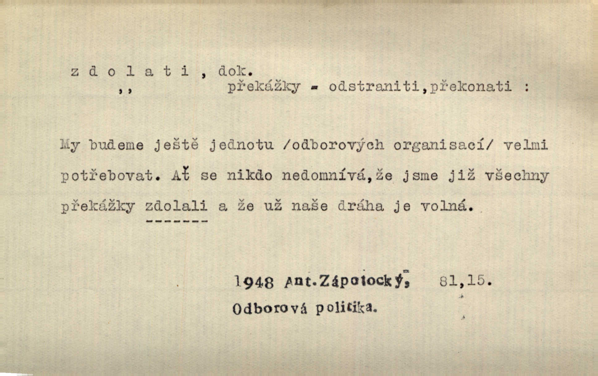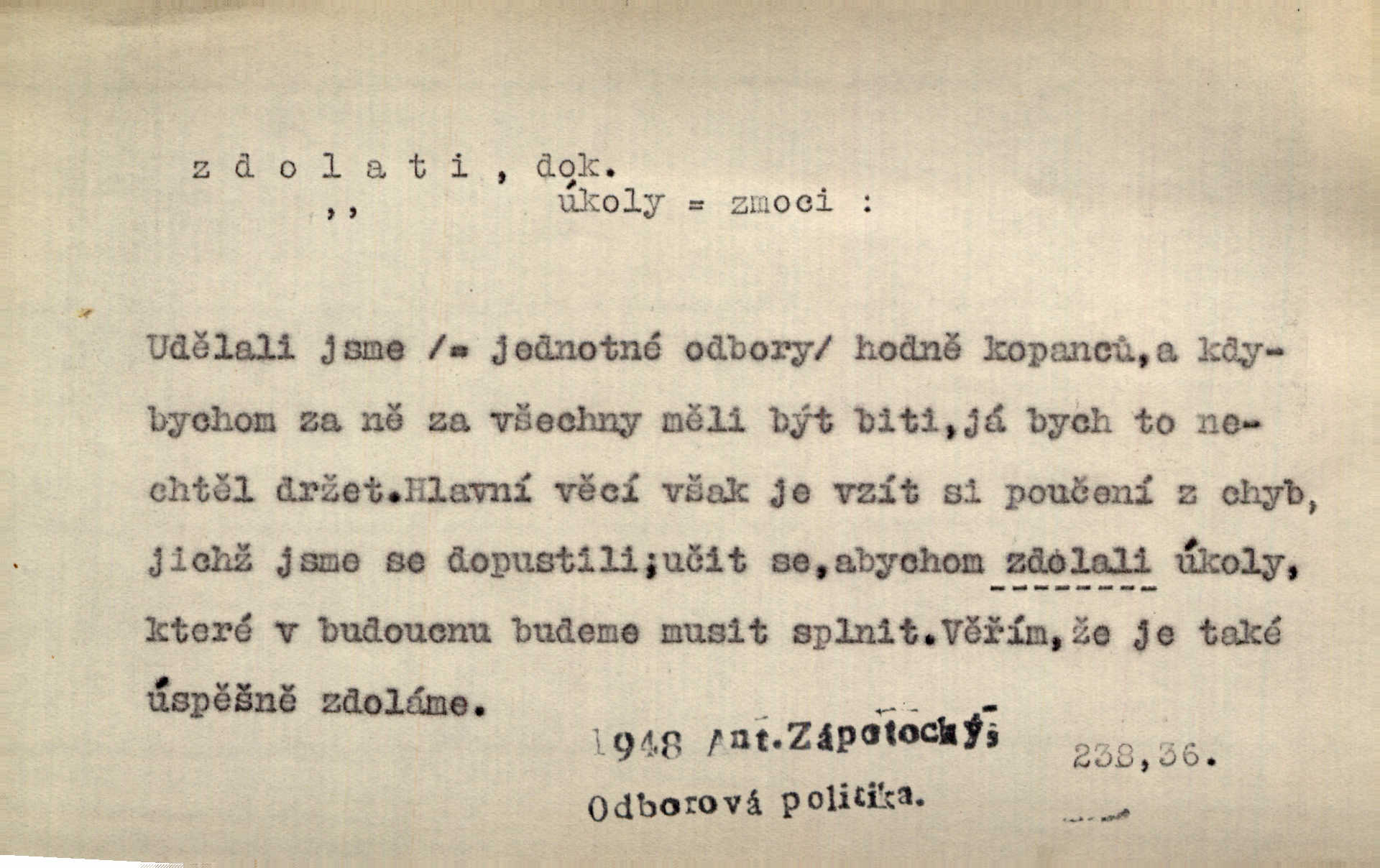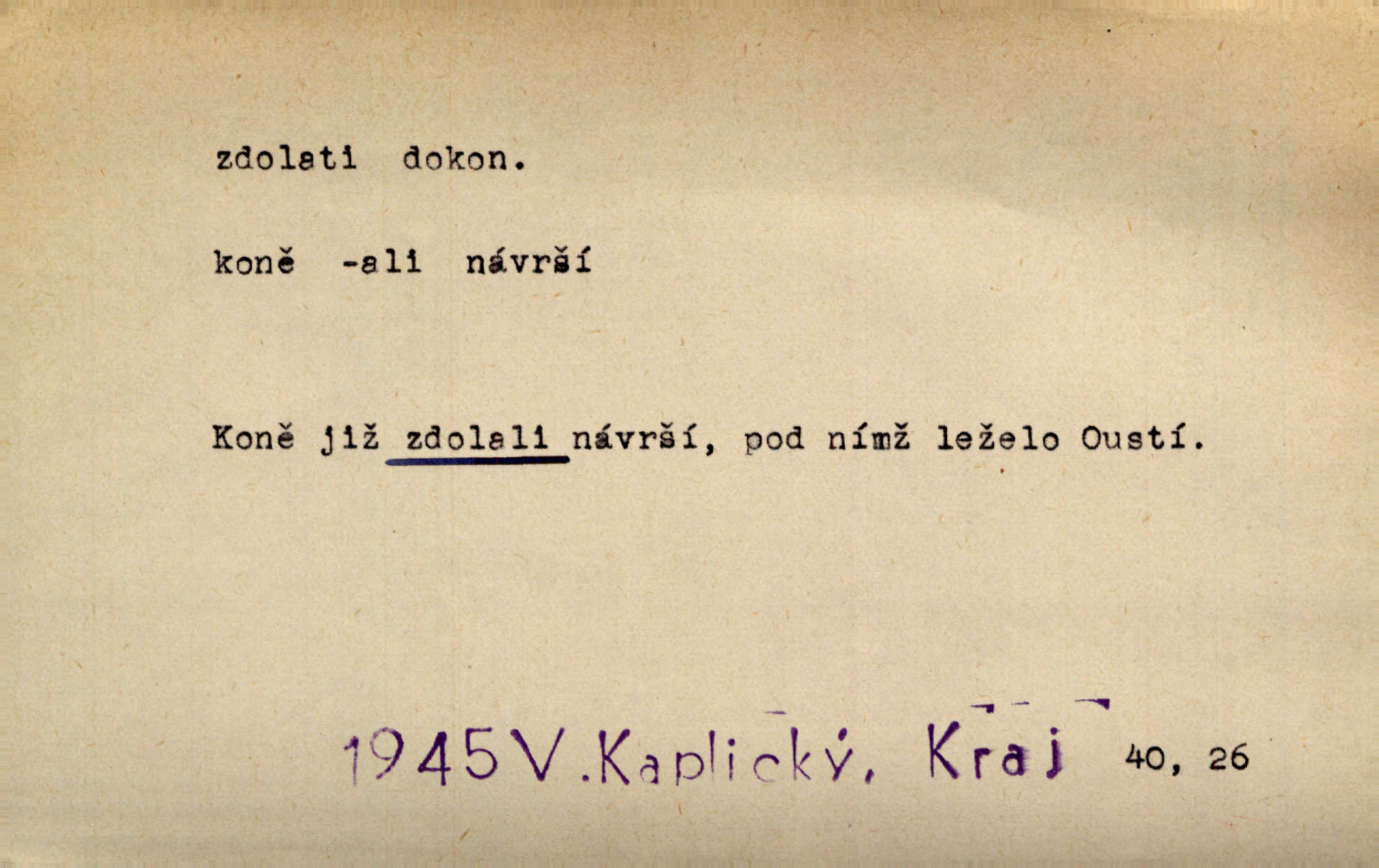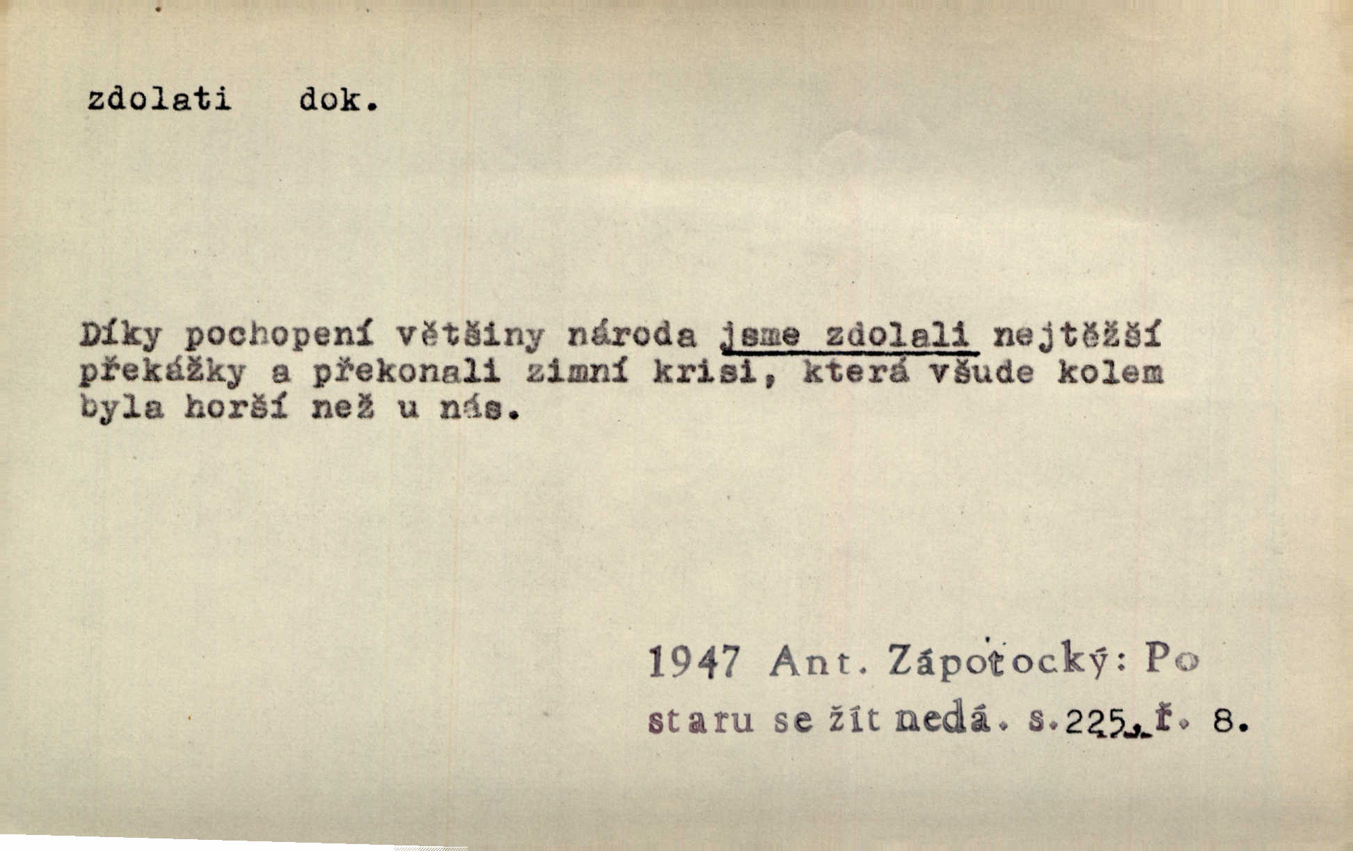 - zdolati dok. (koho, co) zmoci, přemoci někoho kladoucího odpor, silně se bránícího, překonati něco obtížného, přemoci. Nic nedovedlo ho zdolati; nezdar byl mu vzpruhou. Dyk. K jaru počal zvadat a konečně dva záchvaty chrlení krve ho zdolaly; při druhém vydechl. Rais. Žár, pochod, prach silnice nezdolaly jeho živost a dobrou náladu. Mach. Pouto, které pojí duši mou a duši tvoji, žádná síla nezdolá. Čech. Celá záležitost je pro něho [detektiva] jen osobní výkon a styděl by se, kdyby měl zdolati zločince hrubou organisovanou přesilou. K. Čap. Naše [sovětská] vojska, zdolavše silný nepřátelský odpor, prorazila japonskou linii. R. právo. Přímým útokem branné moci nebyly staroměstské hradby nikdy zdolány. Bass. Nelze počítat s tím, že by je [požáry] stačila zdolat normální mírová služba. Pouč. let. Schody tohoto druhého poschodí bylo třeba zdolati jako ostře stoupající vrch. Olb. Modrachová zdolala výšku 153 cm na druhý pokus. R. právo. D (čemu) zast. odolati něčemu. Kdo sladkému vyznání lásky zdolá? Hál. On lákavému slibu nezdolal. Krás. Když spatřil krví zalité lány, hetman, ach, slz se zdržet nezdolal. Vym. Horn. přímé zdolání ohňů a záparů druh zmáhání ohňů malého rozsahu, při němž se postižené zásoby uhlí obvykle ochladí vodou a rychle odtěží.