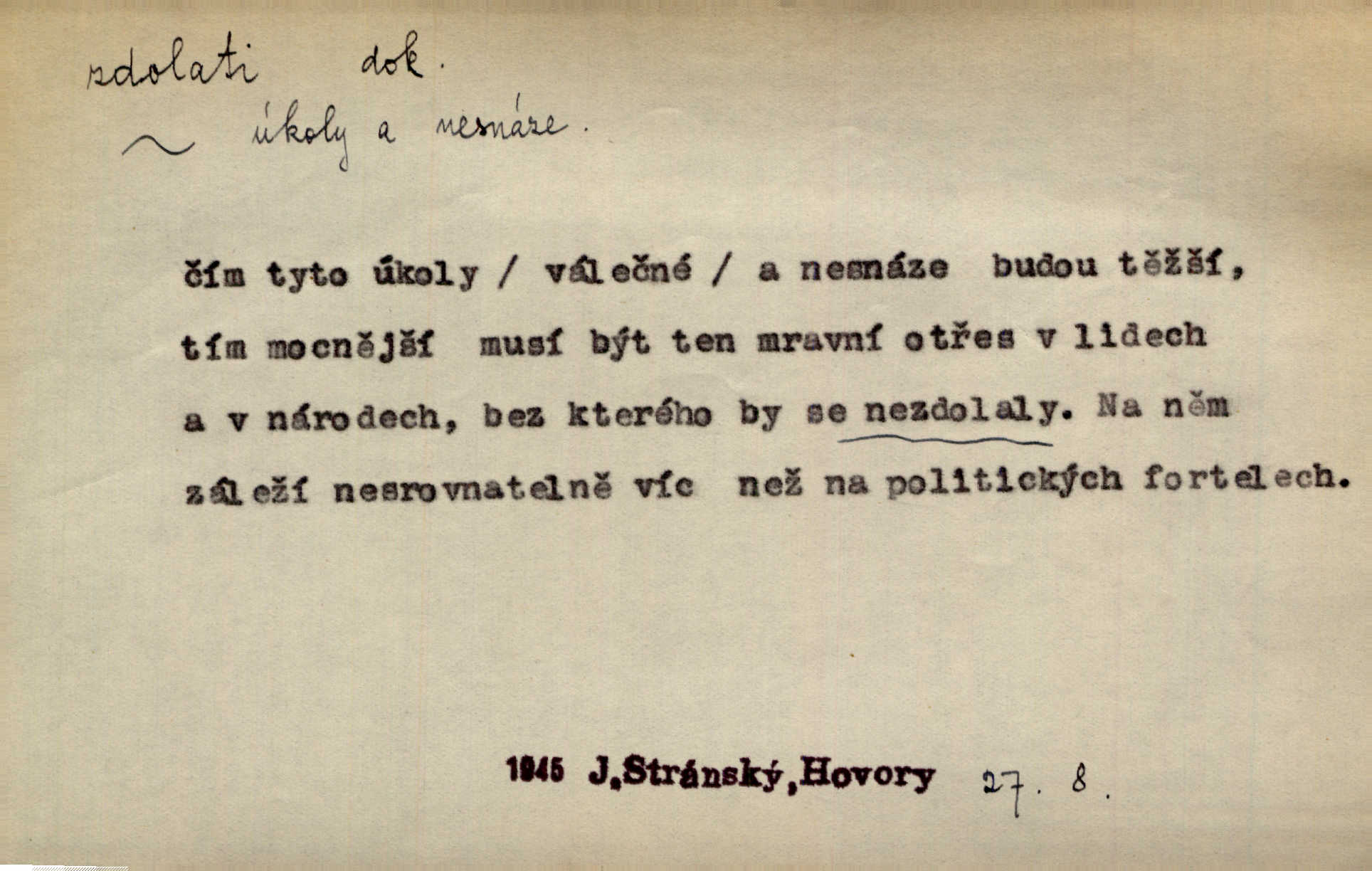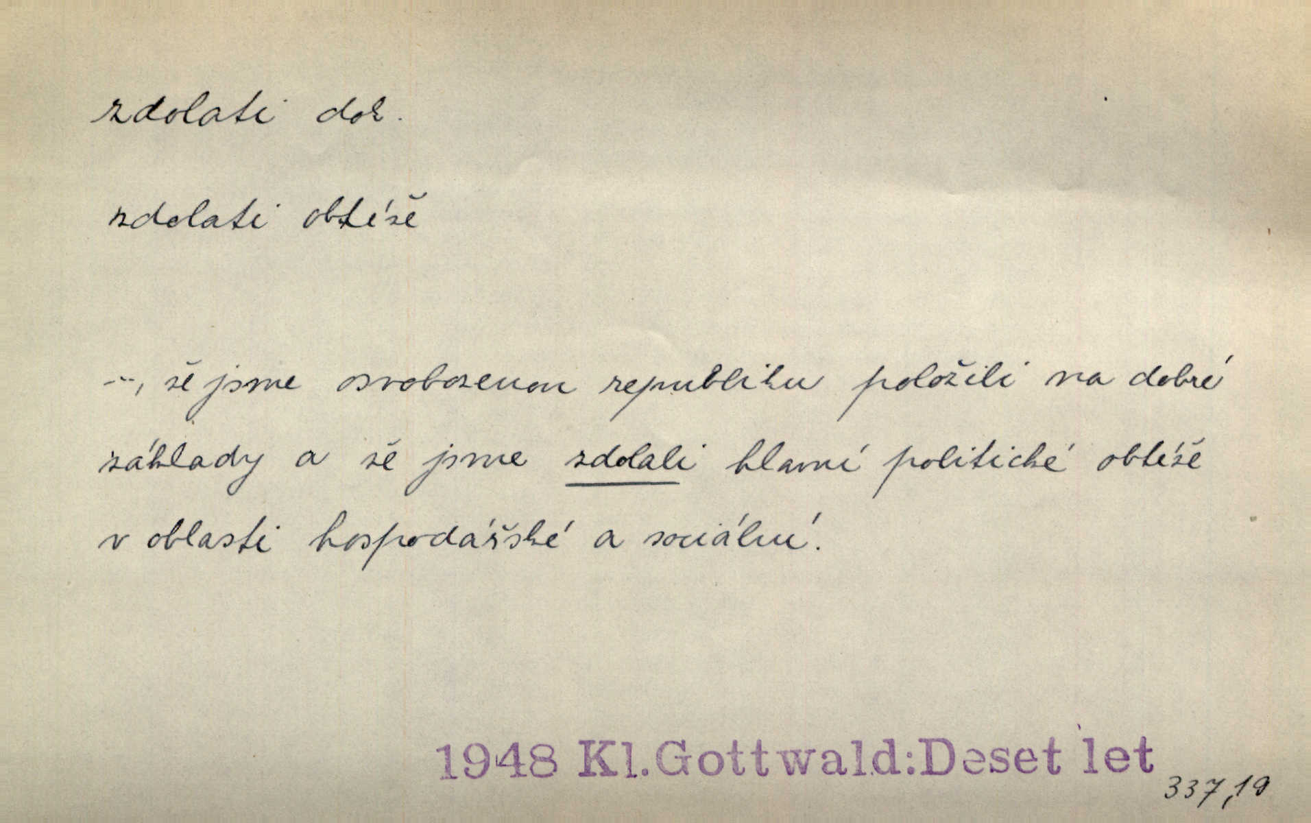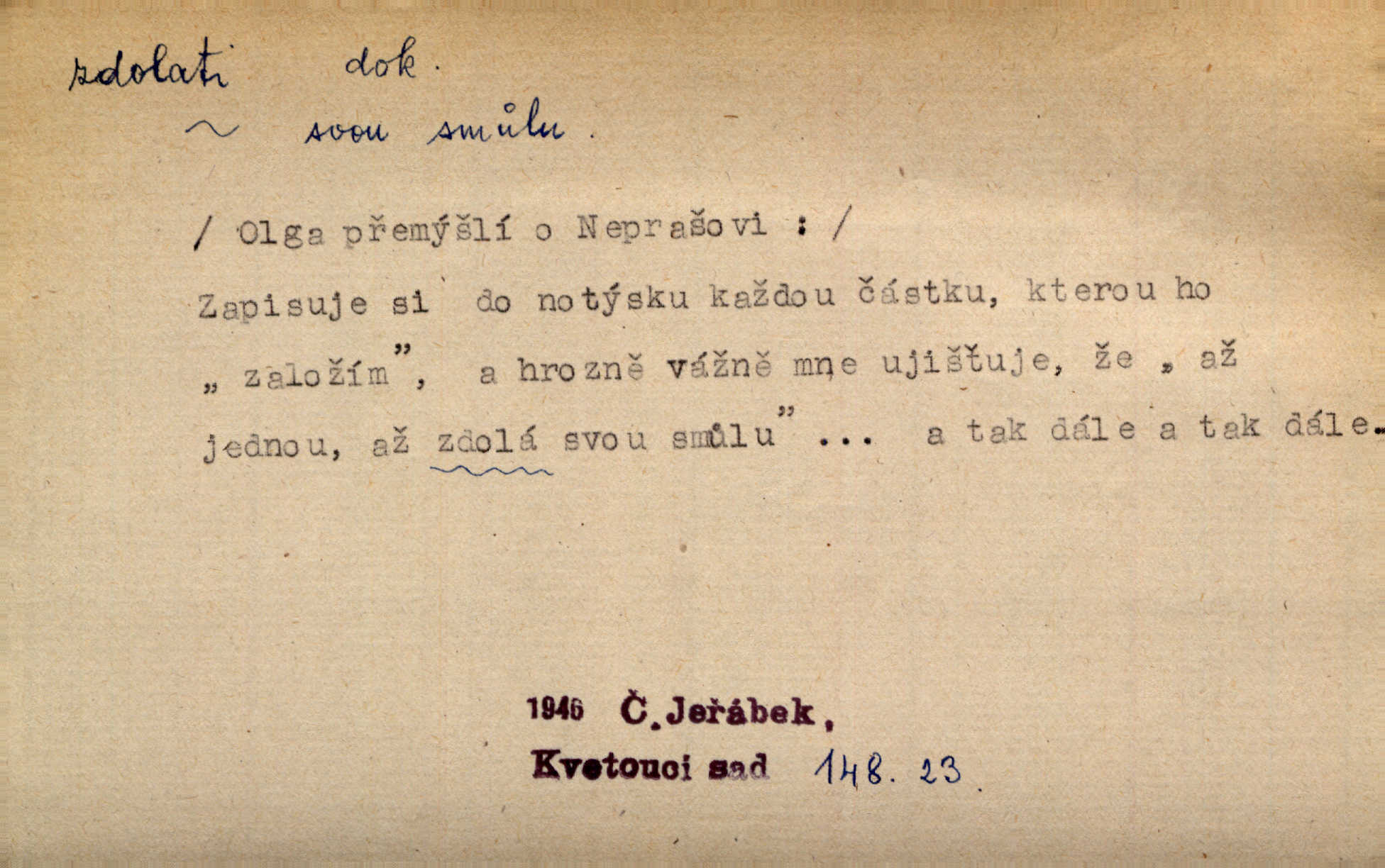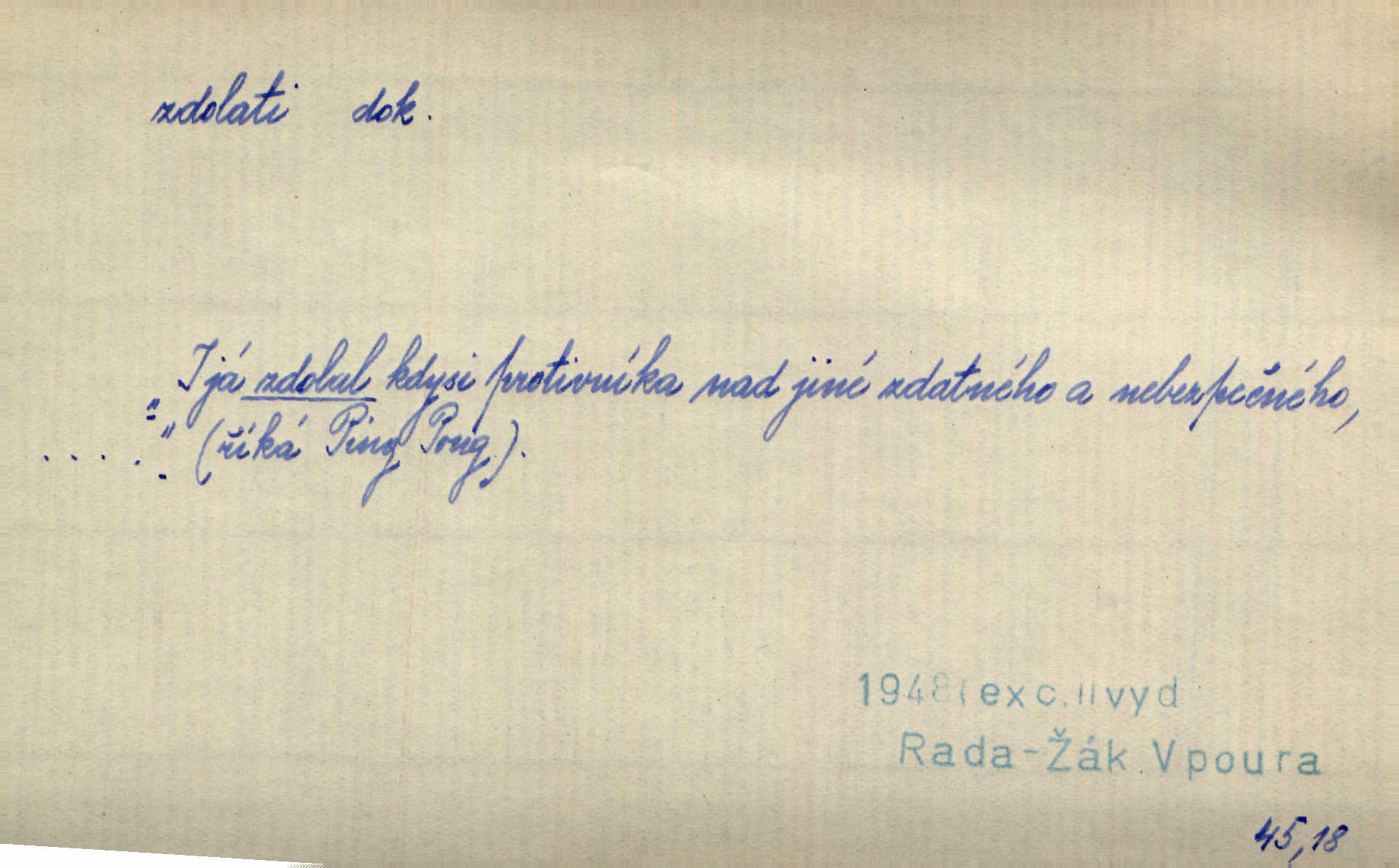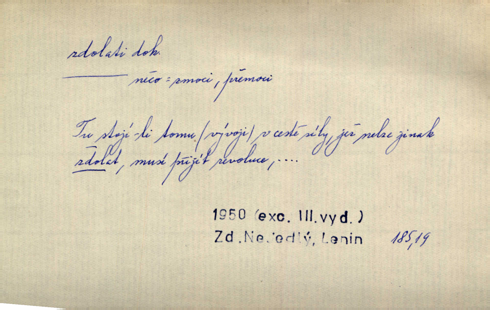 - zdolati dok. (koho, co) zmoci, přemoci někoho kladoucího odpor, silně se bránícího, překonati něco obtížného, přemoci. Nic nedovedlo ho zdolati; nezdar byl mu vzpruhou. Dyk. K jaru počal zvadat a konečně dva záchvaty chrlení krve ho zdolaly; při druhém vydechl. Rais. Žár, pochod, prach silnice nezdolaly jeho živost a dobrou náladu. Mach. Pouto, které pojí duši mou a duši tvoji, žádná síla nezdolá. Čech. Celá záležitost je pro něho [detektiva] jen osobní výkon a styděl by se, kdyby měl zdolati zločince hrubou organisovanou přesilou. K. Čap. Naše [sovětská] vojska, zdolavše silný nepřátelský odpor, prorazila japonskou linii. R. právo. Přímým útokem branné moci nebyly staroměstské hradby nikdy zdolány. Bass. Nelze počítat s tím, že by je [požáry] stačila zdolat normální mírová služba. Pouč. let. Schody tohoto druhého poschodí bylo třeba zdolati jako ostře stoupající vrch. Olb. Modrachová zdolala výšku 153 cm na druhý pokus. R. právo. D (čemu) zast. odolati něčemu. Kdo sladkému vyznání lásky zdolá? Hál. On lákavému slibu nezdolal. Krás. Když spatřil krví zalité lány, hetman, ach, slz se zdržet nezdolal. Vym. Horn. přímé zdolání ohňů a záparů druh zmáhání ohňů malého rozsahu, při němž se postižené zásoby uhlí obvykle ochladí vodou a rychle odtěží.