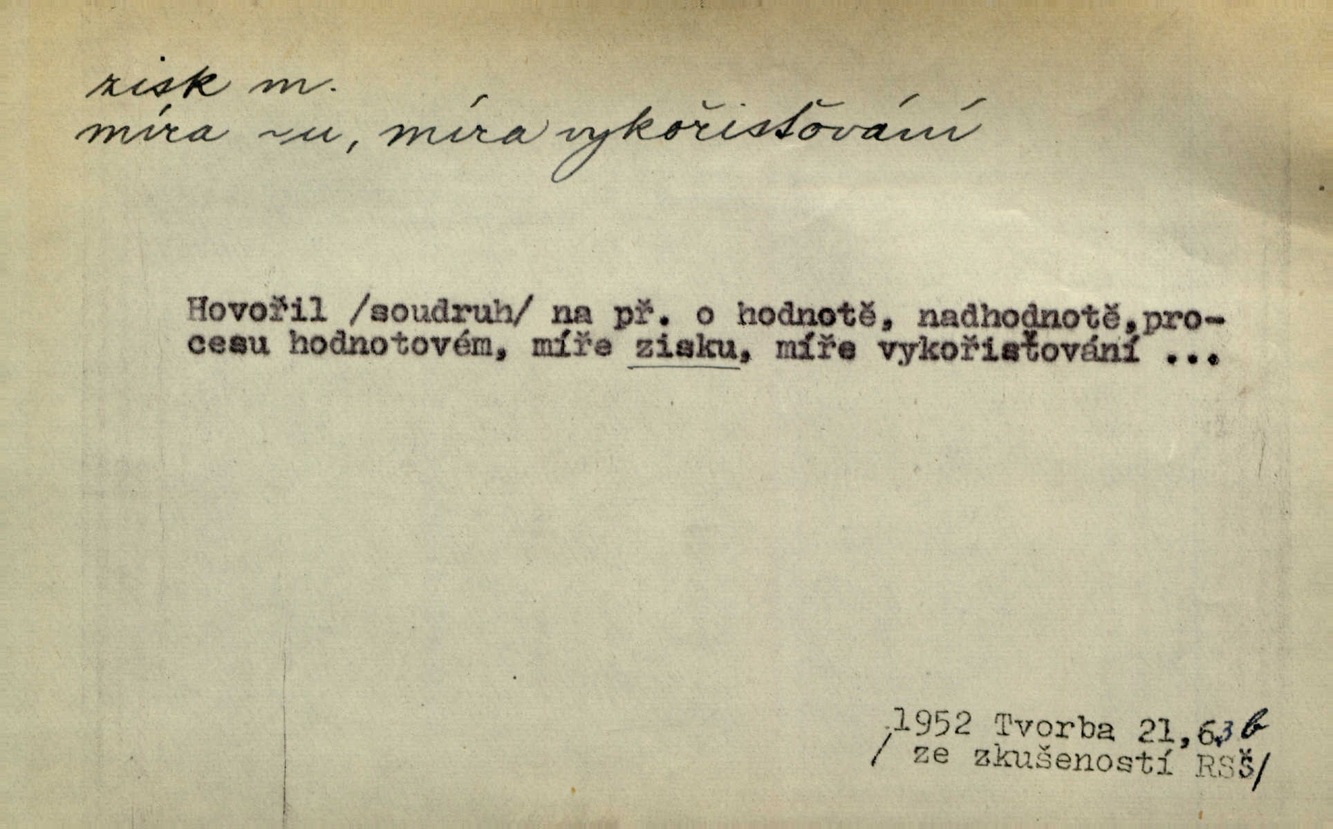 - zisk, -u m. užitek, prospěch, výhoda z něčeho plynoucí. Raději oželela hmotný, než aby ji [dceru] o duchovní zisk a prospěch byla připravila. Prav. Potvrdila svou řeč makavým příkladem, jaký zisk měla ona sama ze školy. Svět. Má-li však mít [vlast] z vaší [básníků] lásky zisku, nedávejte písně své do tisku. Havl. Kdo bude mít z toho zisk, když se zmaří spolek s Pruskem? Bozd. Odměny nežádám, ze zisku osobního neplynou činy moje. Choch. Ach, hledám smrt, ta byla by mi ziskem. Vrch. Nižší šlechta si udržela některé politické zisky, jichž dobyla v době husitské hmotné výhody. Dějepis. Krásné motivy v „Siestách“ jsou co do umělecké stránky větším ziskem pro poesii než dlouhé meditace v jeho básních posledních přínosem. Vrch. Toliko dva obrazy od našeho slavného Škréty byly patrným ziskem. Mik. El. tech. logaritmus poměru amplitudy veličiny po zesílení k amplitudě před zesílením, míra zesílení, zesílení; zisk záporný útlum. Zisk energetický, provozní, stykový, vložný, zbytkový. D výtěžek, výdělek, zvl. peněžitý, který je obyč. výsledkem nějakého podnikání. Zboží šlo na dračku, ale zisk byl malý. Vach. Kéž z nich [koní] máte zisku tolik, co je v řece písku. Hol. Kde vidí [kupec] zisk, dá si třebas do očí plivat. Něm. Na jeho [otcových] prstech nelpí žádný špinavý a dokonce snad krvavý zisk. Herrm. Příčiloť se poctivé jeho povaze, aby pomáhal tajemníkovi k bezprávnému zisku. Čech. Pro své velikášství, pro něčí zisky, pro pokrok, já nevím pro jaké náramné věci jsme zabili lidstvo. K. Čap. Do války se vydal [Štefan] s Jankem pro jméno i dobrý žold a zisk. Jir. Vše, co dělník [v kapitalismu] vyrobí navíc, shrábne továrník do své kapsy, to tvoří jeho zisk. Škol. Posuzujeme-li podniky s vyššího hlediska, dojdeme k závěru, že nemůžeme míti zájem na tom, aby jeden podnik zvyšoval si svoje zisky na újmu hospodářského výsledku podniku druhého. Prům. věst. Zákon stanoví, kdo má právo vydávat noviny a časopisy a zajakých podmínek, zejména také se zřetelem k tomu, aby zisk nebyl účelem. Ústava. Ekon. (za kapitalismu) nadhodnota vzatá v poměru ke kapitálu vloženému do výroby a navenek vystupující jako plod kapitálu celého. Míra zisku poměr nadhodnoty k celkovému kapitálu, vyjádřený v procentech. Průměrná míra zisku. Účet. rozdíl mezi většími výnosy a menšími náklady. Zisk rozvahový, skutečný, neskutečný, plánovaný, neplánovaný, čistý, hrubý, střediskový a j. Převésti do zisků (na př. promlčený dluh n. promlčený závazek). D Řidč. získání, nabytí něčeho; přírůstek. Jedinou jeho myšlenkou byl meč, jehož musí zpět dobýti a s ním vybojovati snětí kladby a opětný zisk milosti boží. Čap. Ch. Šach. zisk pěšce, kvality. Knihov. přírůstek.
