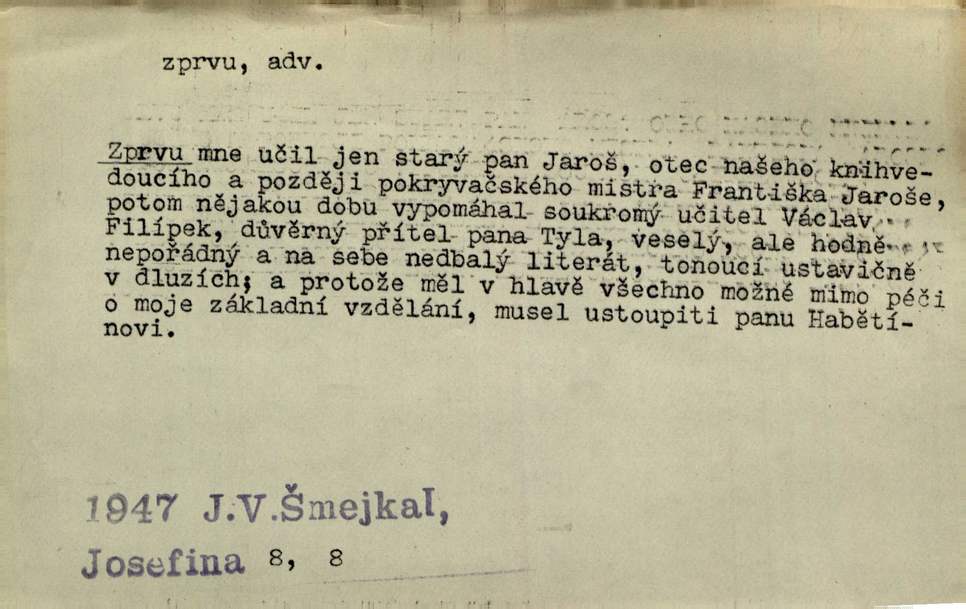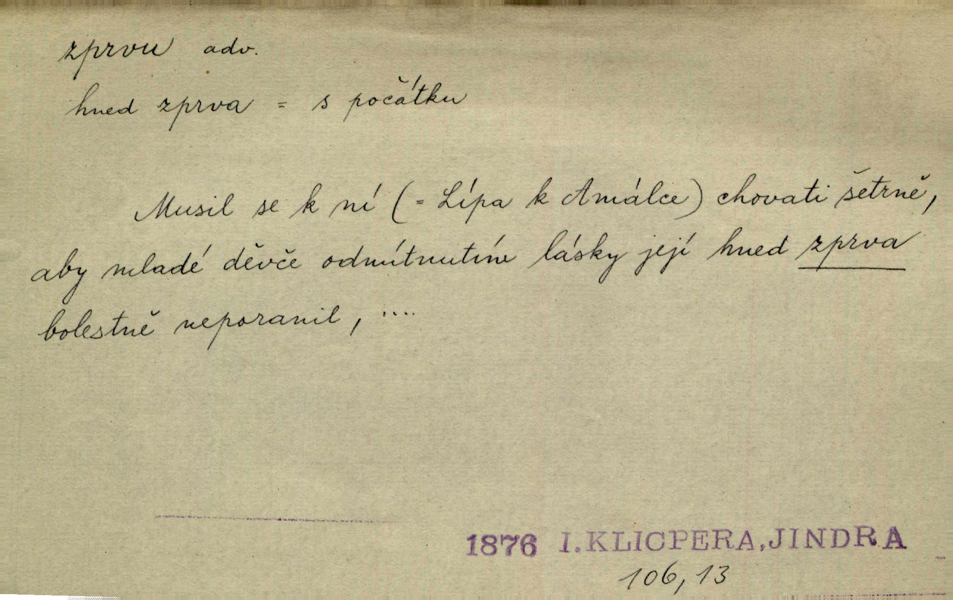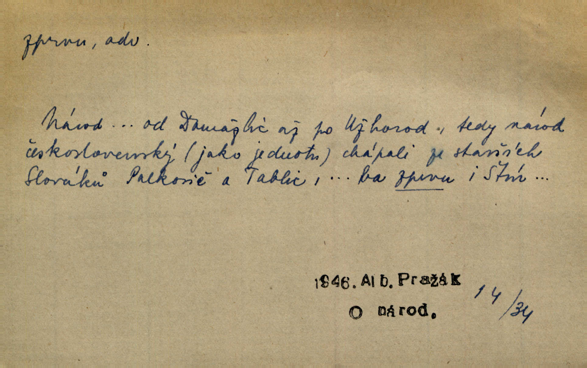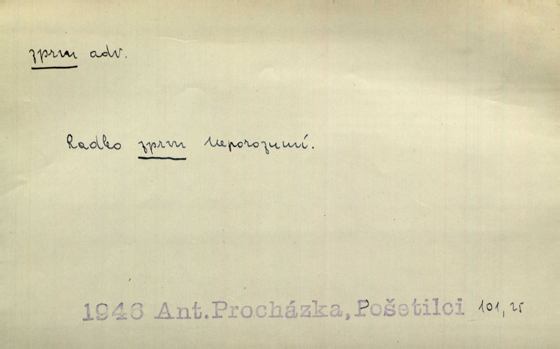 - zprvu (zř. zprva, zprv) adv. z počátku, nejprve, nejdříve. Avšak přec se srdcem tak těžkým od sebe jí nepropouštěli, jak zprvu si myslili. Svět. Jej zprvu nejvíce hnětlo, že poslední vůle šlechtického jeho přítele dosud neprovedena. Jir. Ubožák odpovídal zprvu trochu zaraženě. Vanč. Trpaslík soudil hned zprva, že není nikoho na zemi. Havl. Zprv po domě stesk mě jímal tuze. Klášt. [Panímáma] odtrhla se od těch vzpomínek zprvu na chvíli, pak už na dobro. V. Mrš. Hoši zprva byli překvapeni, ale pak i oni ukázali zuby. Šrám. Zprvu s bolestí a později s trpkou resignací studoval. Čech.