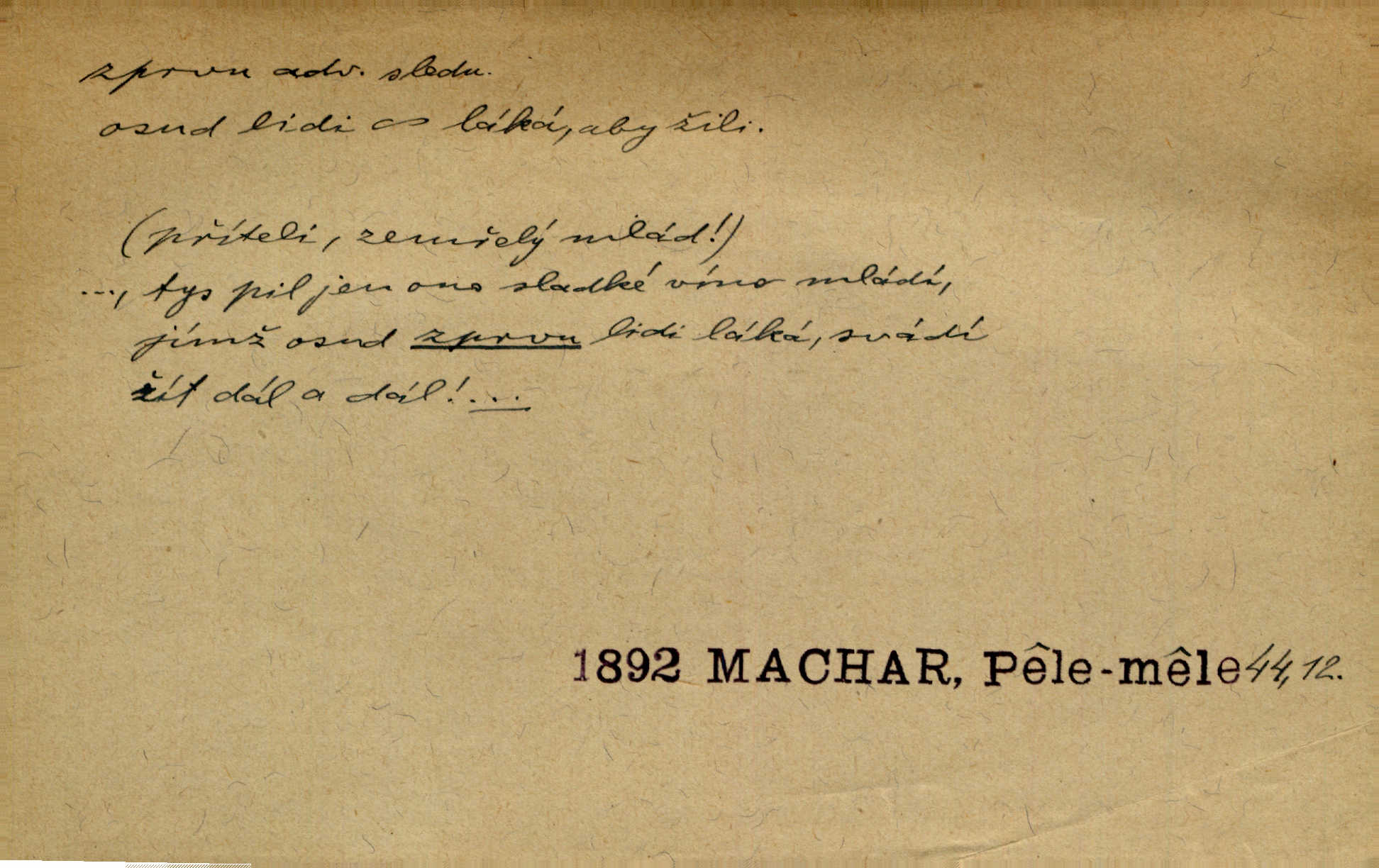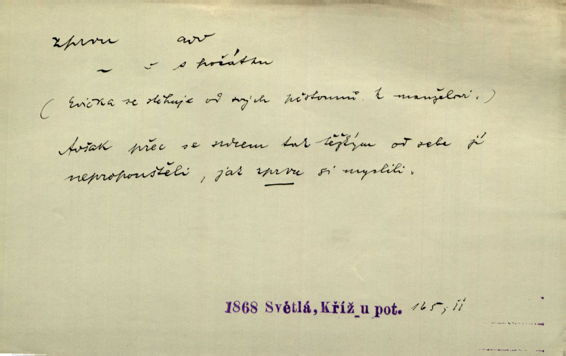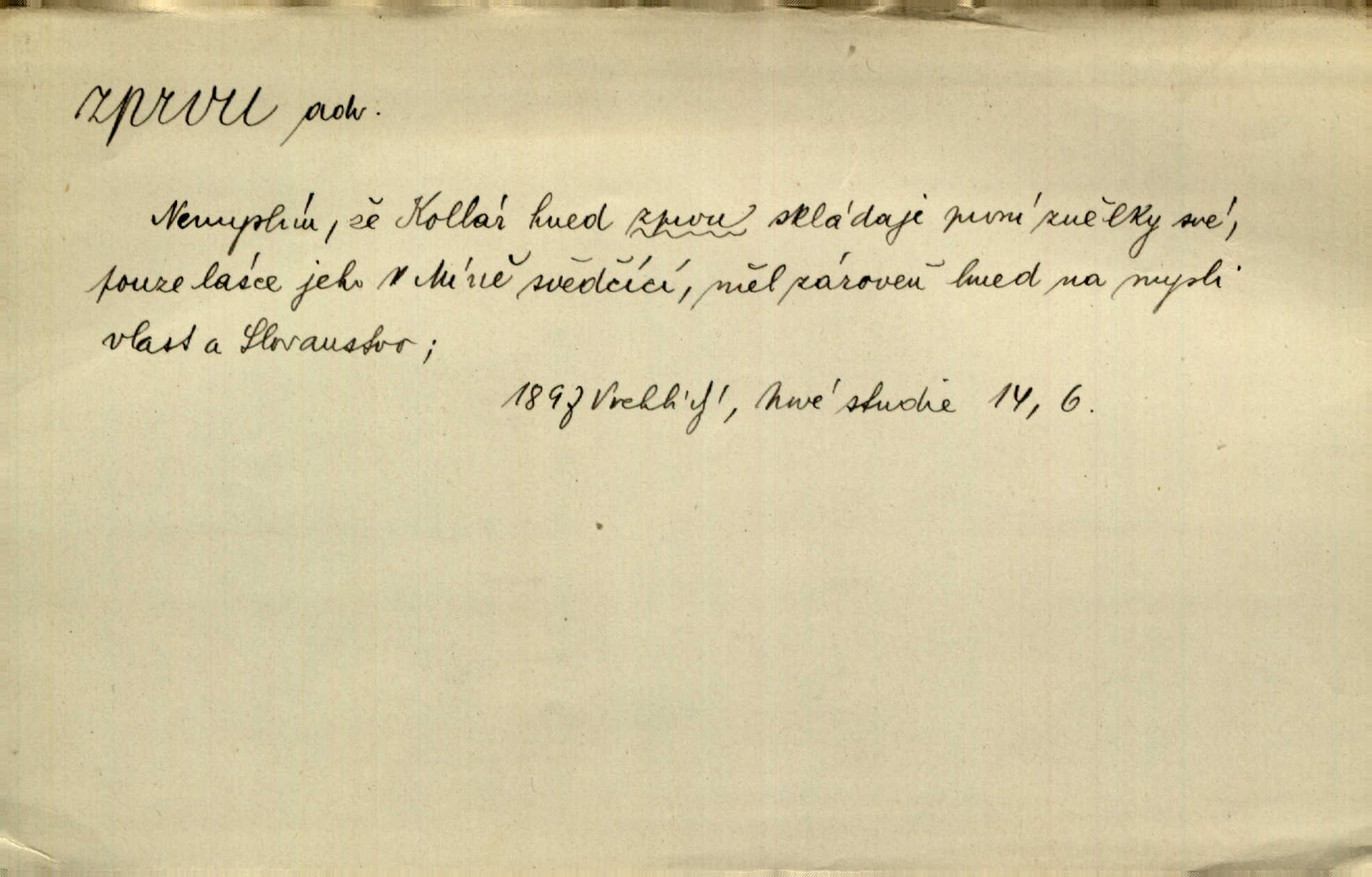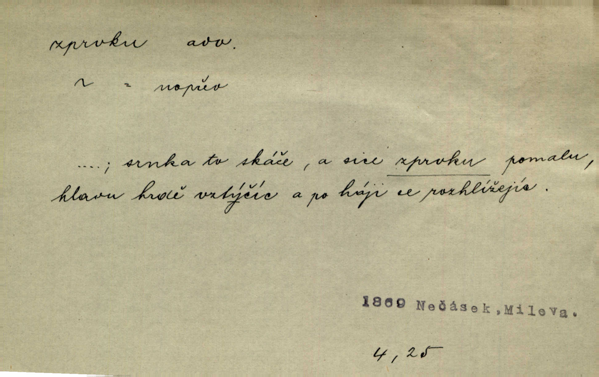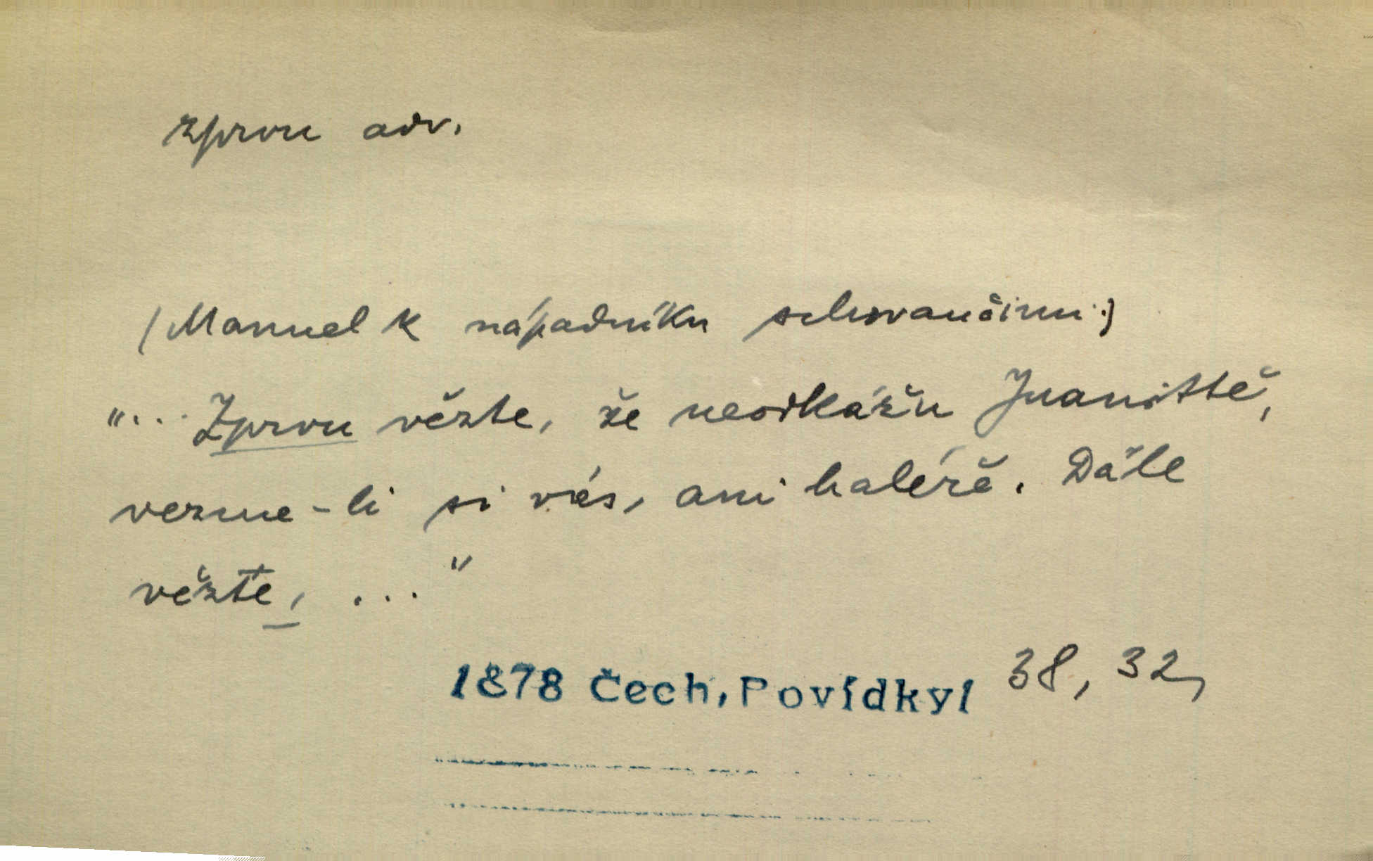 - zprvu (zř. zprva, zprv) adv. z počátku, nejprve, nejdříve. Avšak přec se srdcem tak těžkým od sebe jí nepropouštěli, jak zprvu si myslili. Svět. Jej zprvu nejvíce hnětlo, že poslední vůle šlechtického jeho přítele dosud neprovedena. Jir. Ubožák odpovídal zprvu trochu zaraženě. Vanč. Trpaslík soudil hned zprva, že není nikoho na zemi. Havl. Zprv po domě stesk mě jímal tuze. Klášt. [Panímáma] odtrhla se od těch vzpomínek zprvu na chvíli, pak už na dobro. V. Mrš. Hoši zprva byli překvapeni, ale pak i oni ukázali zuby. Šrám. Zprvu s bolestí a později s trpkou resignací studoval. Čech.