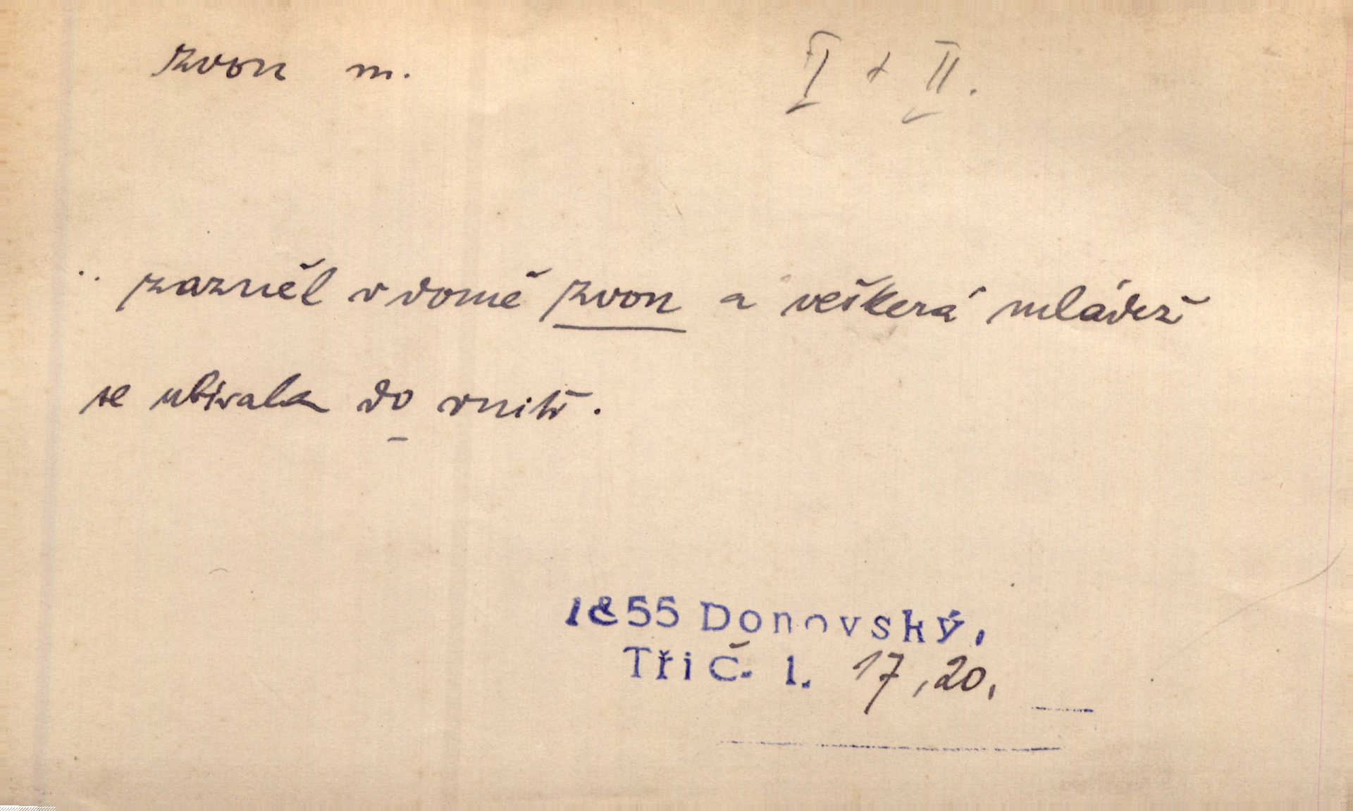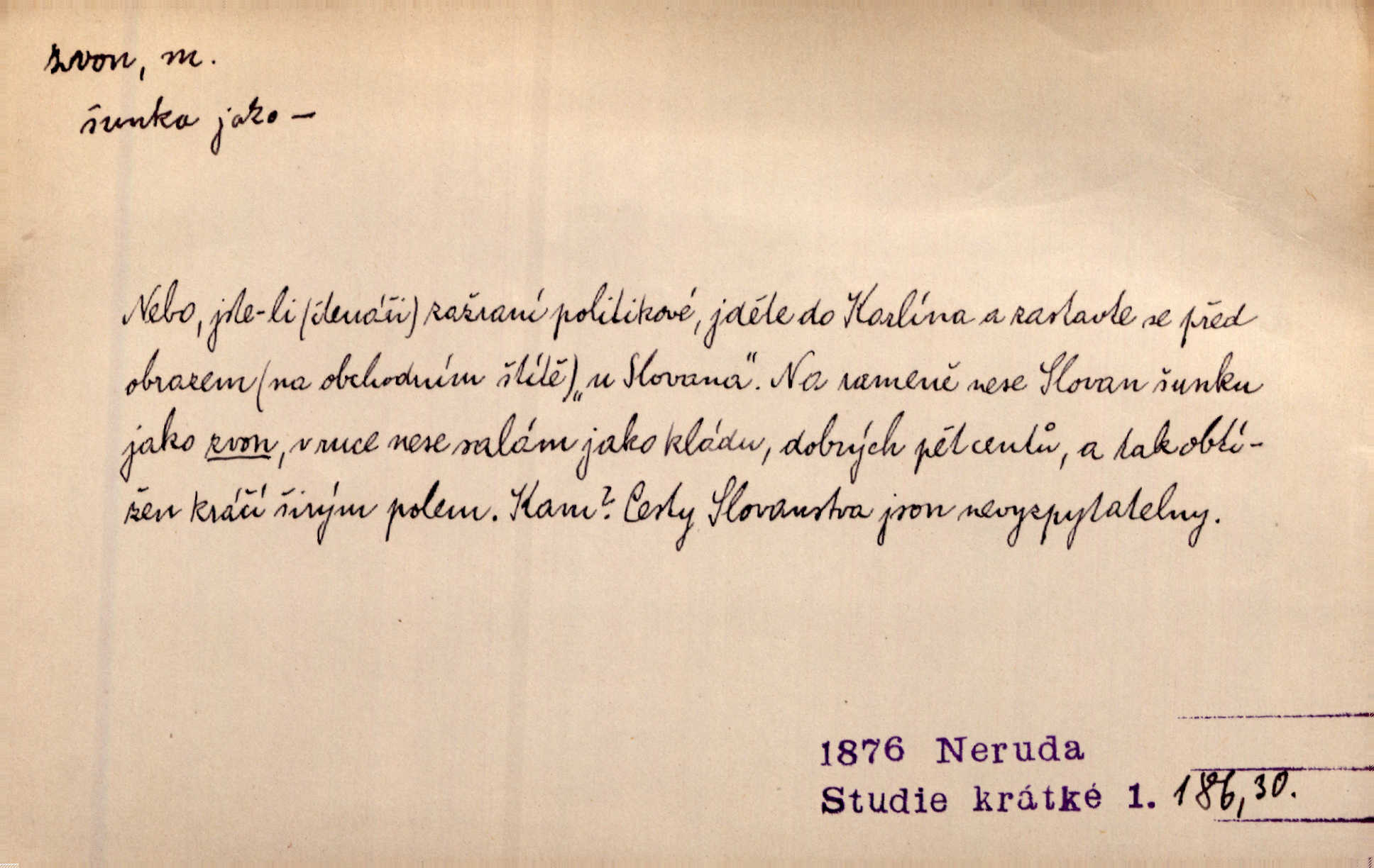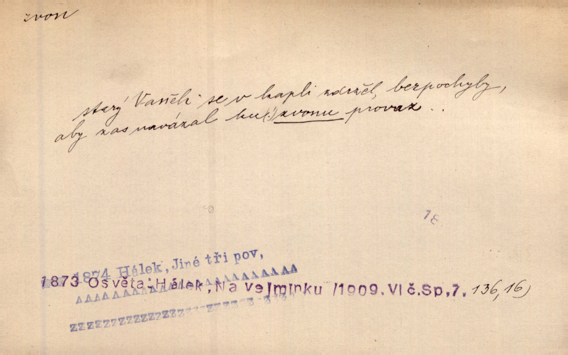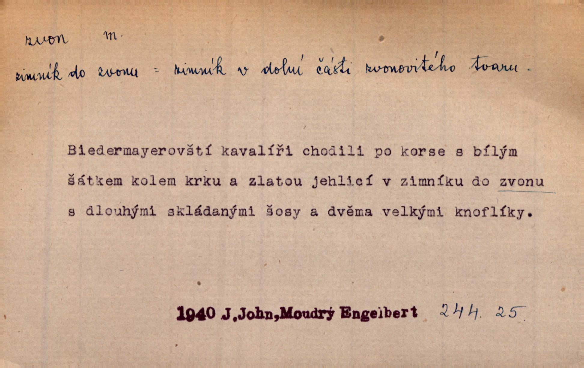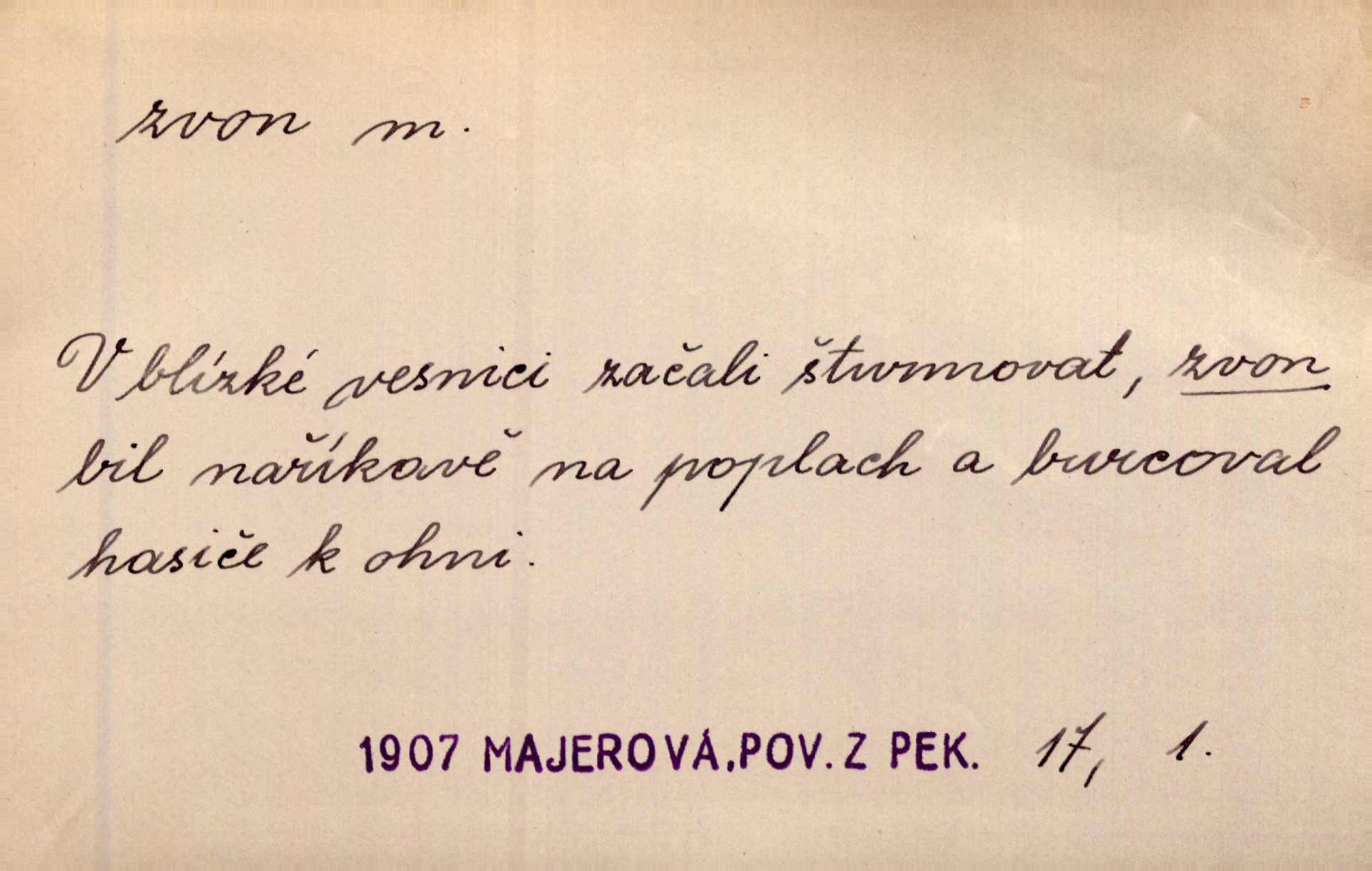 - zvon, -u m. kovový, obyč. bronzový nástroj v podobě obráceného kalichu, zavěšený tak, aby rozhoupáním se rozezvučoval pod údery zvl. kladiva (srdce). Zvoní a hlaholí Frydecké zvony, do země spouštějí rakev. Bezr. Lešetínské zvony slyšet valné hony. Čech. Na hlas zvonu přišlo z polí něco lidí do vesnice. Herb. V blízké vesnici začali šturmovat, zvon bil naříkavě na poplach. Maj. Rychtáři, dej udeřiti na zvon a neodcházej z radnice zvoniti na poplach. Jan. Dále v lese bučel dobytek, cinkaly zvony, co měl na krku zvonky. Prav. Na Zelený čtvrtek už byla velikonoční nálada vzrušenější. Zvony prý toho dne odletí do Říma (lidová pověra velkonoční). Strnadel. Obklopilo ji veliké a napjaté ticho nesmírnou prázdnotou jako dutým zvonem. K. J. Ben. Proč bych nemohl věděti, co se v Praze všemi zvony vyzvání o čem se všude mluví. Klicp. Jen ze šetrnosti k tobě nechtěl jsem rozmíšky naše pověsiti na zvon všude rozhlásiti. Svět. Tváře jí hořely a sukně měla jako zvony, jen jen se kroutila široce nažehlené. Rais. [Nad krajinou] klene se nebe jako obrovský zvon z kalené oceli. Třeb. Hlas její zazníval po zlatém pokoji jak stříbrný zvon. Něm. Biedermayerovští kavalíři chodili po korse s bílým šátkem kolem krku a zlatou jehlicí v zimníku do zvonu s dlouhými skládanými šosy. John. Věděl, že hejtman má srdce jako zvon zdravé. Branald. Bás. Tvůj ret se rozpěj víc a víc, až zvonem pozajásá. Ner. Přen. Ve zvon hromu bije na poplach. Krás. Je svátek duší, v jichžto zmlknutí zní zvony poesie. Krás. [Velcí muži] lidstvu cestu vyměří a ve zvon dějův mocně udeří vyvolají velké události. Ner. Ty květe anemony! Sáh jsi mi k srdci, jakby milá ruka tam vzpomínek všech rozpoutala zvony. Vrch. D bicí nástroj v podobě obráceného talíře, zvl. jako součást bicího zařízení hodin; gong. Z nejista a temně jaksi zaléhá sem zvon neviděné tramway. Mach. Přesypací hodiny a lodní zvon jsou dva předměty na lodi, které se těšily všeobecné pozornosti. Vosátka. Údery hodin sopránového zvonu znějí jako podrážděné výkřiky zlé ženy. Jah. Z nádraží [zazní druhé znamení zvonu dvakrát po sobě. Pfleg. D jiné zařízení v podobě zvonu; poklop a pod. Sýry schováváme pod skleněné příklopy (zvony). Hvězda. Přiklopme pak nádobku tu zvonem skleněným a počněme do toho uváděti vodík. Vot. Dříve rudu i vápenec vozili ve vozíkách, teď odstranili tuhle dřinu a všecko obstarávají zavážecí zvony. Uždil. Přen. [Za krajem obzoru] k mlhám země jako vlasovou linií přimyká se zvon oblohy. Štech. Pod zvon mračna, jež se zvedá stmělé, skryj [měsíc] kvetoucí svůj liliový plamen! Vrch. Kráčí jako pod mléčným zvonem. Krok vidí před sebe a ostatní je hustá, šedá mlha. Baar. Tech. potápěcí zvon zařízení v podobě zvonu, umožňující práci pod vodou. Hut. součást zavážecího zařízení vysoké pece. Tech. plynový zvon zařízení pro jímání kalového plynu ve vyhnívacích nádržích. Zbož. gumový zvon pomůcka k uvolňování ucpaného potrubí tlakem vzduchu. Mysl. kovová objímka nábojnice do loveckých pušek, do níž je zasazena roznětka. D Kniž. něco vzhledem připomínajícího zvon. Modrý zvon Řipu objevil se na mlhavém pozadí. Rais. A tak zanedlouho vykukovaly nožky v pavučinkových pučonkách pod vlajícím zvonem sukní. Ahoj. V bělosti té pleti vězí krůpěj průhledná jak ranní rosa v zvonu lilie zvonku. Zey. Tu zavzní na zvonění slavné malých i velkých kvítků zvon. Hál. Někdy svlačec skromné zvony rozvije. Šmil. Modré zvony klematisu zakryly i hořejší patro žluté vily. O. Schein. Těl. skupinové cvičení na kolovadlech.